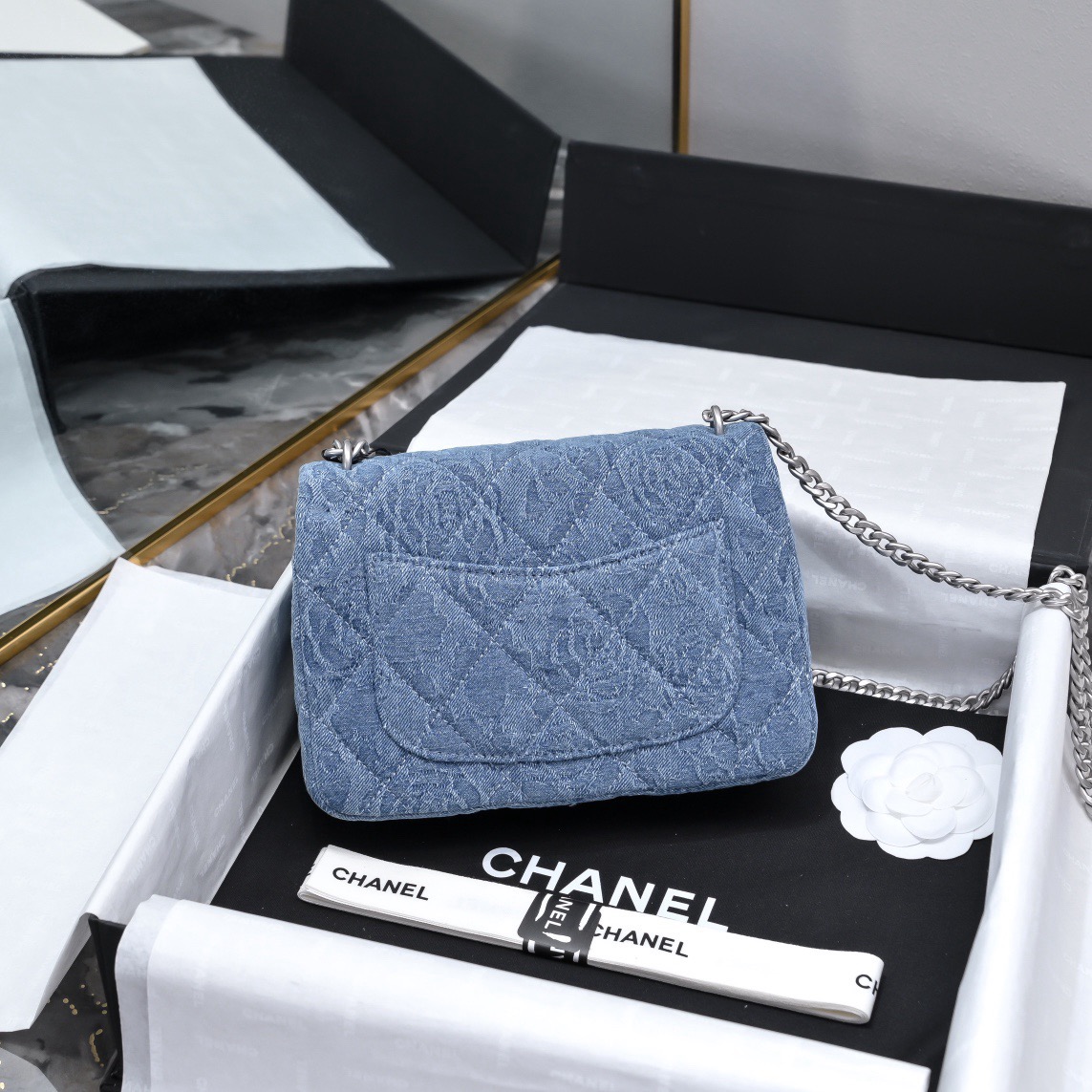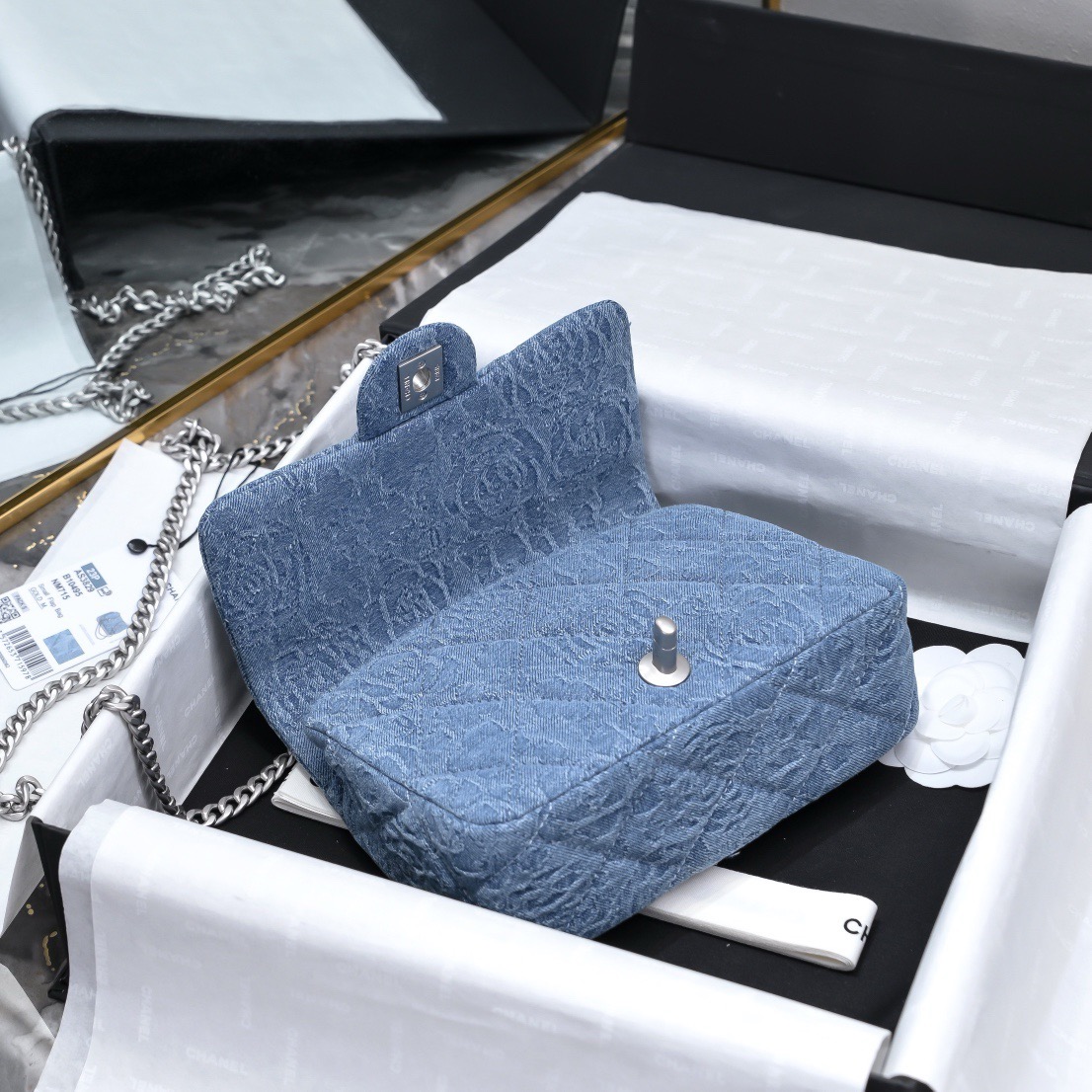 - Chanel 23 beauty's new Fat Man is here - silver love chain and cowboy camellia flowerAnd spring and summer perfect match top match invincible match!!Dark camellia embroidery is good to poke, exquisite love adjustment button is very friendly, do not pick the whole spring and summer collocation are given to it