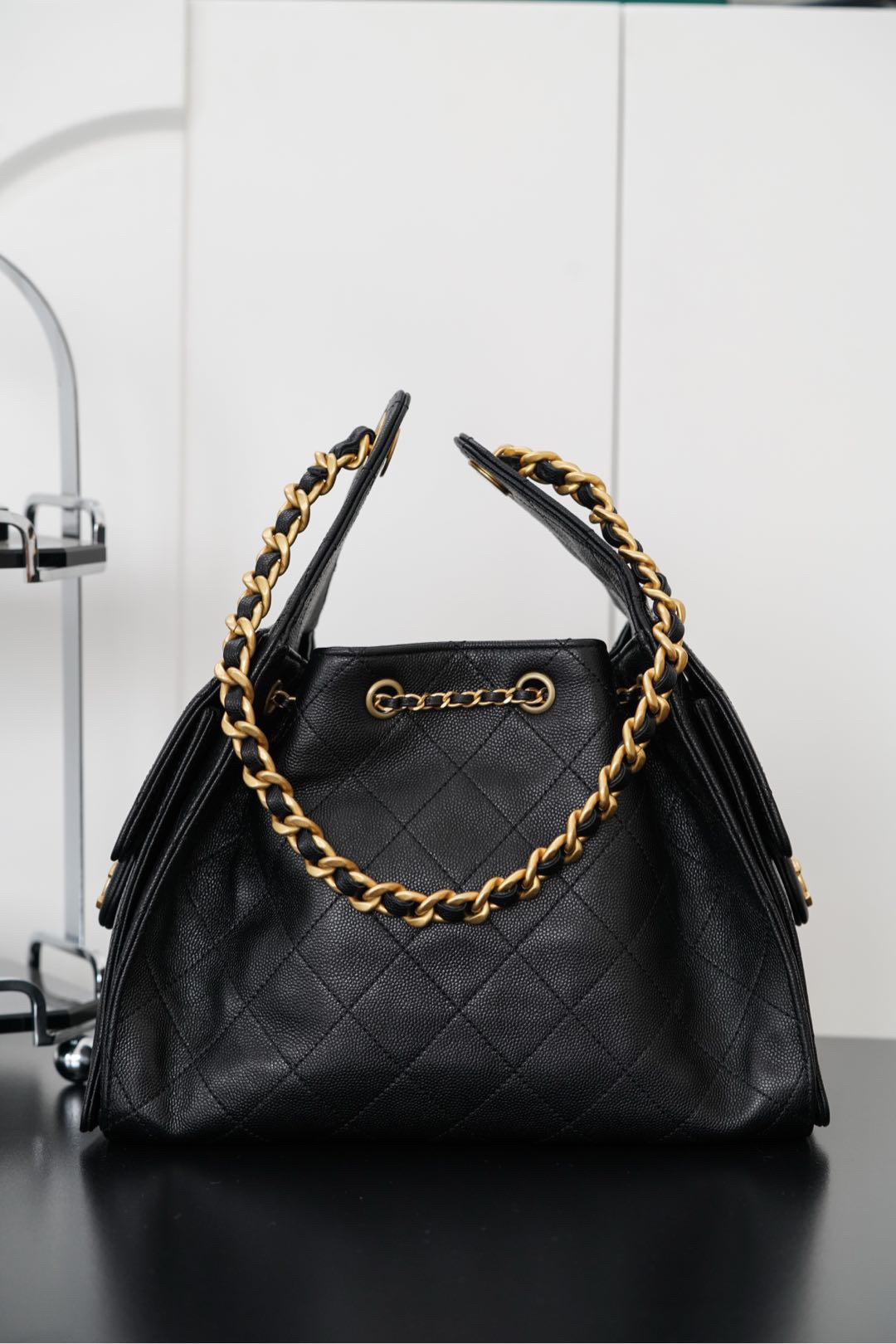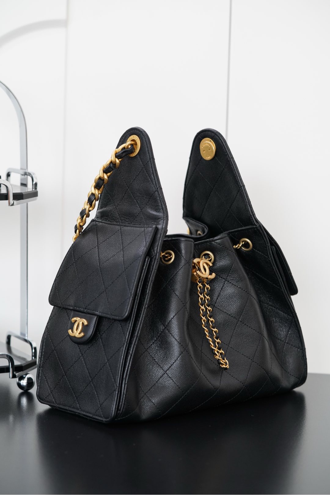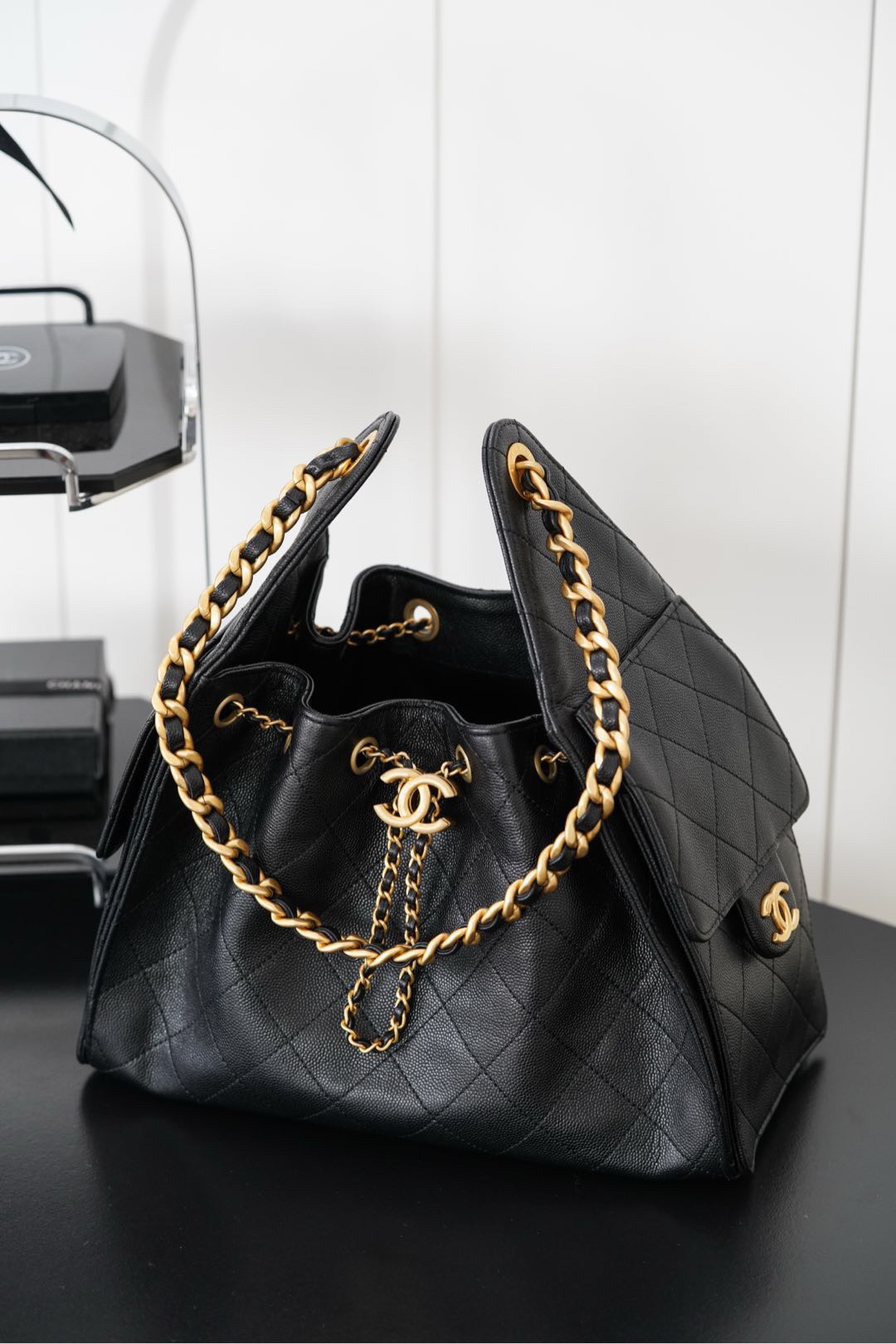 CHANEL Fragrance 25Bag 255 Classic double C LOGO calf leather shoulder Bag large women's black