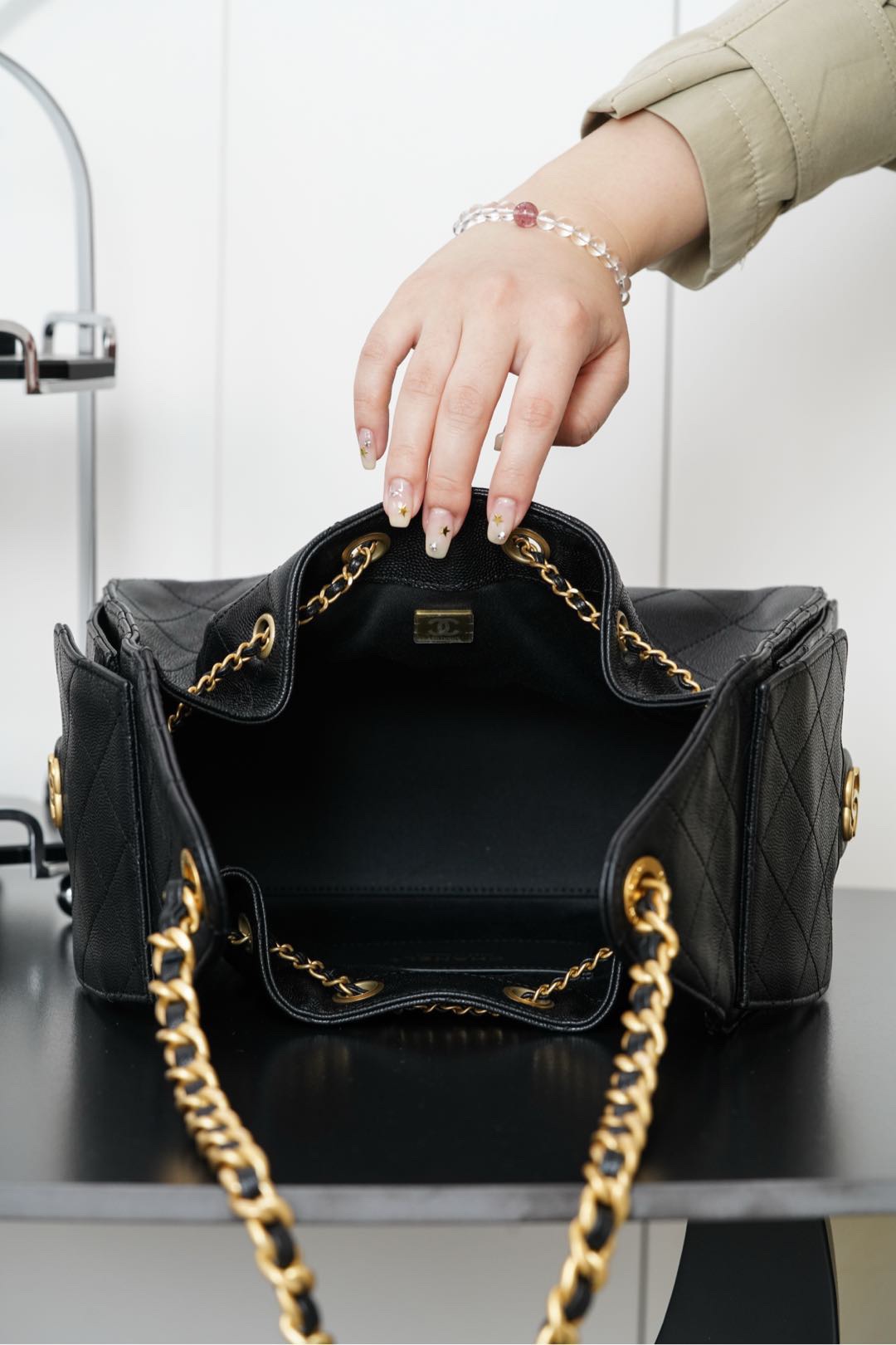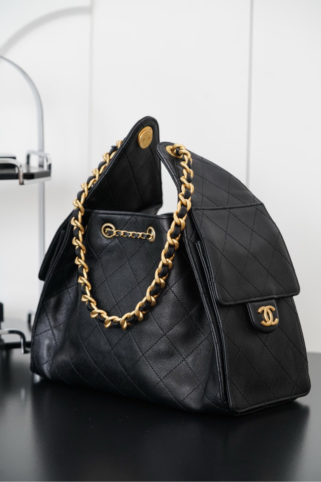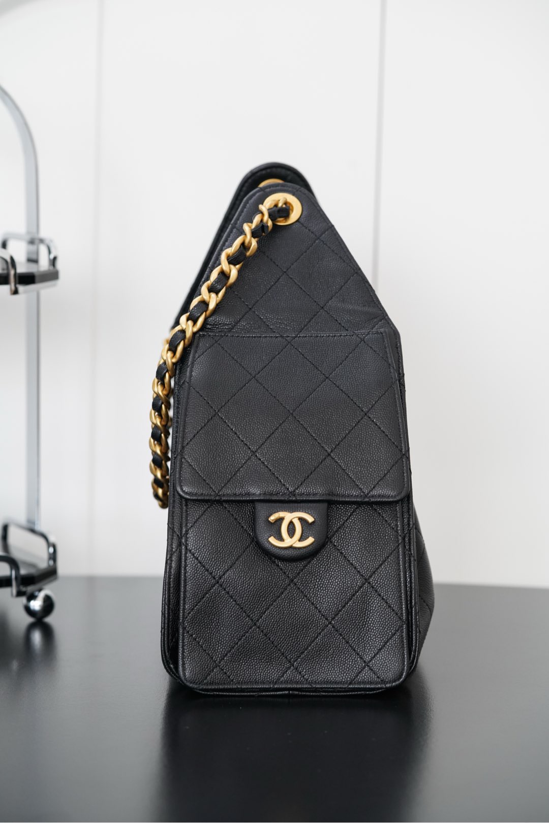 CHANEL Fragrance 25Bag 255 Classic double C LOGO calf leather shoulder Bag large women's black