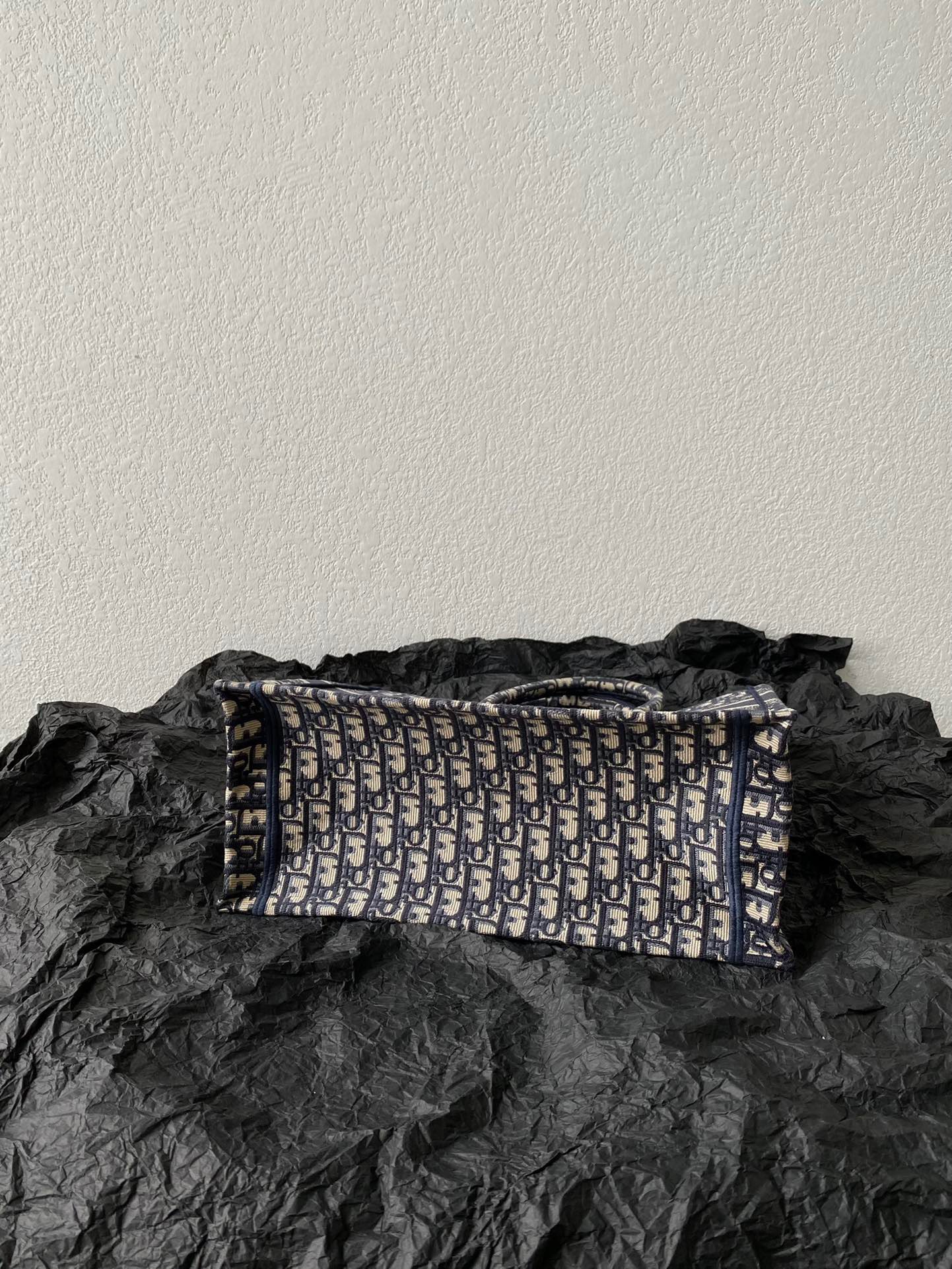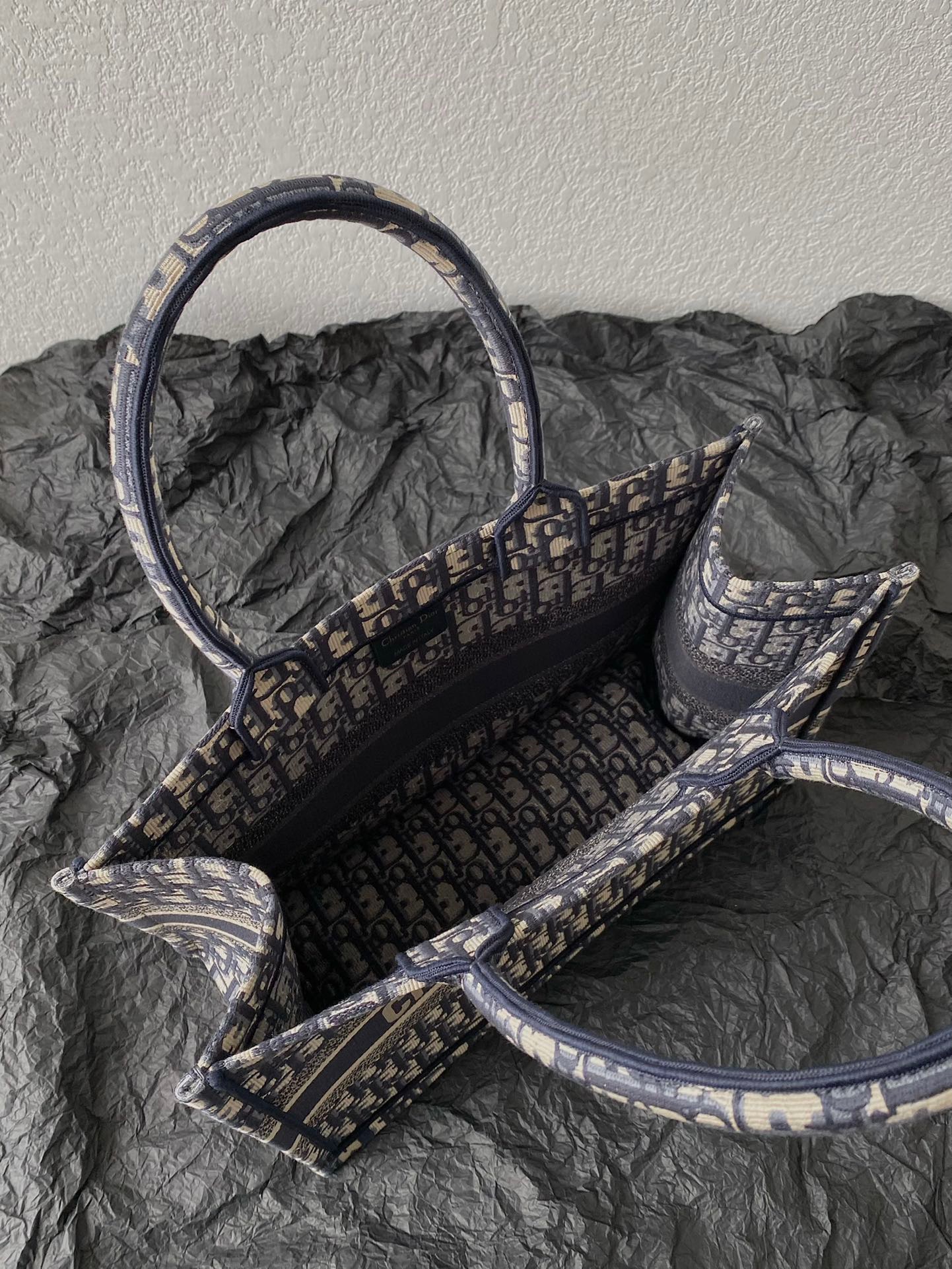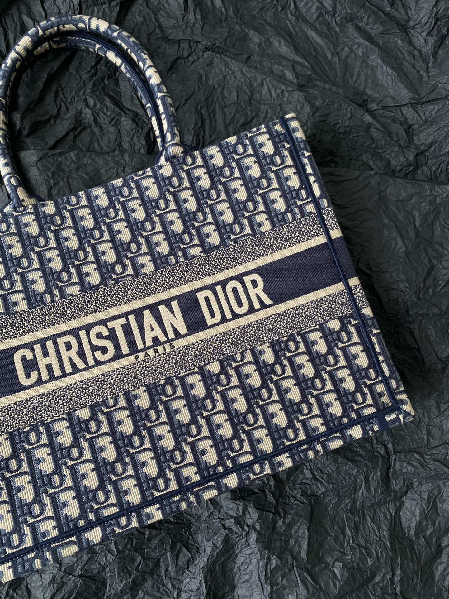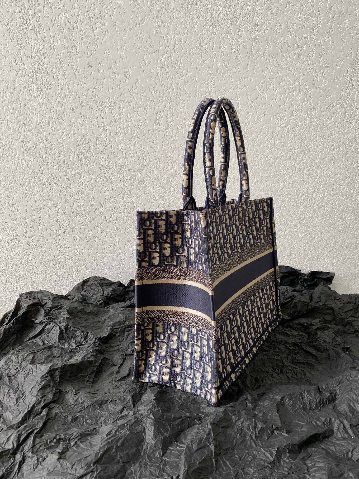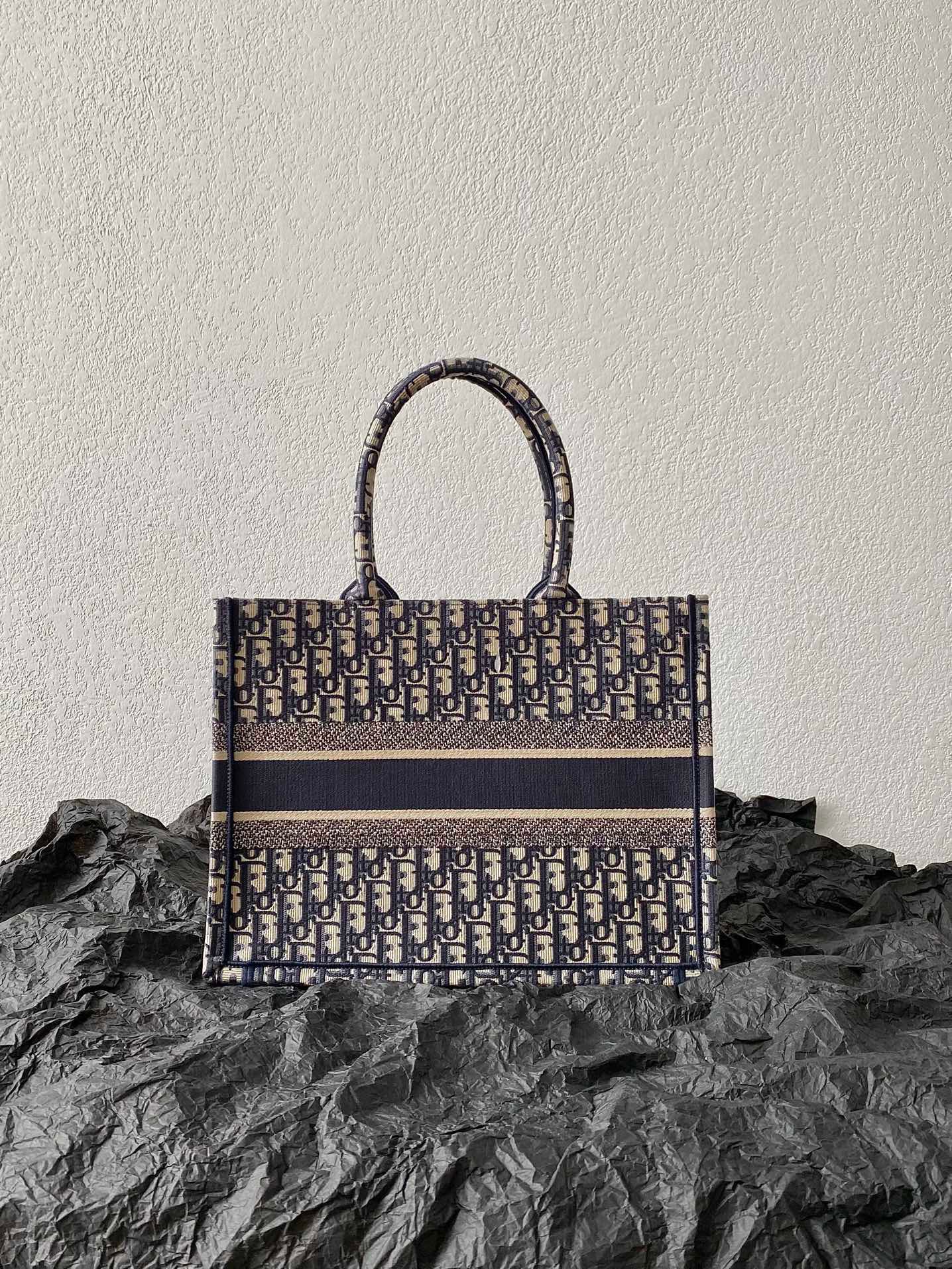 This is an authentic CHRISTIAN DIOR Oblique Medium Book Tote Blue Multicolor. This lovely tote is crafted of classic oblique print canvas in navy and beige. The bag features rolled canvas top handles and a CHRISTIAN DIOR logo embroidered on the front. The top is open to a spacious fabric interior.