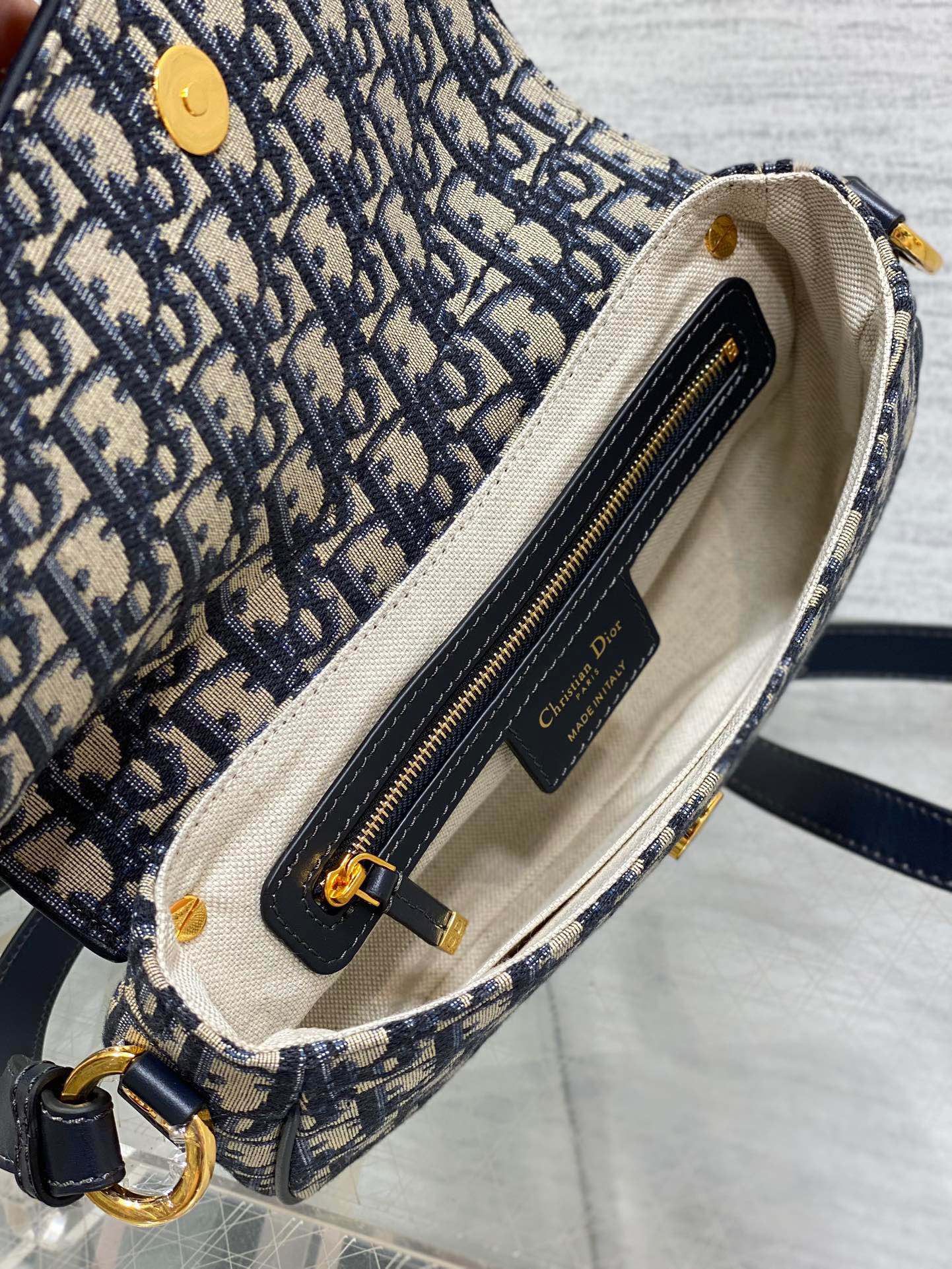 - New for the season and appearing in the Spring-Summer 2024 Fashion Show, the CD Besace bag is distinguished by its contemporary look with subtle retro accents. Made in Biege, it has a flap featuring a bold gold-finish metal CD signature, as well as a spacious, practical interior. Completed by an adjustable calfskin shoulder strap, the small bag can be worn over the shoulder or crossbody with any casual or elegant look of the season