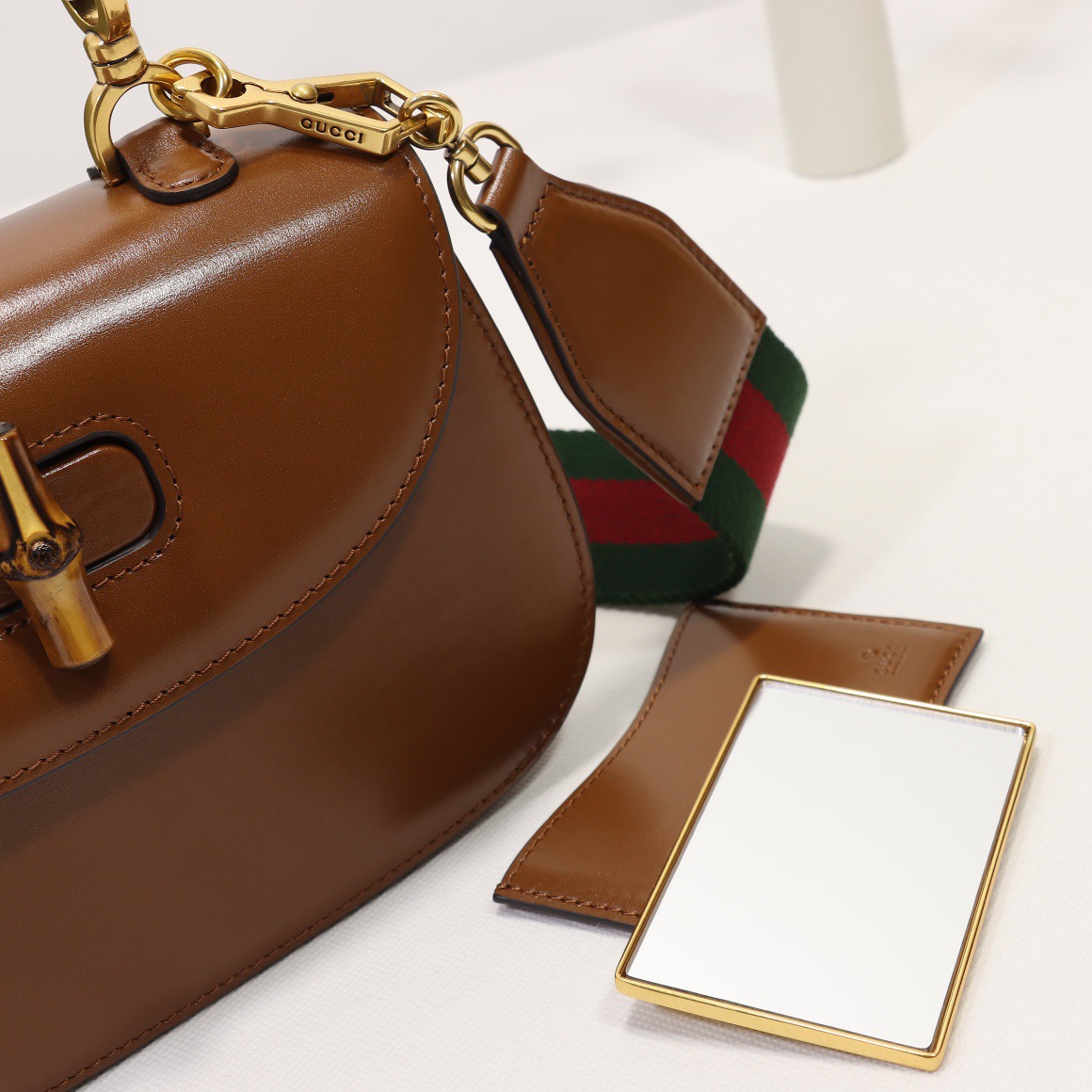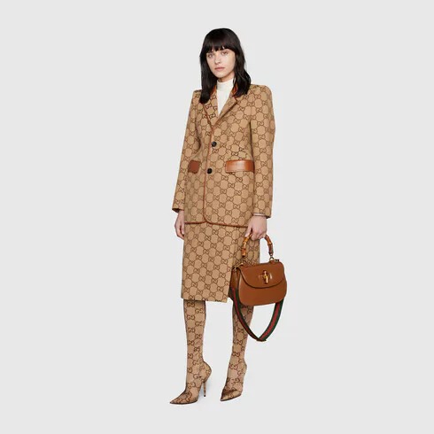 A material that speaks to the long-lasting traditions that come together to create Gucci's heritage, this bag's bamboo handles are expertly curved using a flame—a process originally conceived by Florentine artisans during the postwar period. The cuir leather style is enriched two detachable straps that allows the accessory to be worn on the shoulder or as a top handle.
