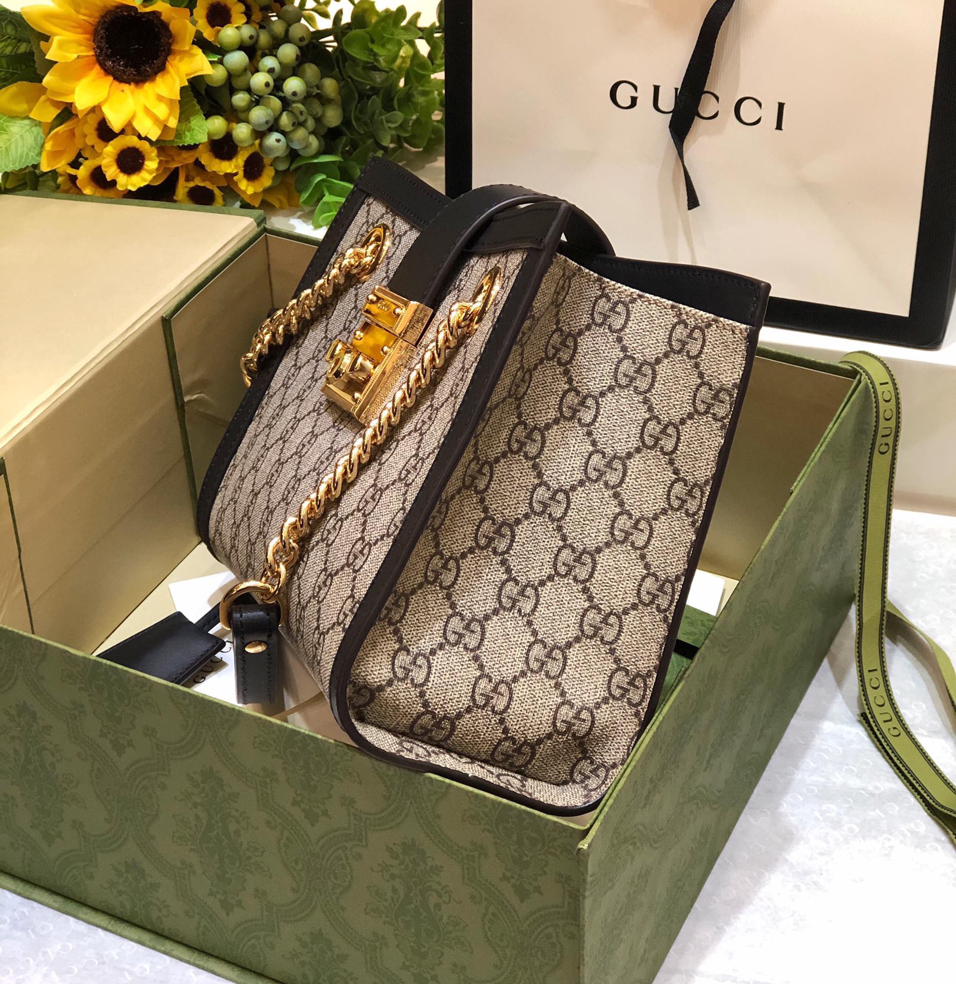 Crafted in GG Supreme canvas, this structured shoulder bag features shoulder straps with a key-lock closure straight from the archive. Keys are stored in a removable leather key pouch.