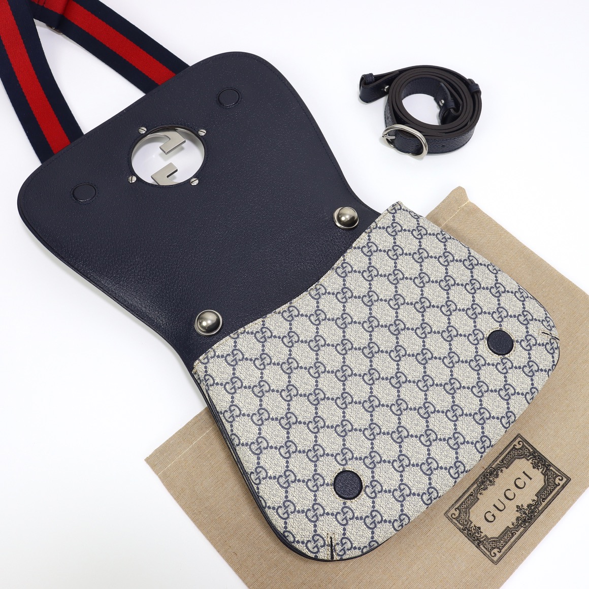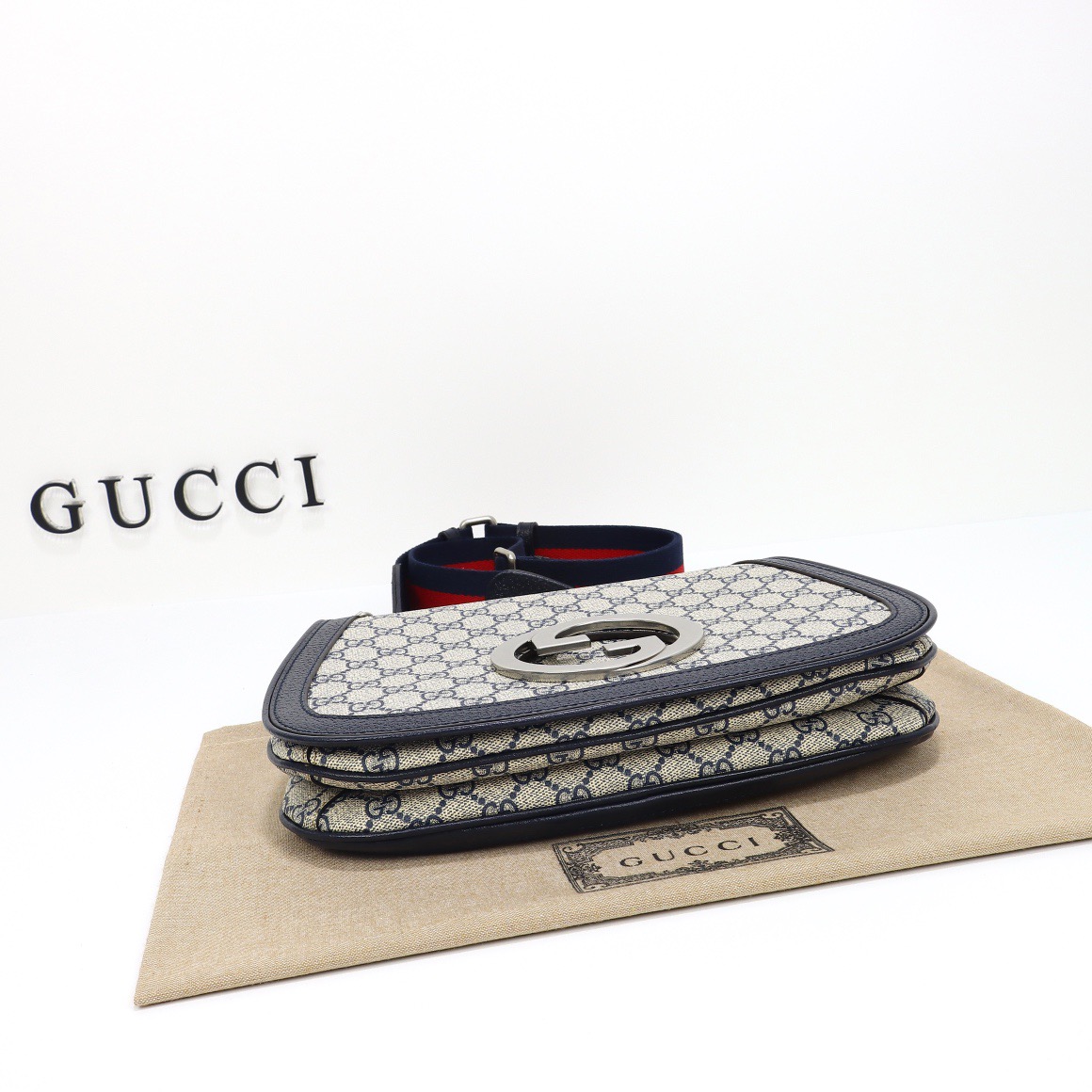 - Beige and blue GG Supreme canvas