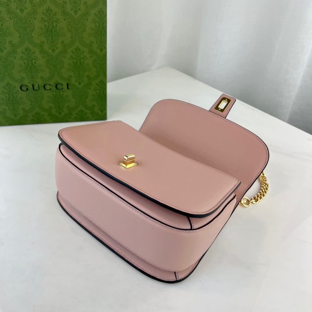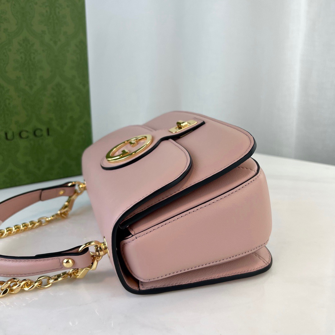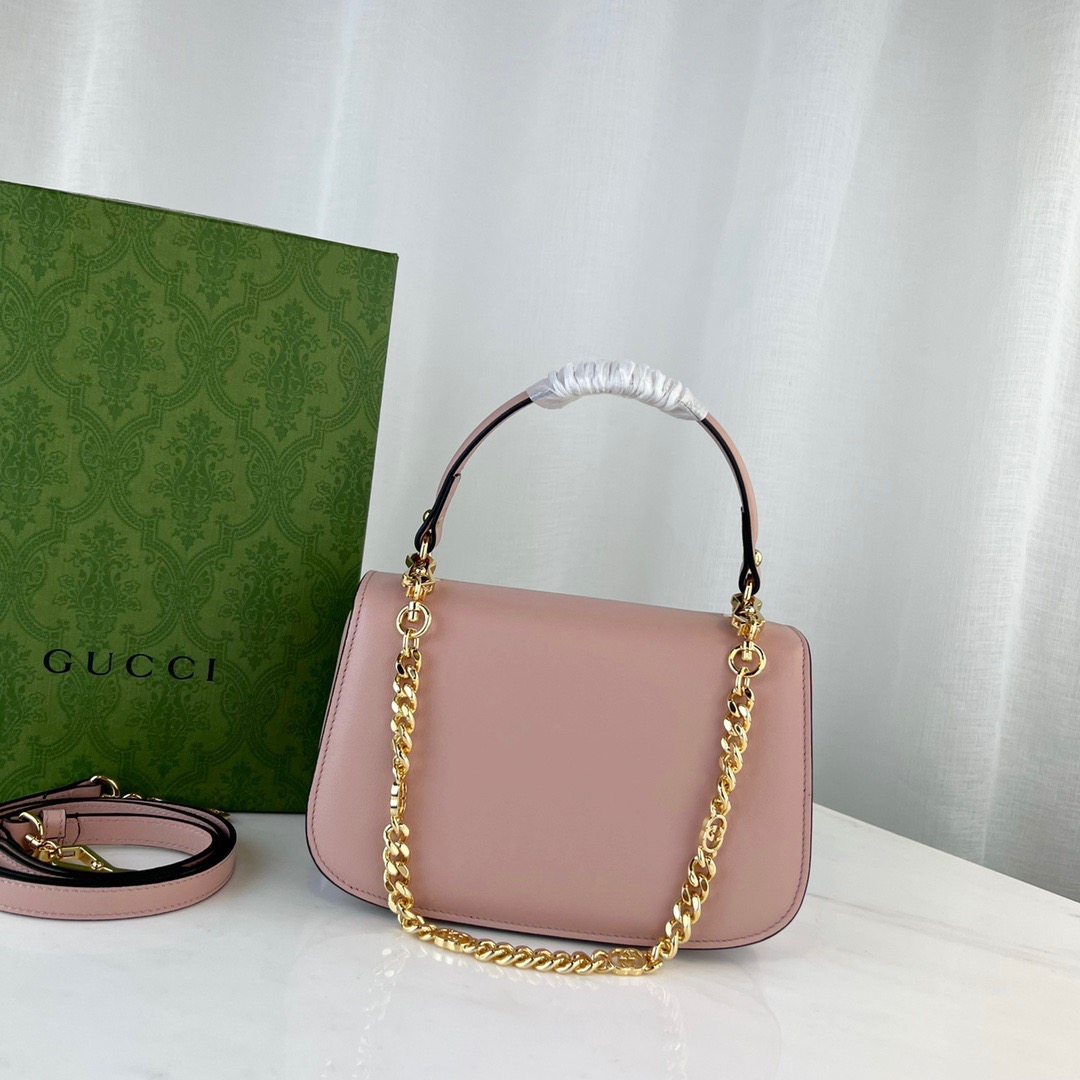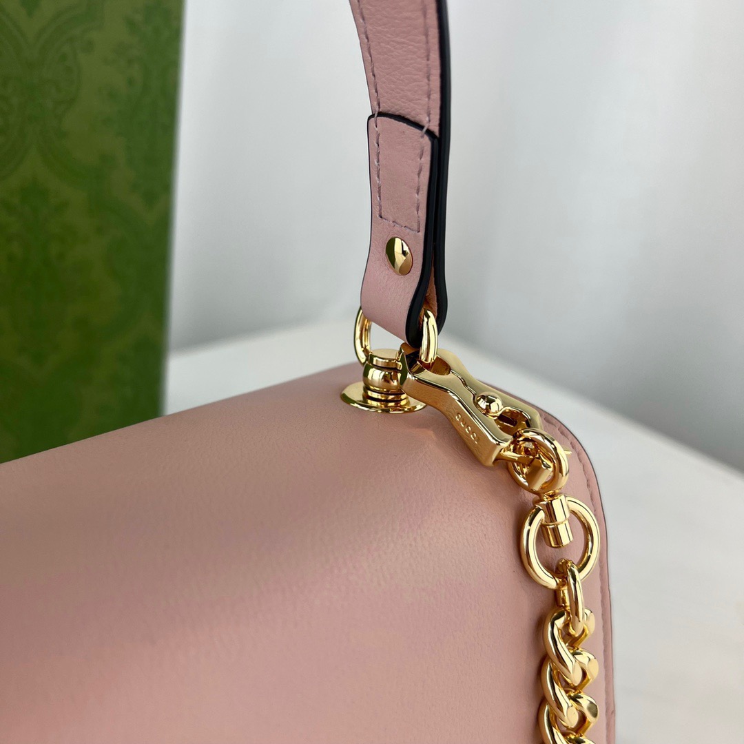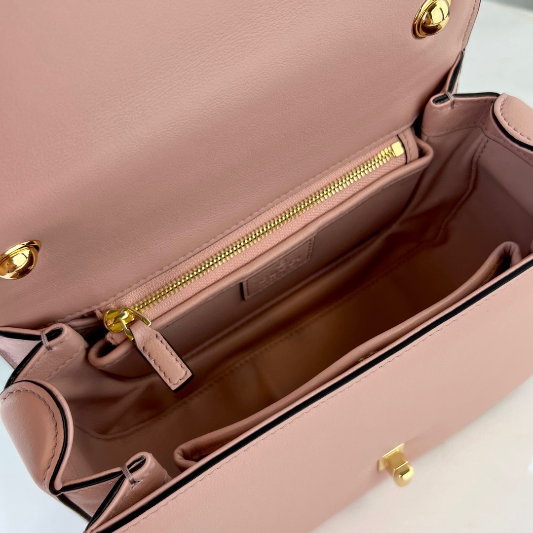 Vintage elements are paired with archival details across this small top-handle bag. The gold-toned hardware adds a defined vintage feel to the style, enriching the design with a timeless feel. The light pink leather mini bag is completed by two interchangeable shoulder straps, in tonal leather or gold-toned metal chain.