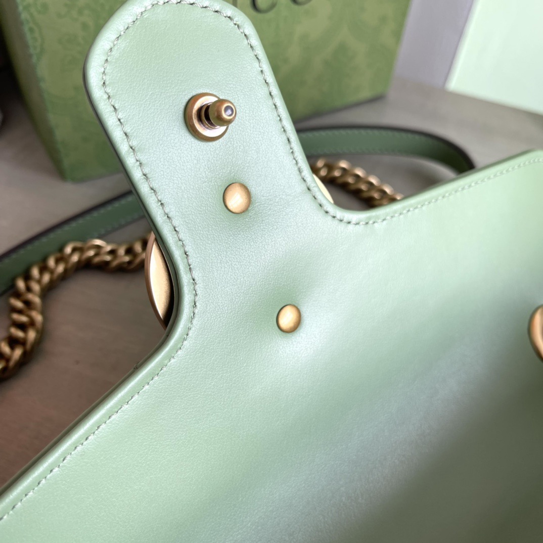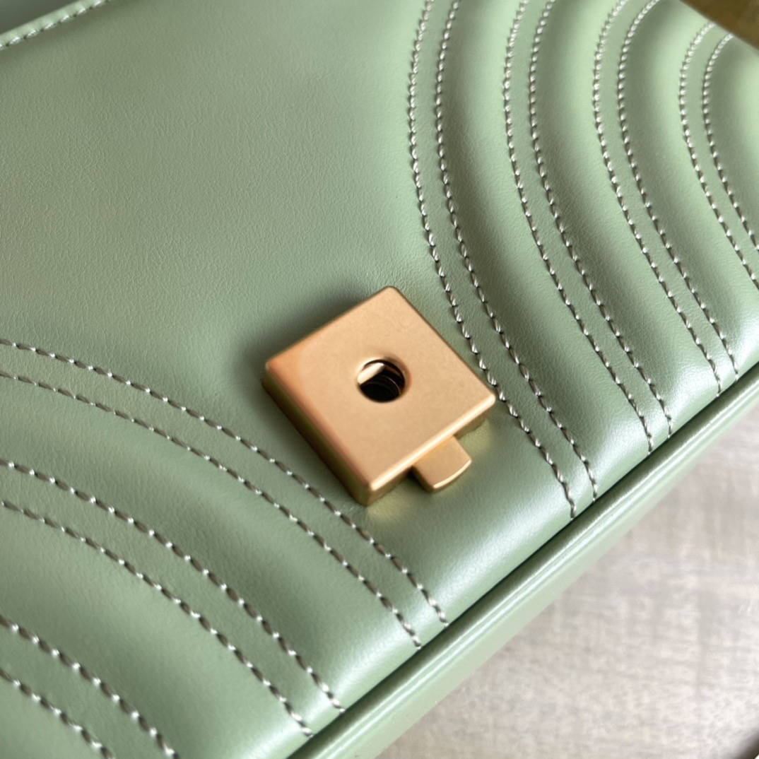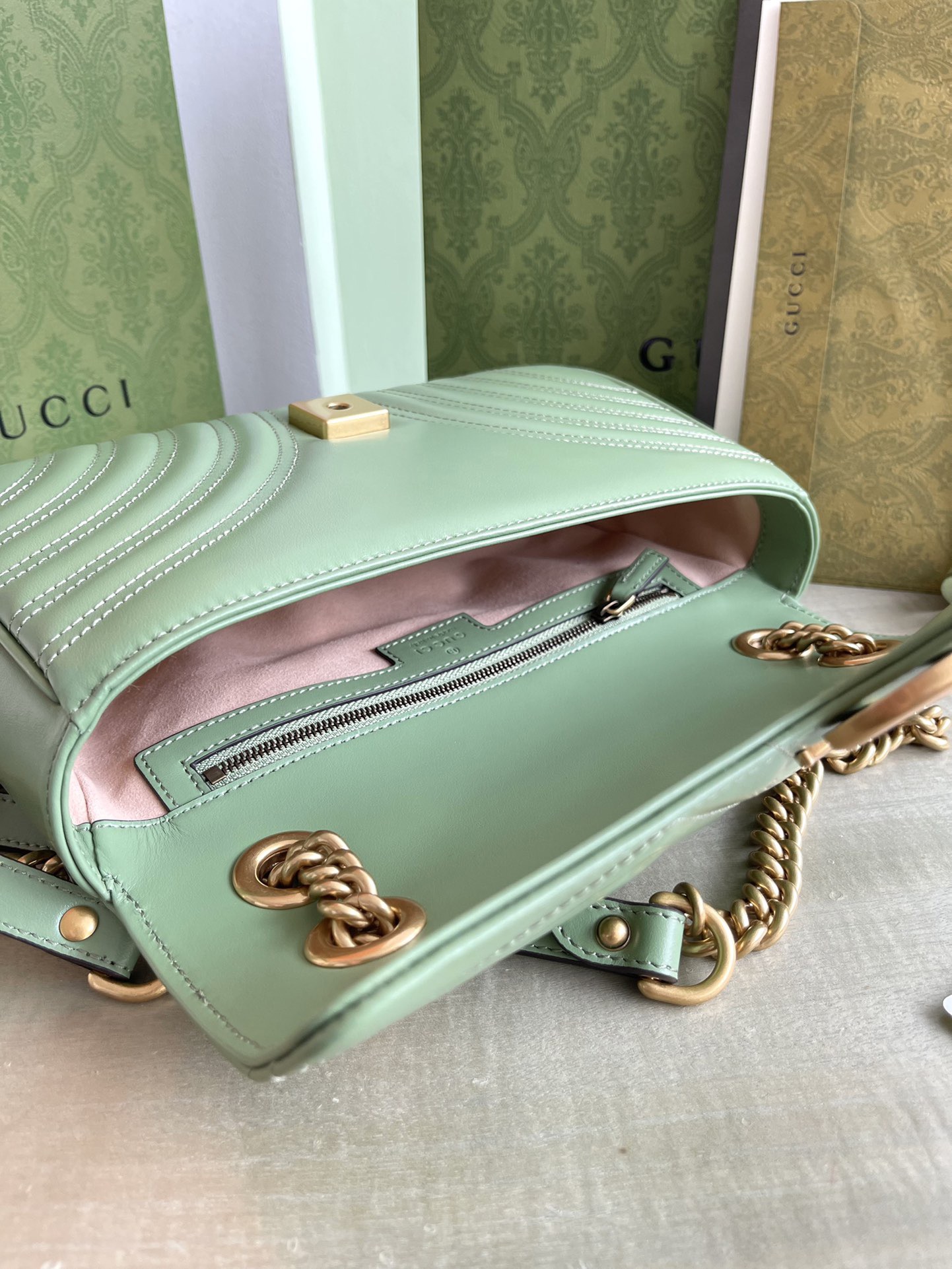 The softly structured shape of the small GG Marmont chain shoulder bag is defined by the antique gold-toned Double G hardware. The sliding chain strap can be worn multiple ways, changing between a shoulder and a top handle bag. Crafted in matelassé leather, it's enriched with curved patterns that play with fresh geometries.