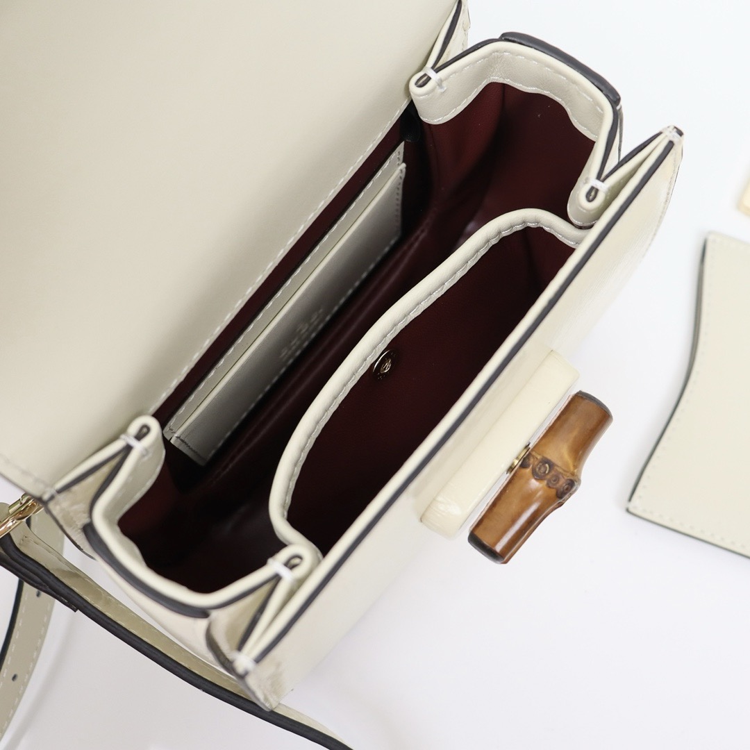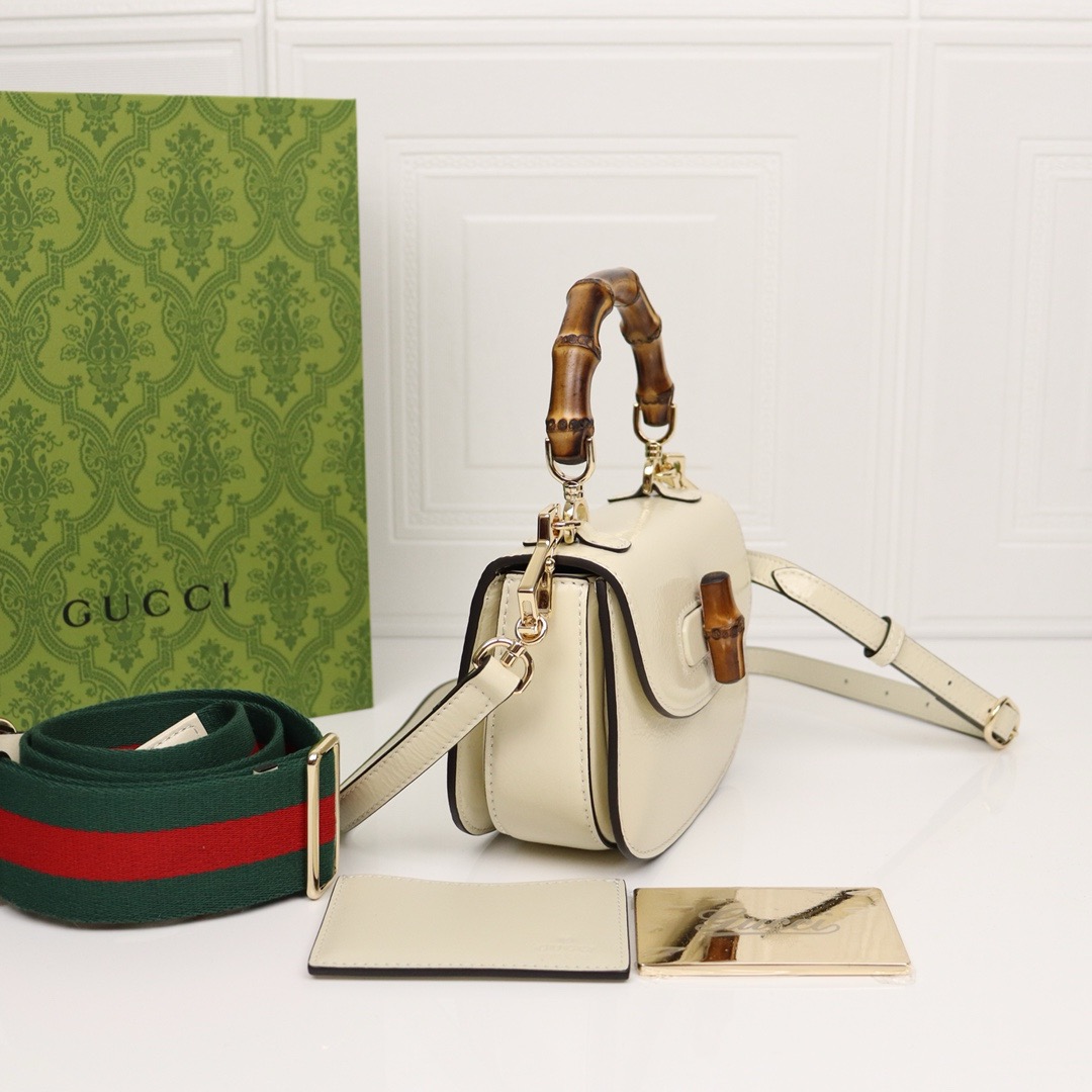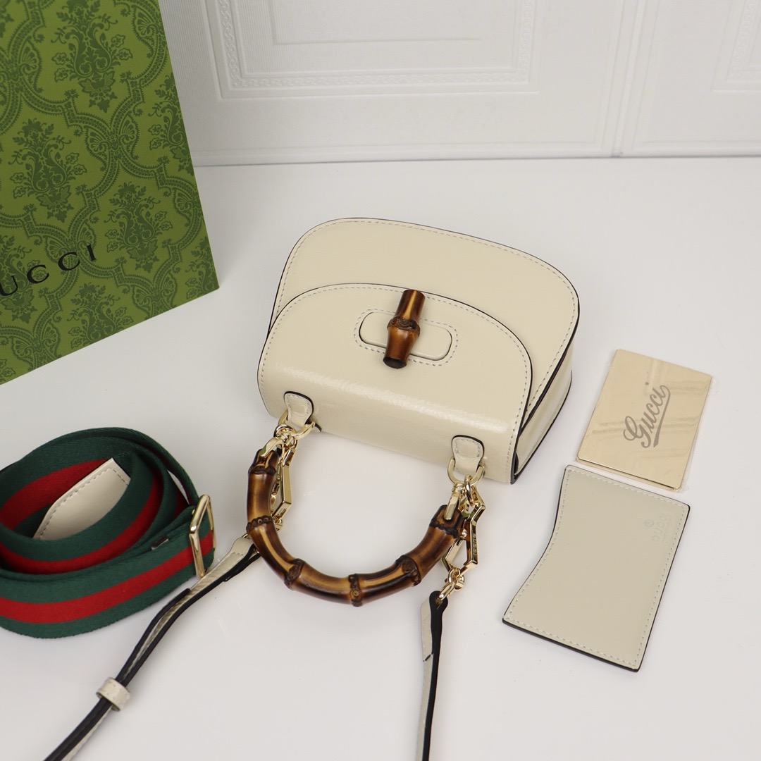 GG Bamboo 1947 Mini Top Handle Bag Heritage elements are reimagined with a contemporary twist throughout the Aria collection. An icon of Gucci’s roots, bamboo has appeared in the House’s collections since the 40s. After more than eight decades, the material that makes up this mini bag. Accessories are presented to enrich the modern, minimalist look.