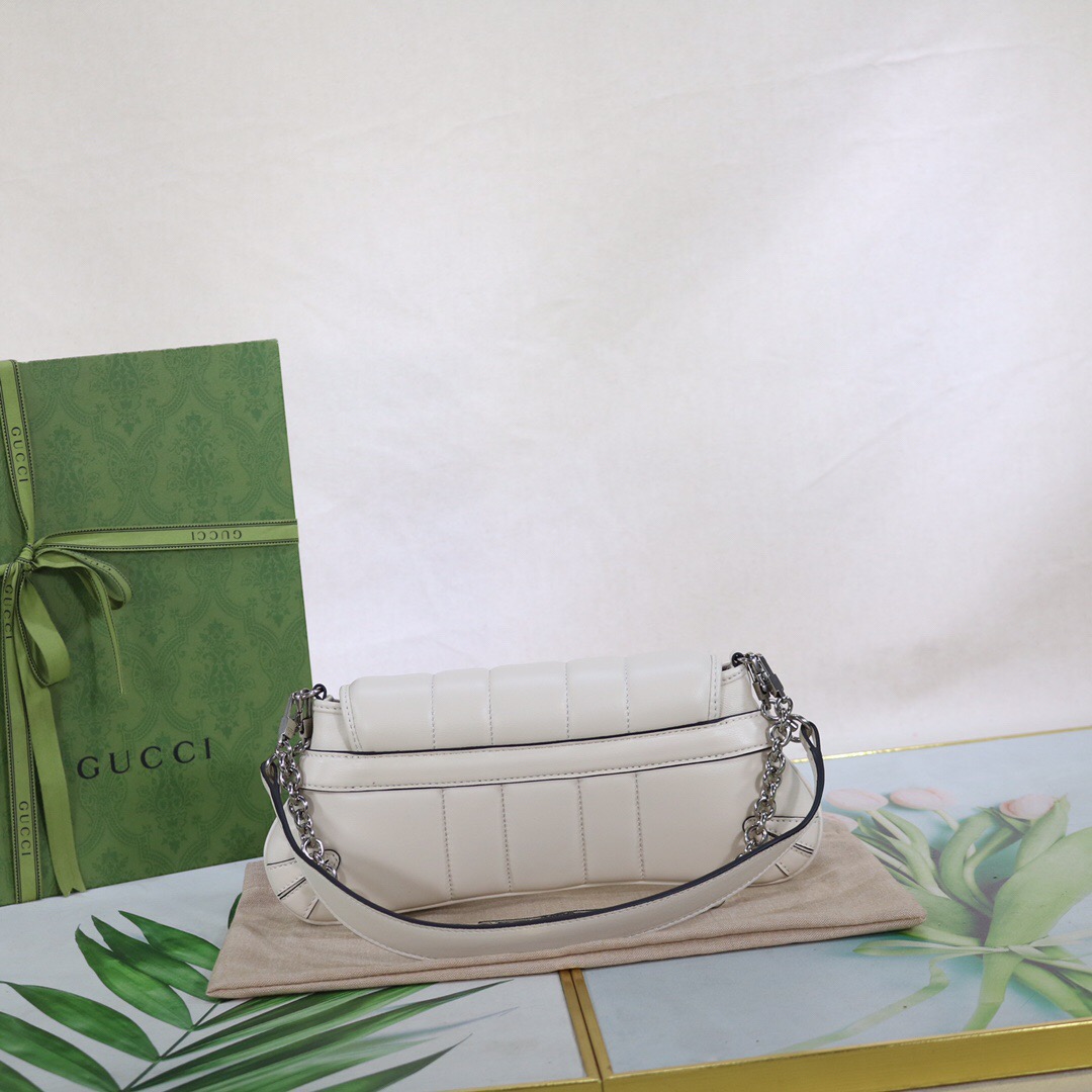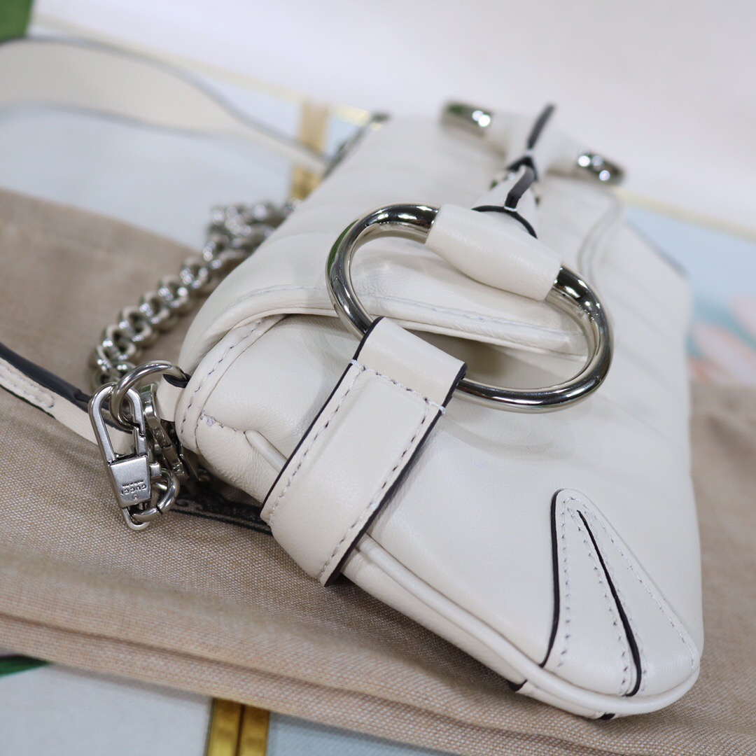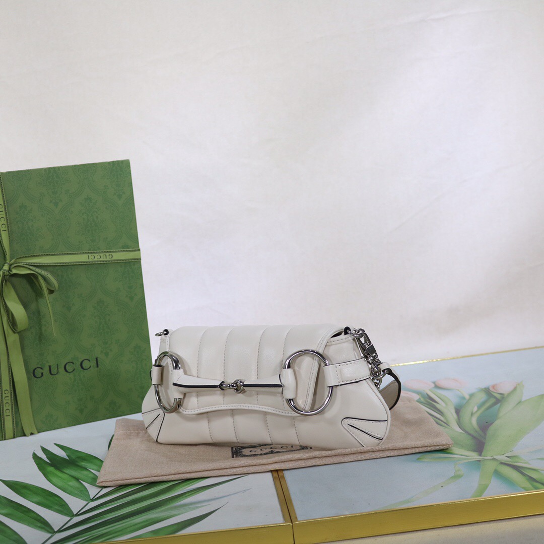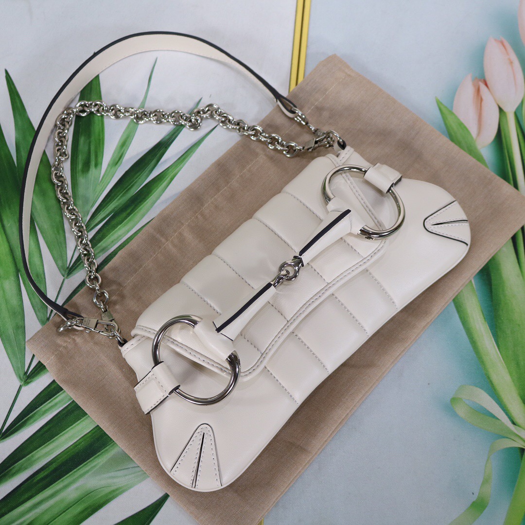 • Gucci Horsebit Chain Medium Shoulder Bag White For Women 15 Inches/ 38 Cm 764255 AACU1 9014