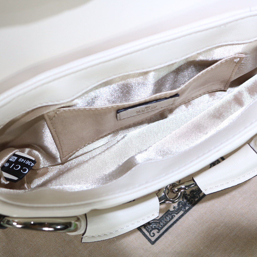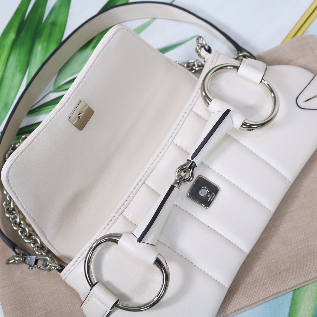 Gucci Horsebit Chain Medium Shoulder Bag White For Women 15 Inches/ 38 Cm 764255 AACU1 9014