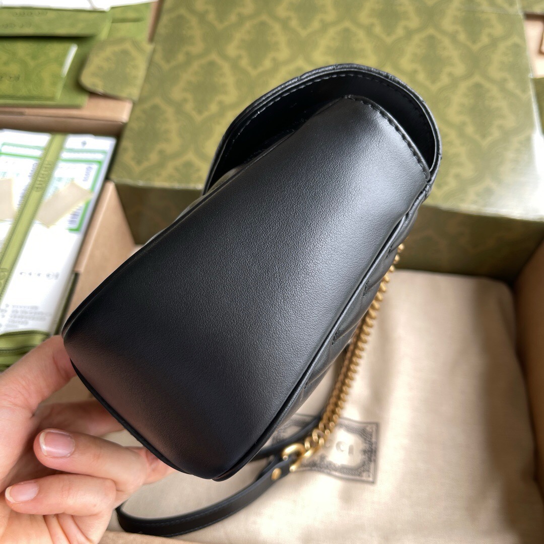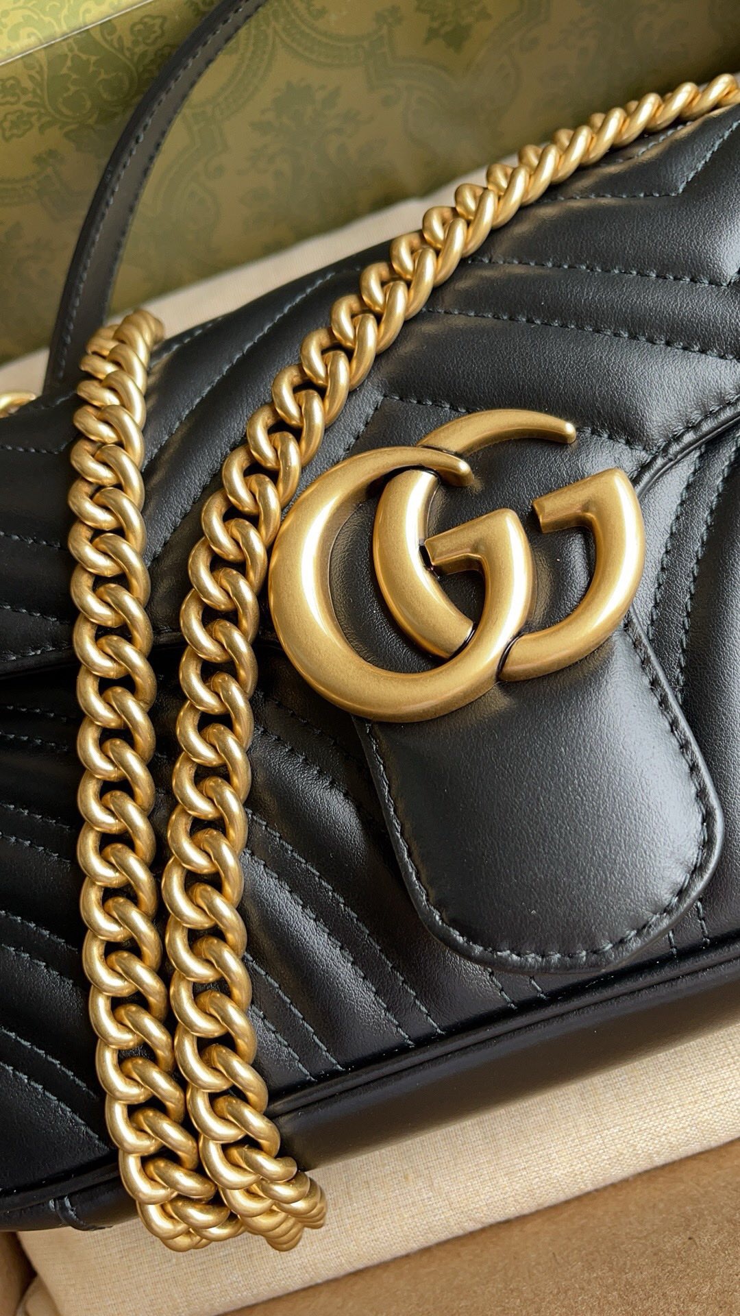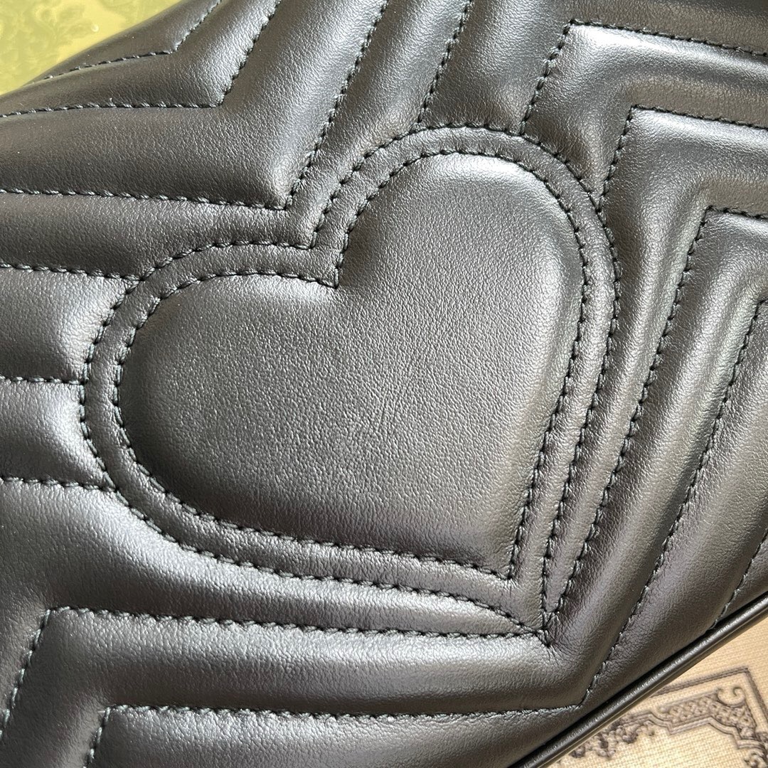 EThe pinnacle of the marmont series is the wavy quilted leather chain strap backpack with a structural soft shape with spring buckle clamshell and metal accessory chain that can slide freely understatement luxury with interior points