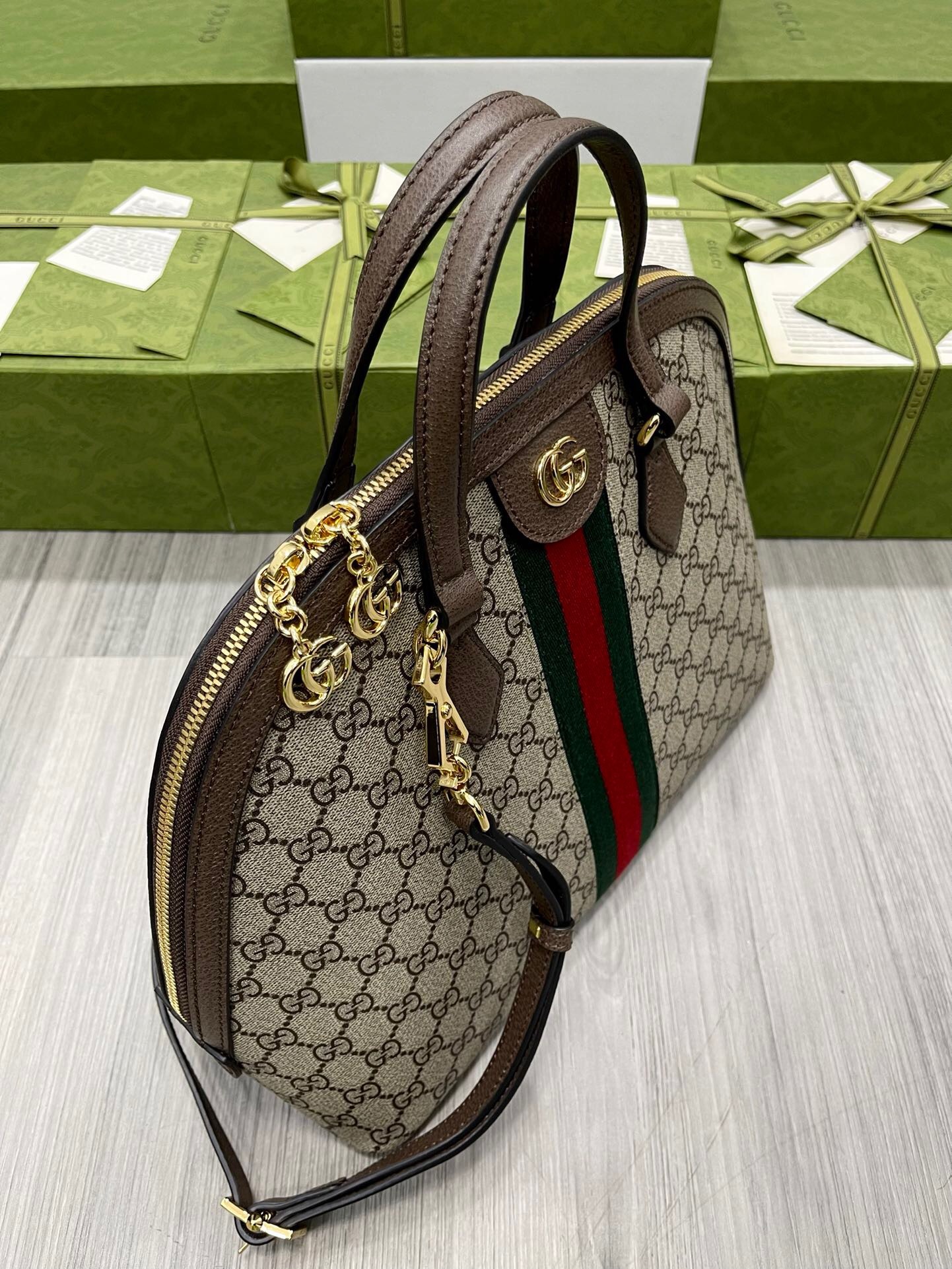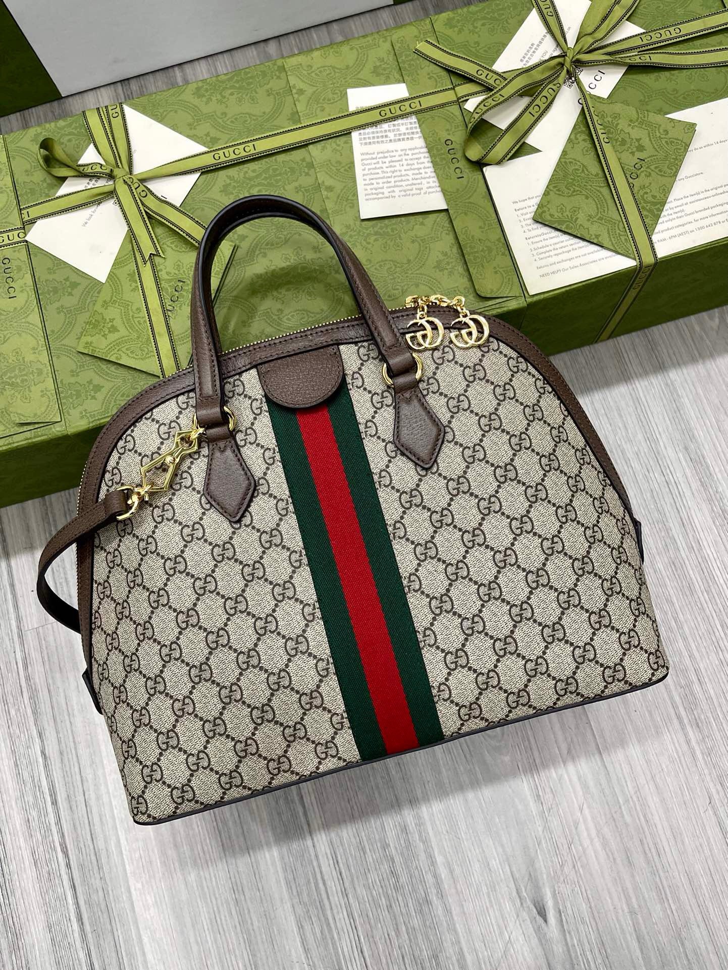 Gucci Ophidia Medium Shoulder Bag Beige/Ebony GG Supreme Canvas For Women 13in/34cm 524533