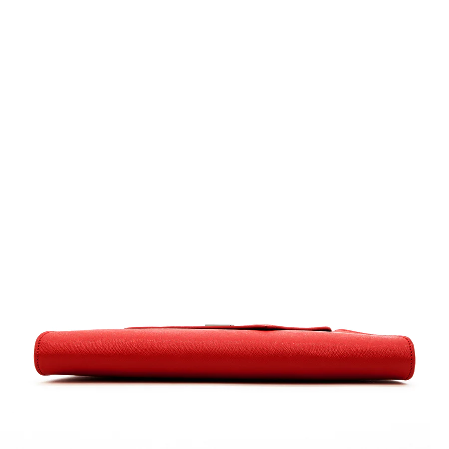 This is a sleek red purse leather bag crafted from crosshatched leather and is accented with a diagonal flap. This women's evening bag features a fabric-lined interior with a zipped pocket and a zip closure at the top. With a removable crossbody chain strap, The Angelica can be worn over the shoulder or as a chic clutch. This will be your go-to day to night designer handbag.