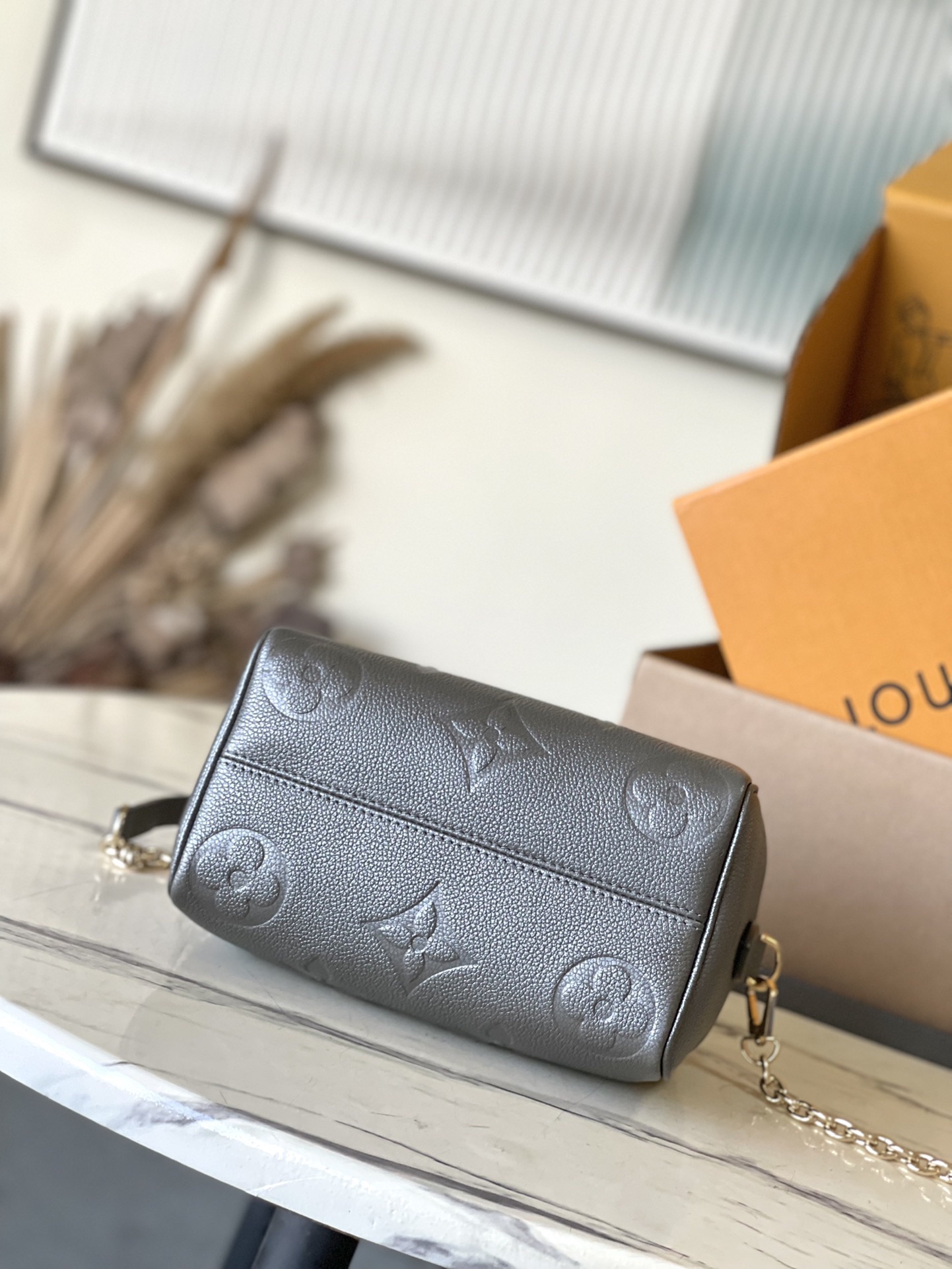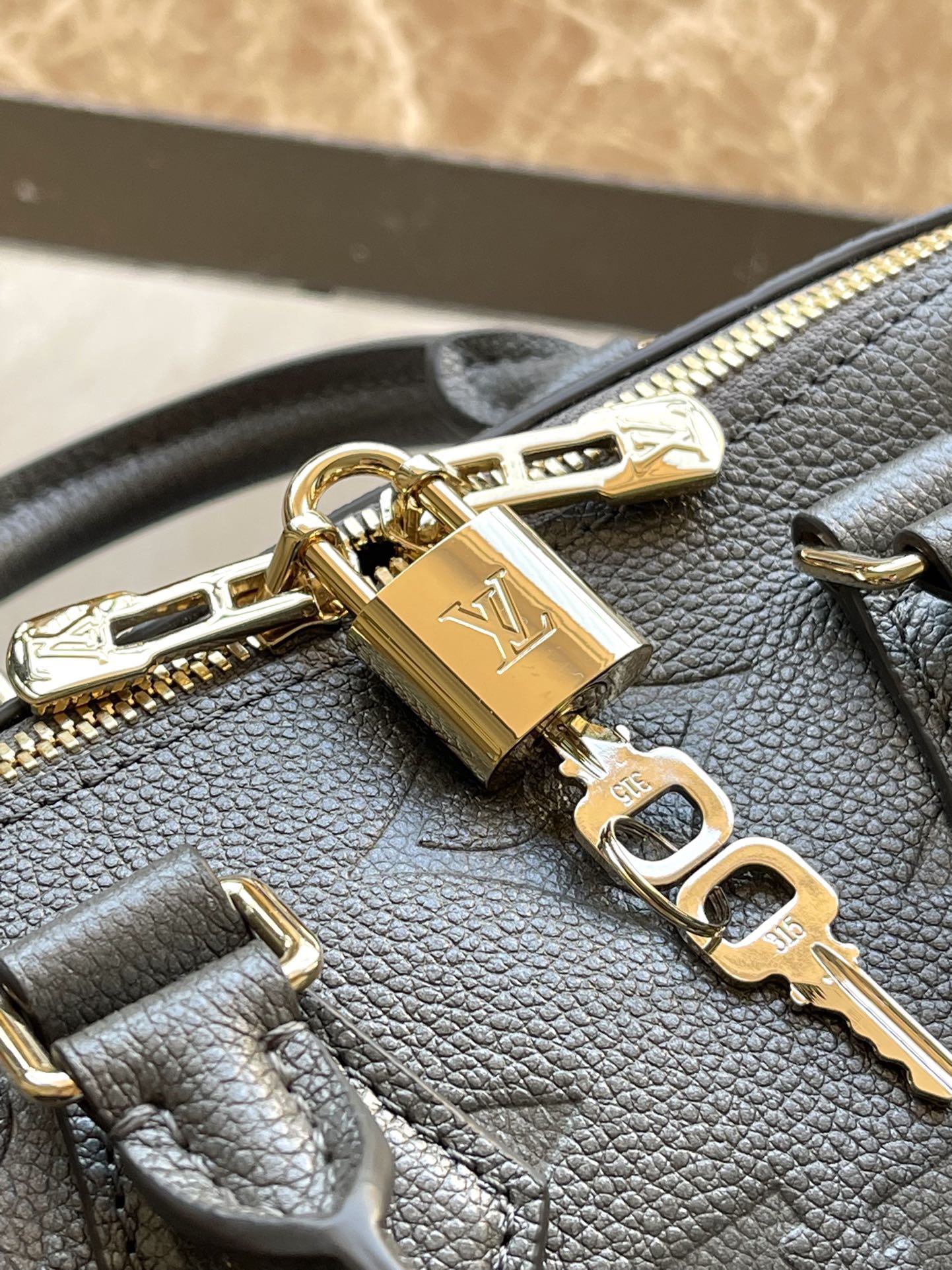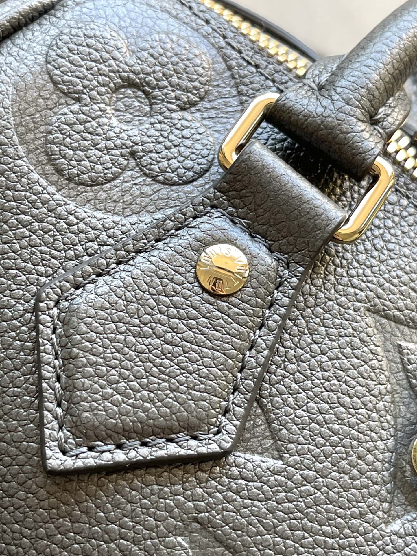 LOUIS VUITTON Speedy 20-letter embossed zipper leather one-shoulder crossbody handbag women's gray black