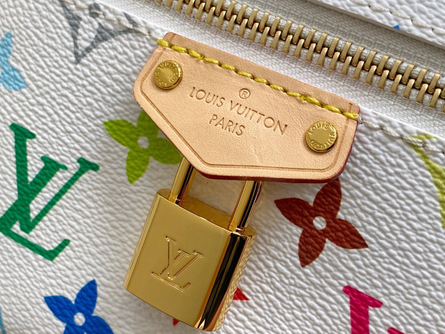 LOUIS VUITTON x Takashi Murakami Vanity Print Zipper open and close detachable chain White three-color Monogram coated canvas shoulder crossbody handbag Women's White patchwork multicolor