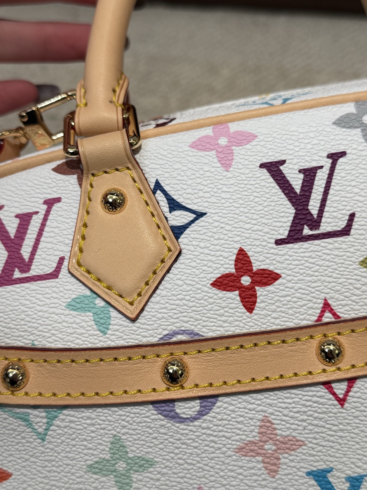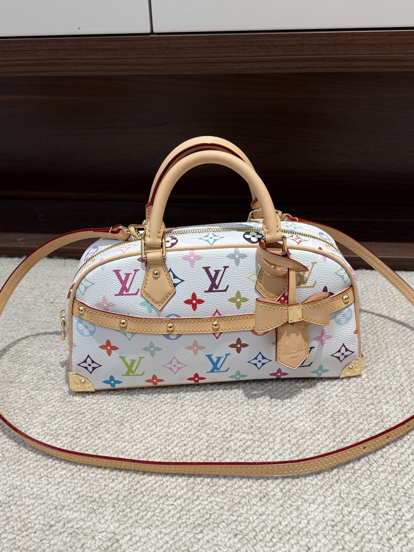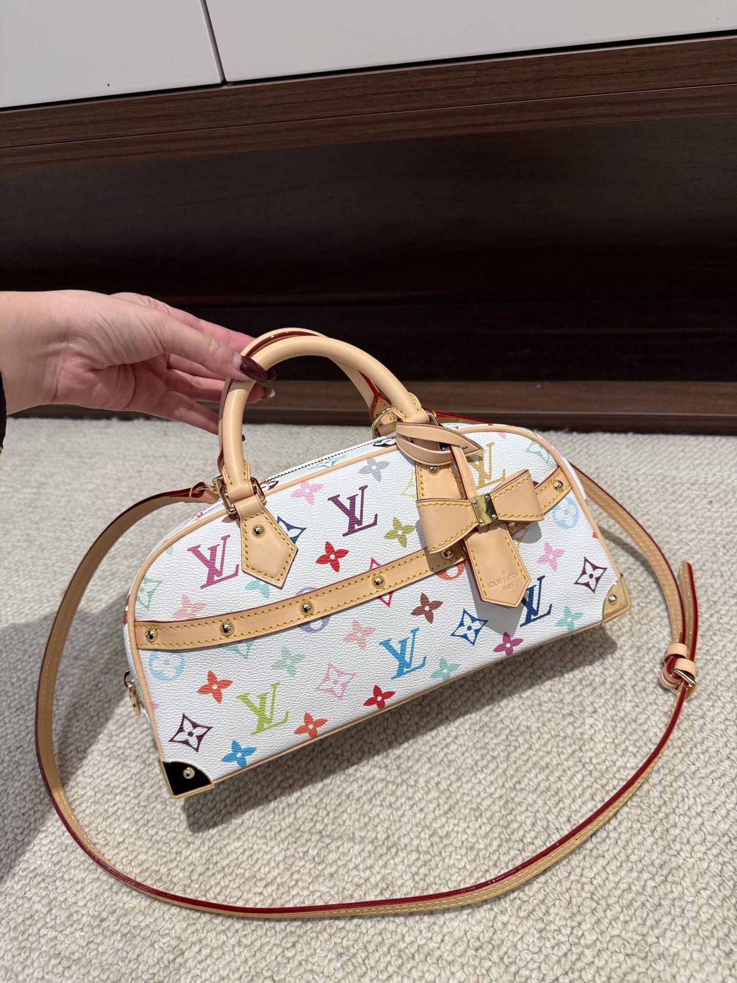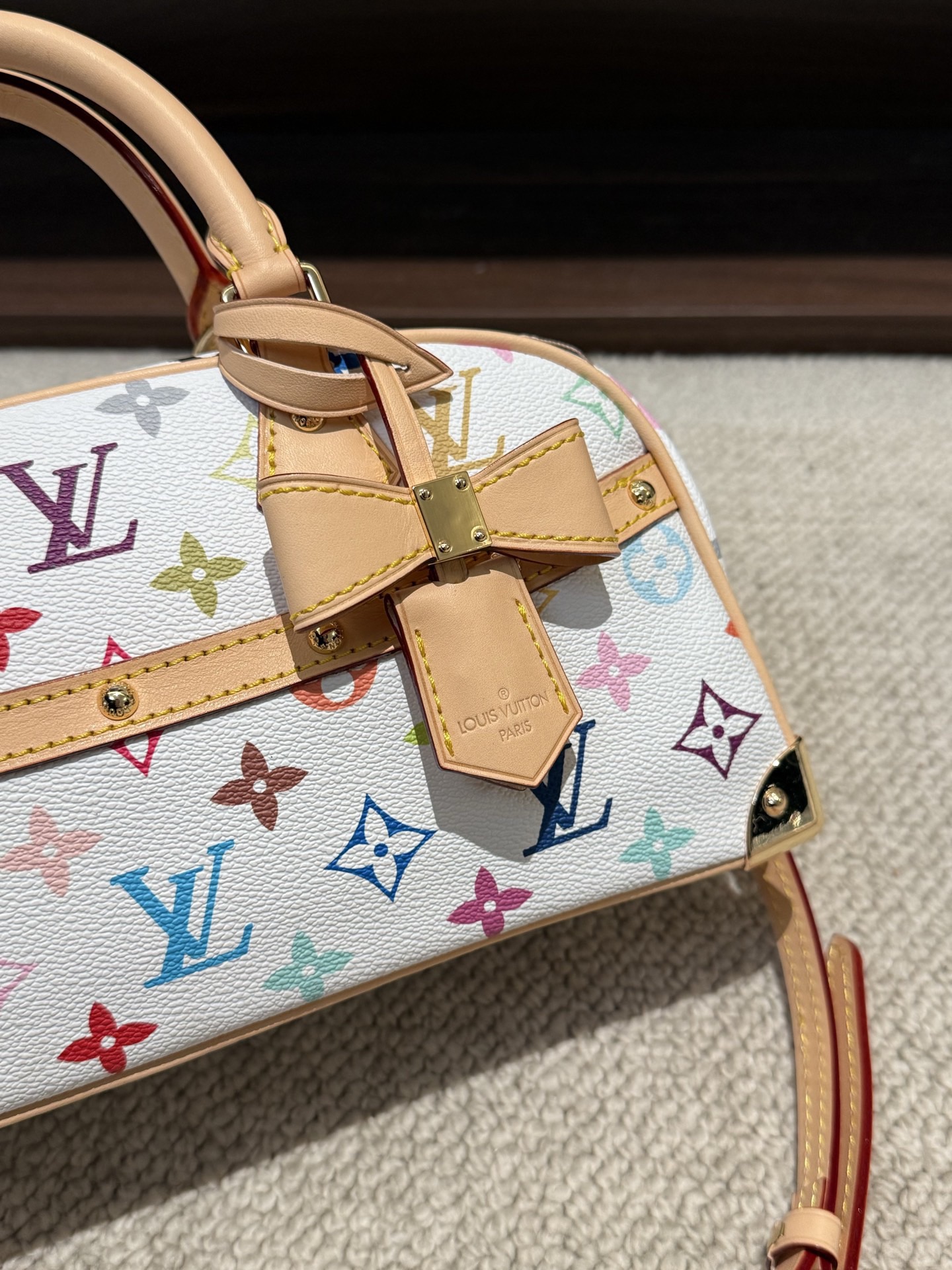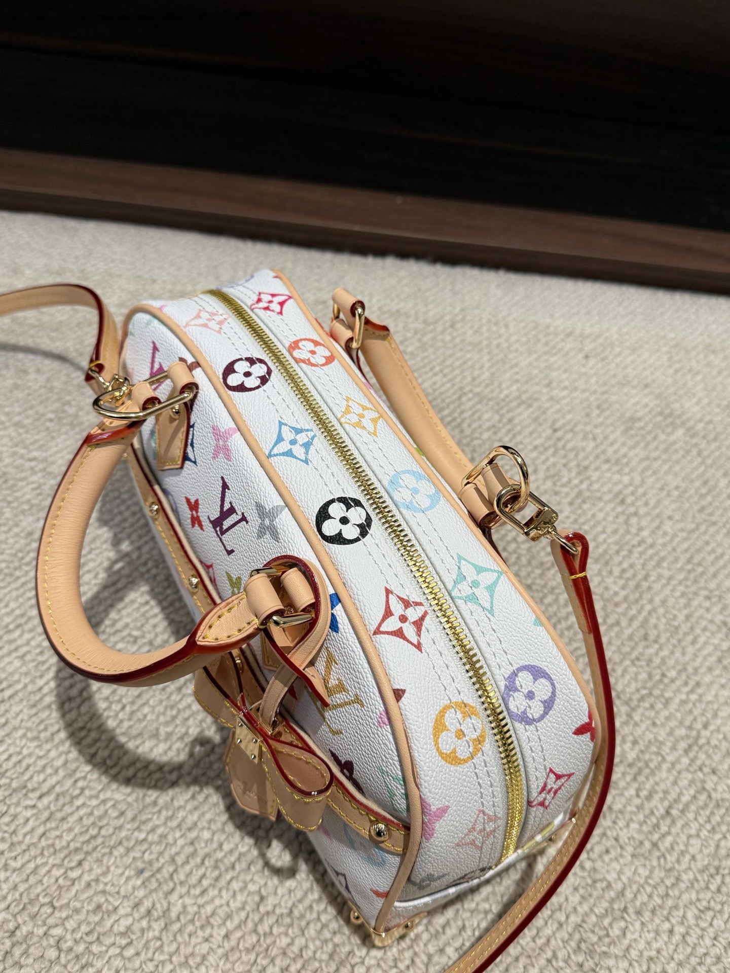 LoUIs VUITTON x Takashi Murakami Takashi Murakami East West Detachable Shoulder strap Zipper Open and Close White tri-color coated canvas leather Trim Single shoulder crossbody handbag Women's White