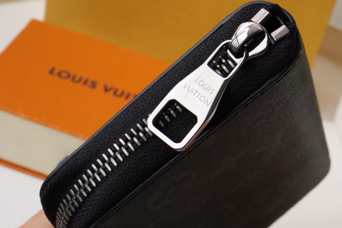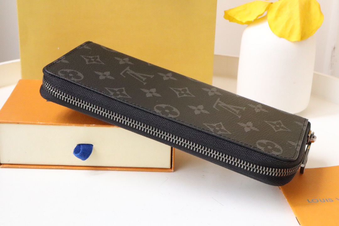 In contemporary Monogram Eclipse canvas, Louis Vuitton\'s Zippy Vertical wallet is a stylish and practical way to carry essential cards and cash. It has a secure zip-around design which features multiple credit card slots, a zipped pocket for coins and compartments for papers and banknotes.