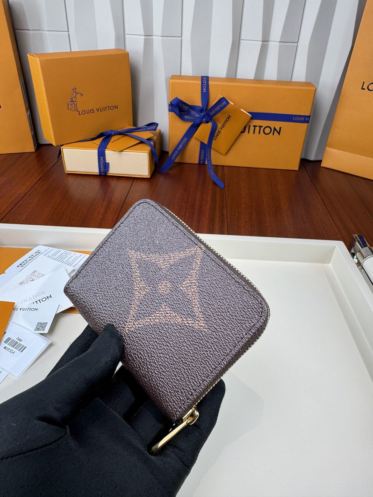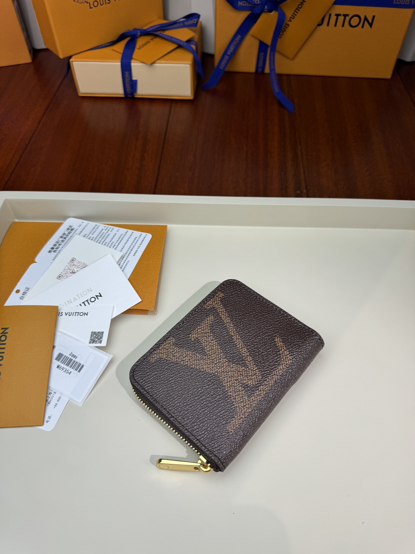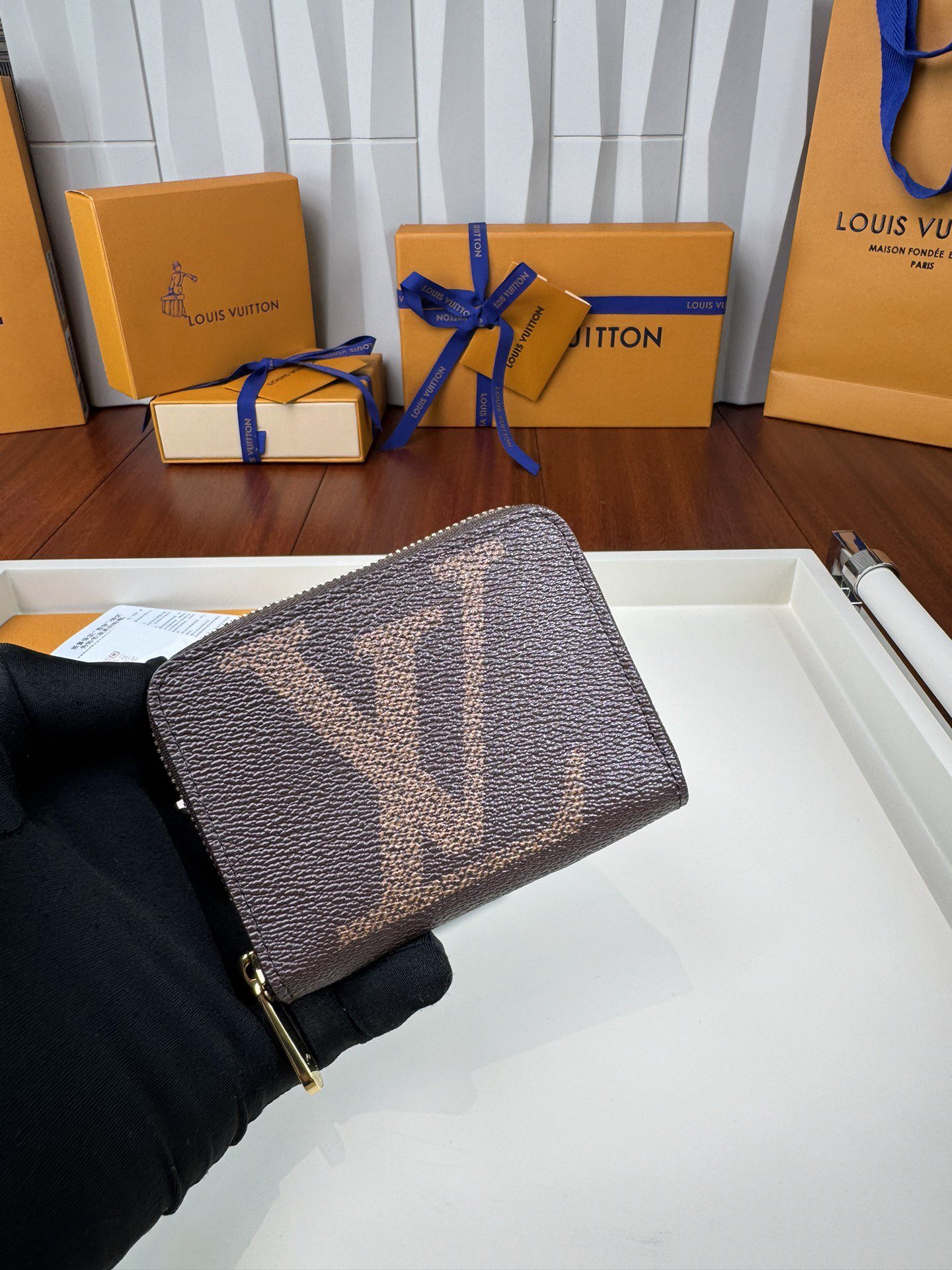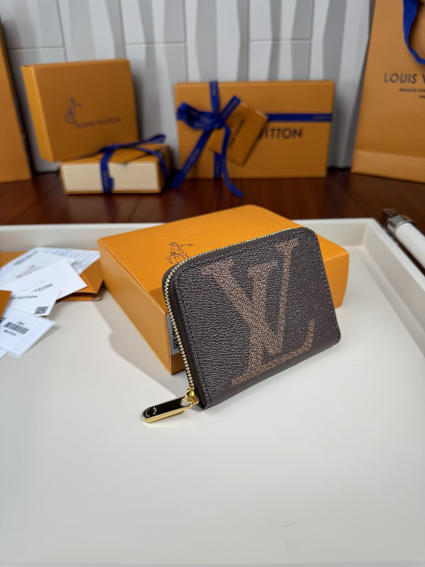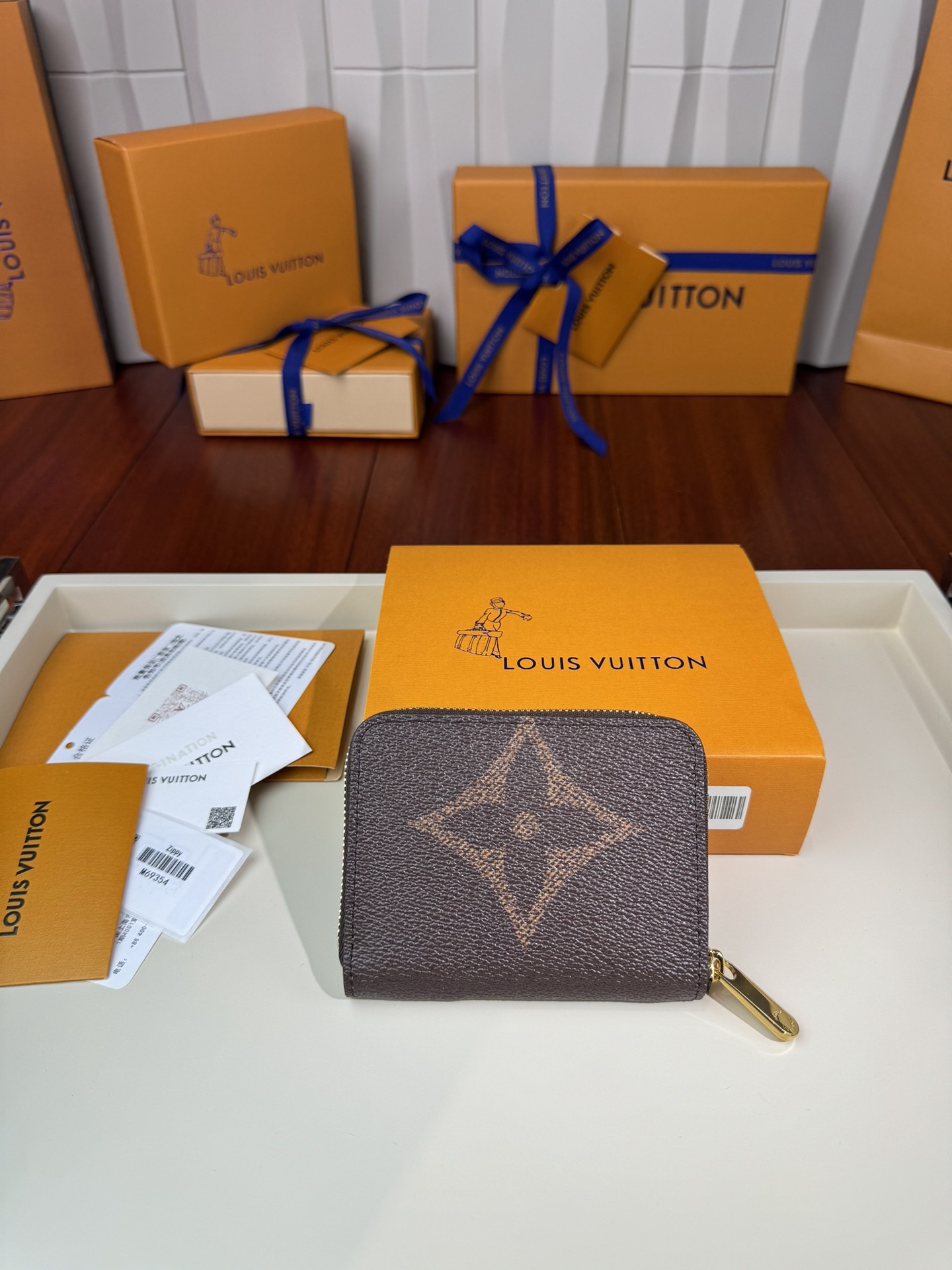 The maxi-sized LV initials and Monogram blossoms of the Giant Monogram canvas make the Zippy Coin Purse strikingly graphic. The purse’s compact design elegantly holds cash and credit cards in a secure zip-around format.