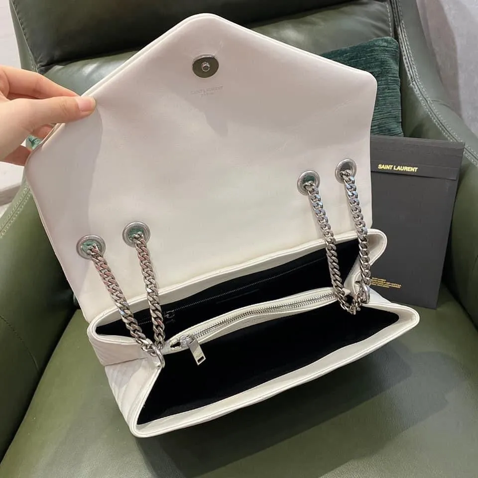 Y MONOGRAM BAG WITH FRONT FLAP. FEATURING INTERLACED METAL Y INITIALS. A LEATHER AND METAL CHAIN STRAP THAT CAN BE WORN DOUBLED ON THE SHOULDER AND Y-QUILTED OVERSTITCHING.