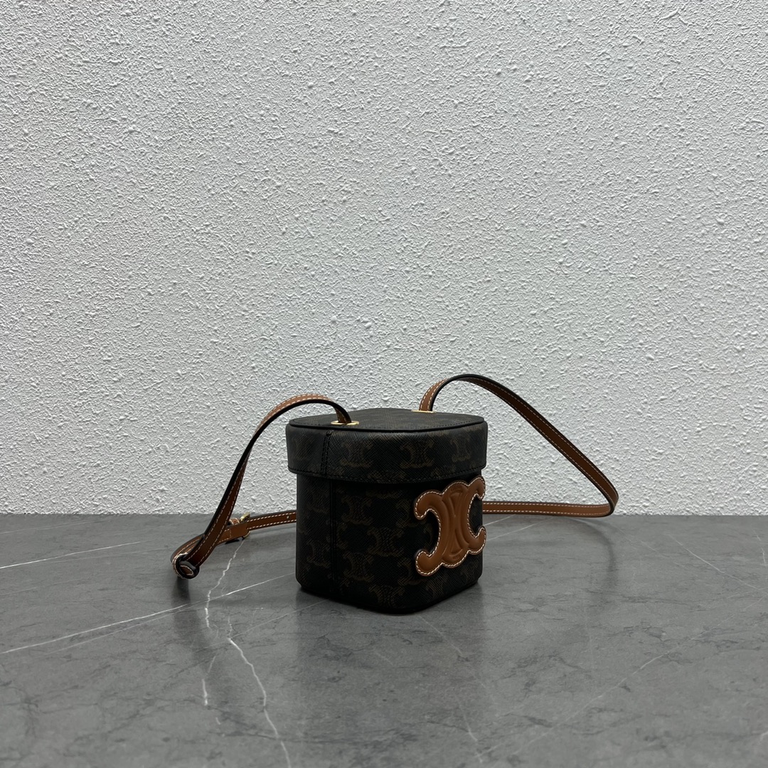 • Celine Small Box Cuir Triomphe In Triomphe Canvas Tan For Women 4in/11cm 199262EIN.04LU