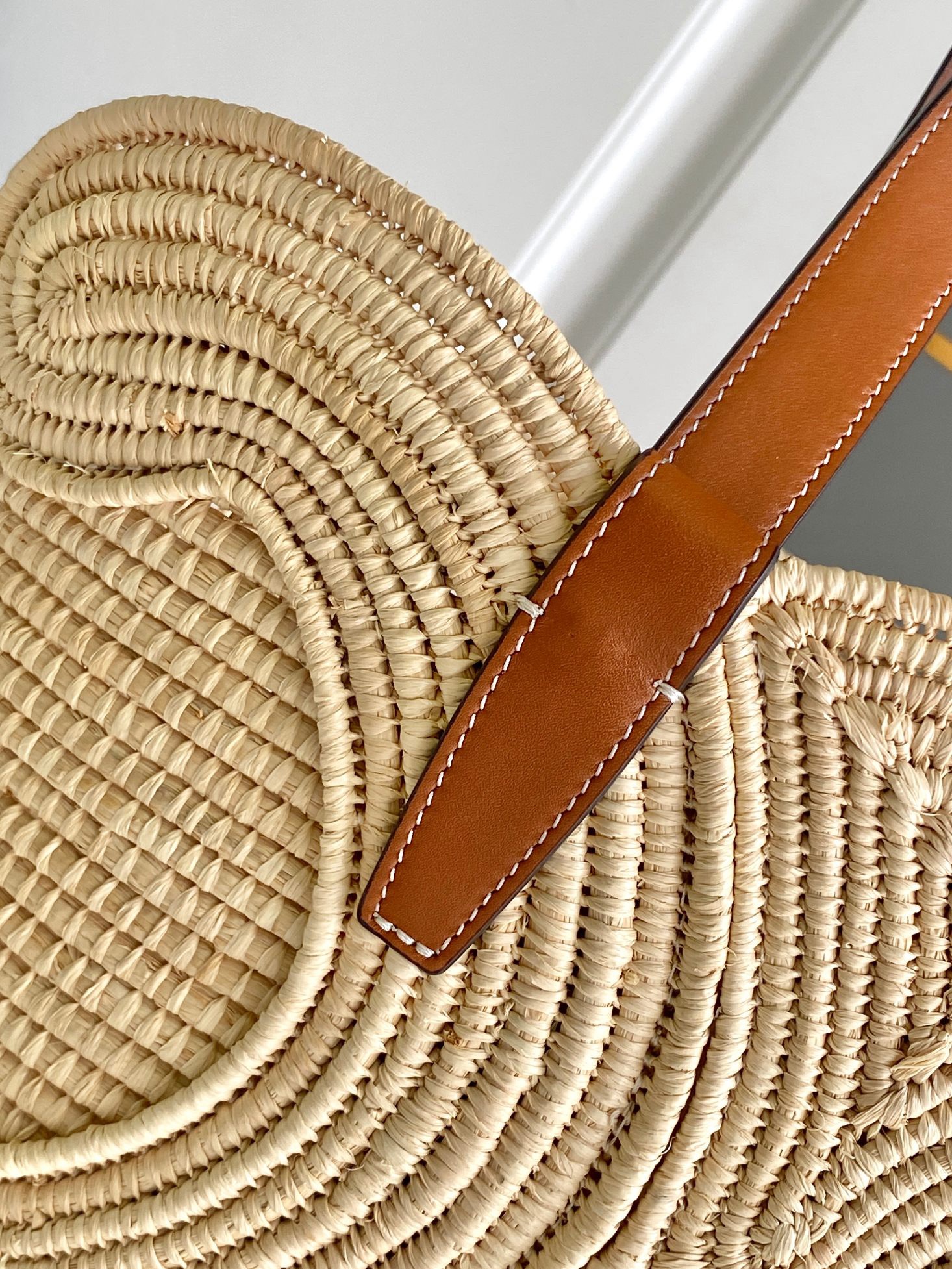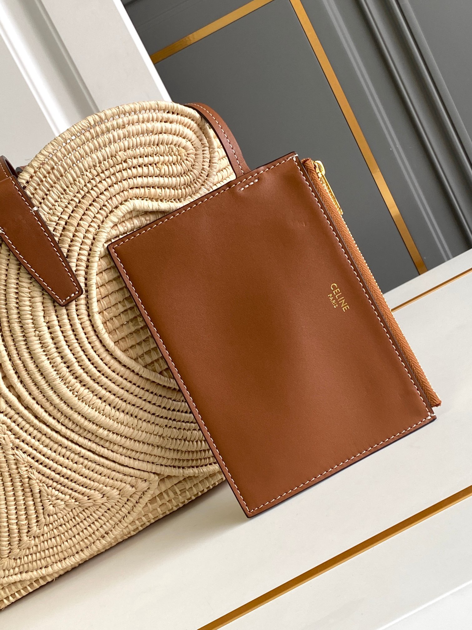 • Celine plant material and beef leather trumpet woven TRIOMPHE classic basket bag tan