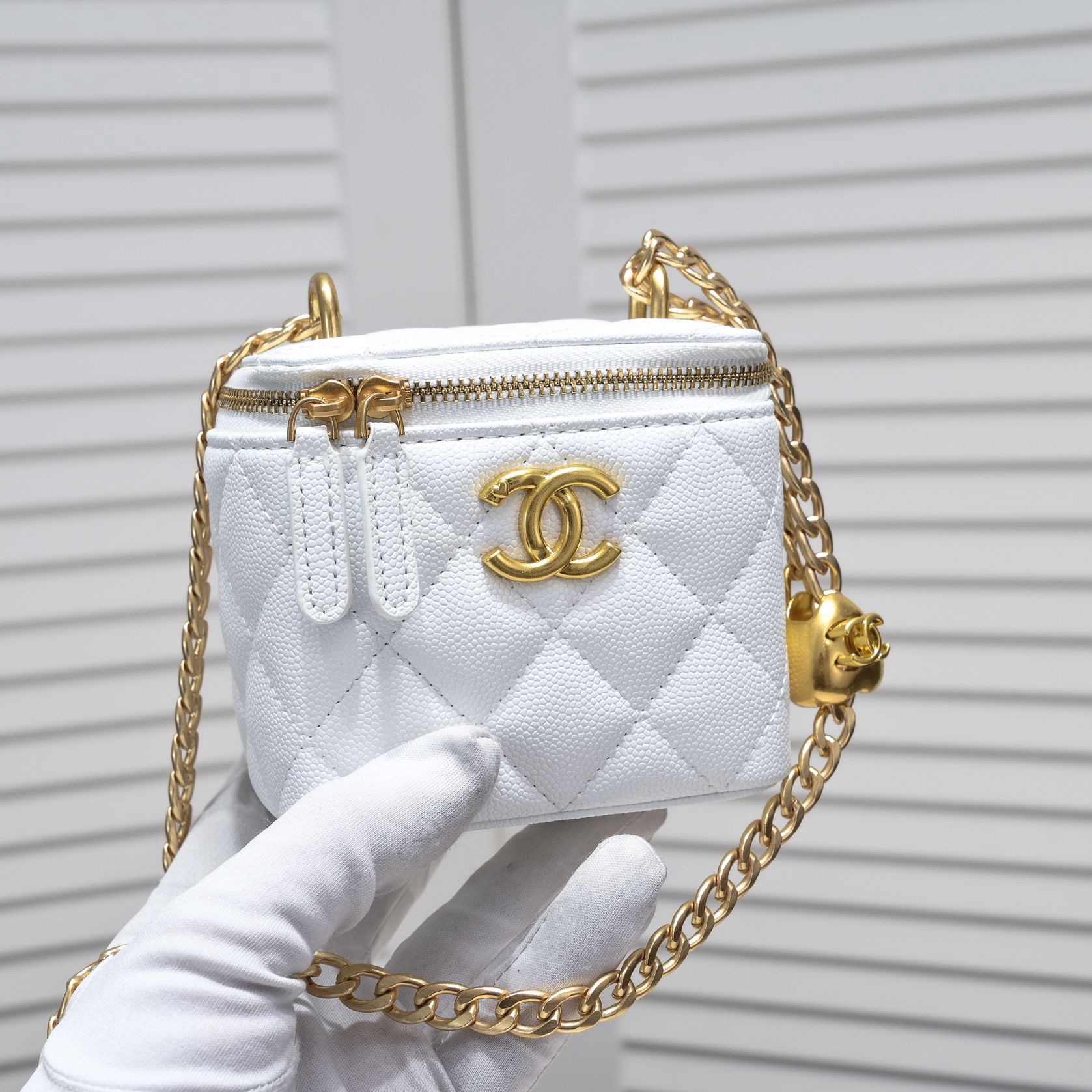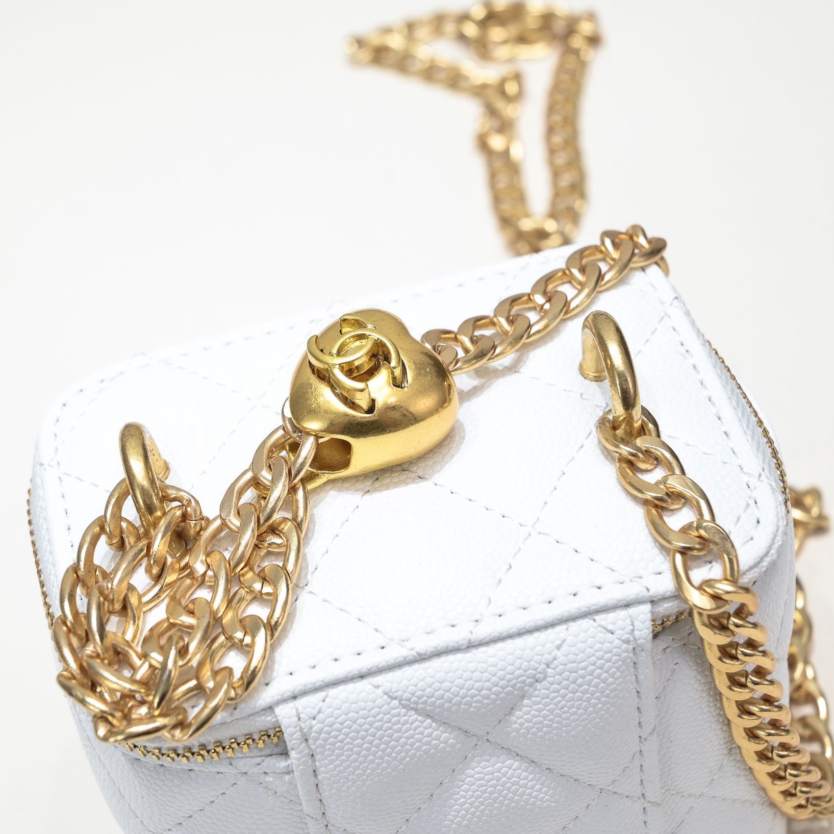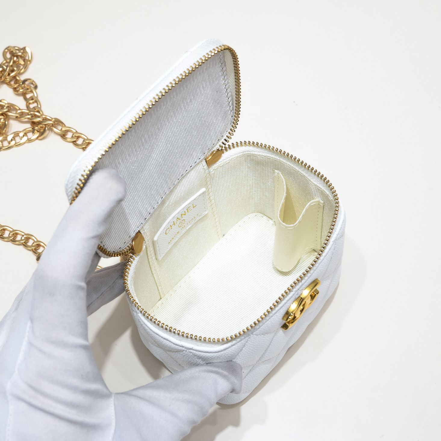 • CHANEL Calfskin Quilted Mini Perfect Fit Vanity Case With Chain White