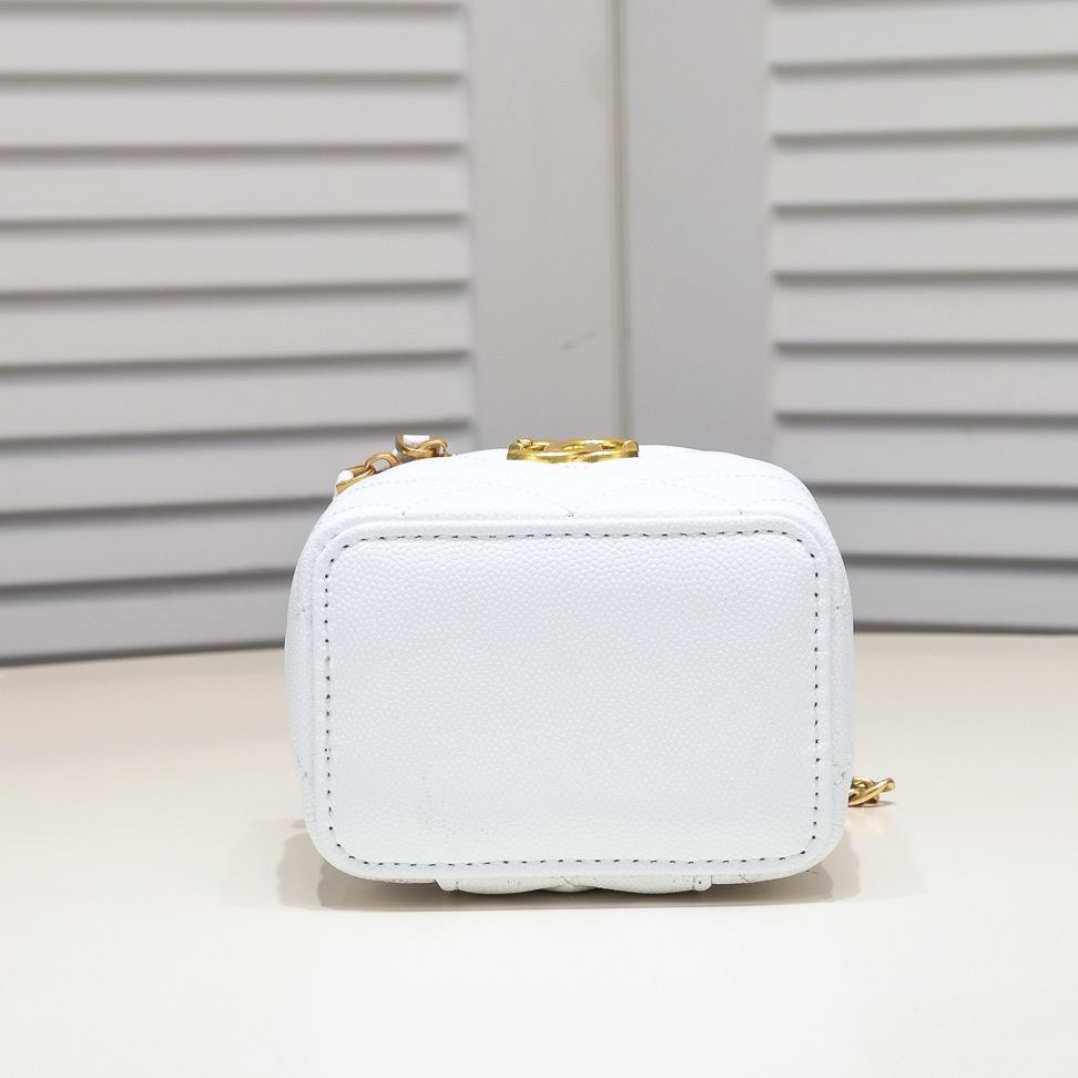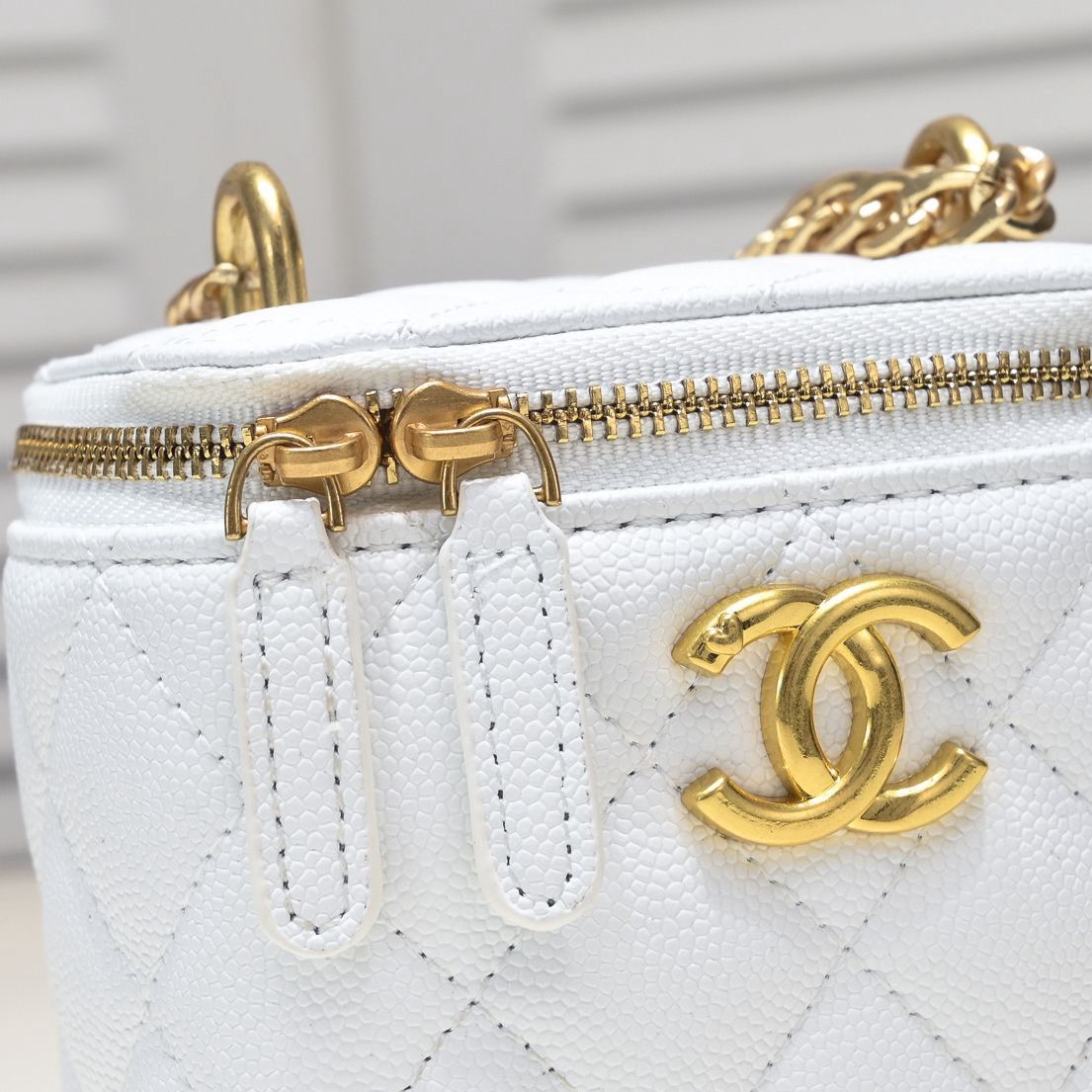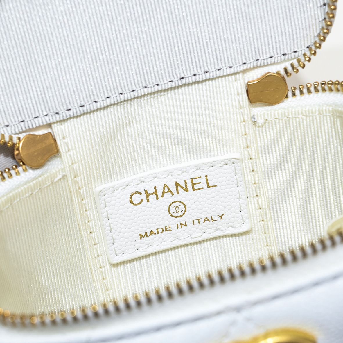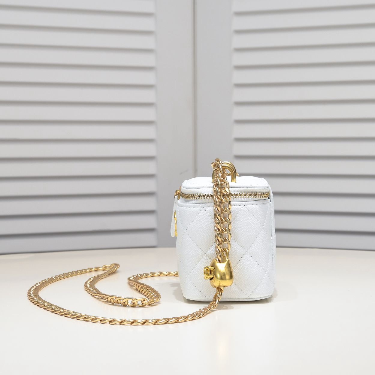 • CHANEL Calfskin Quilted Mini Perfect Fit Vanity Case With Chain White
