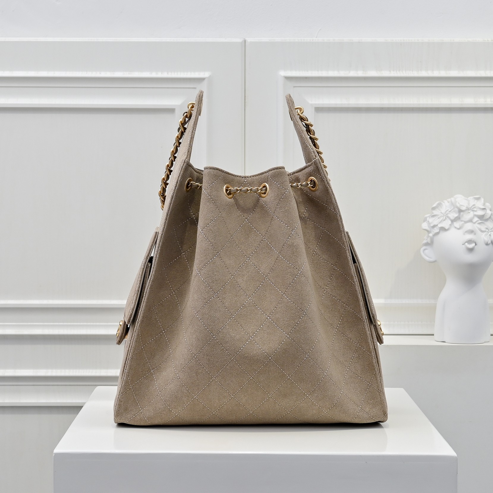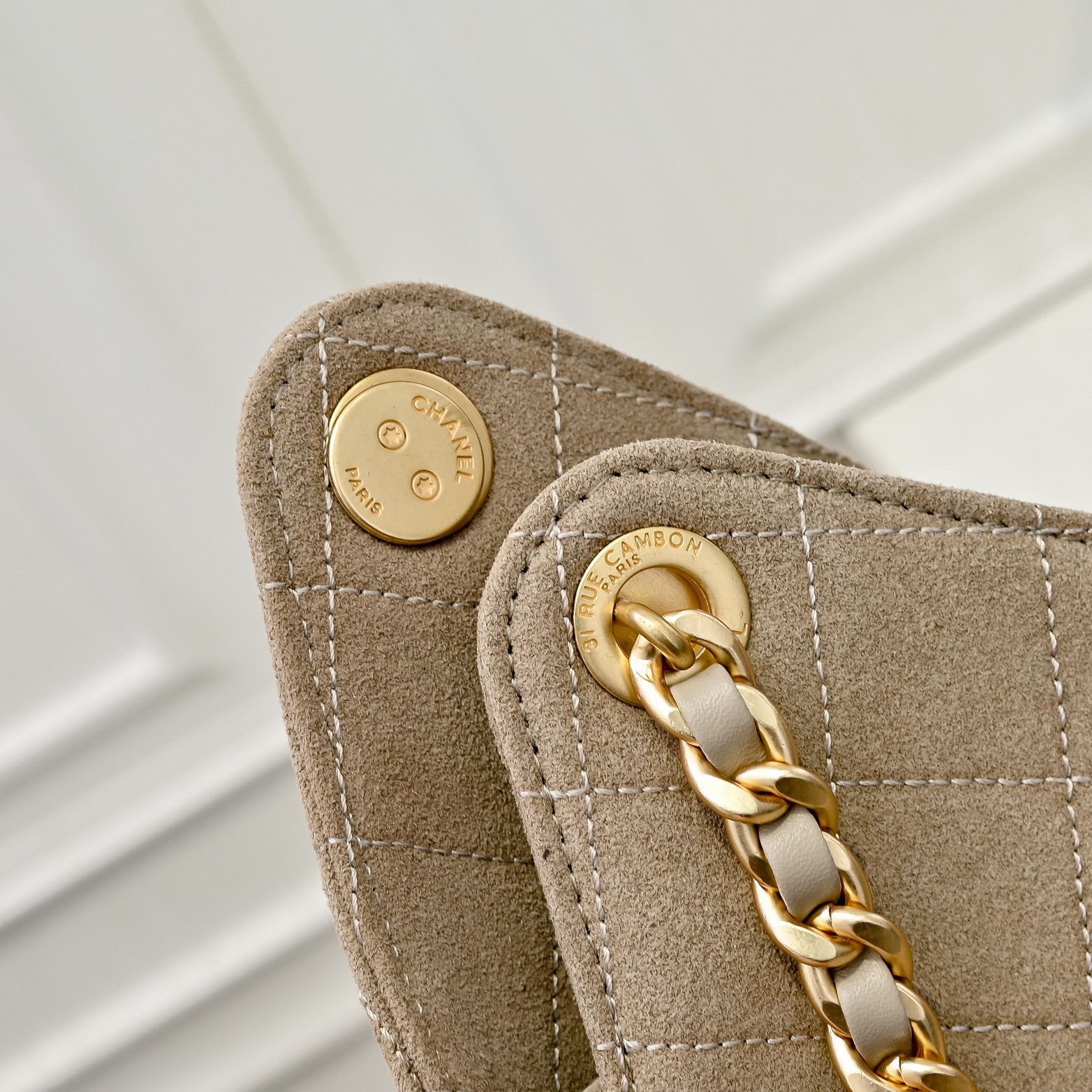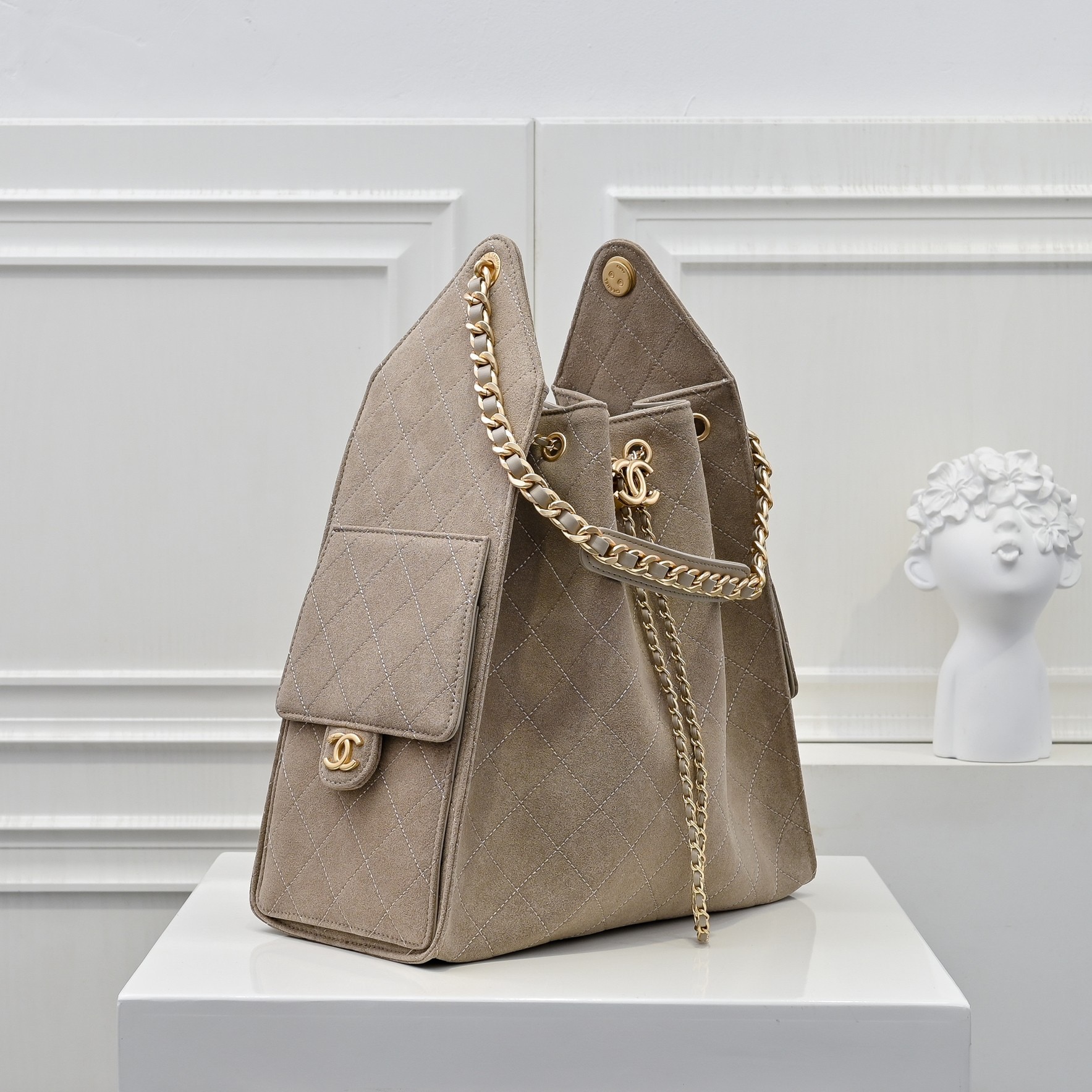 CHANEL Chanel 25Bag 25C Metal Chain suede hand bill Shoulder Bag Small women's grey