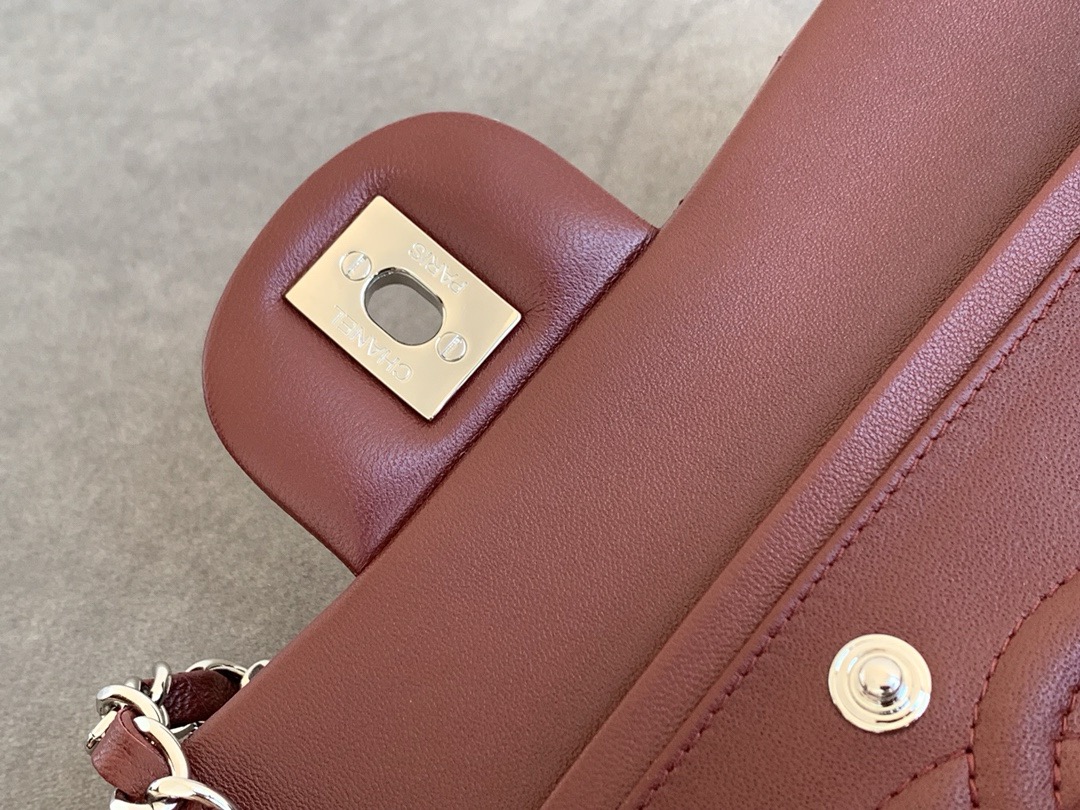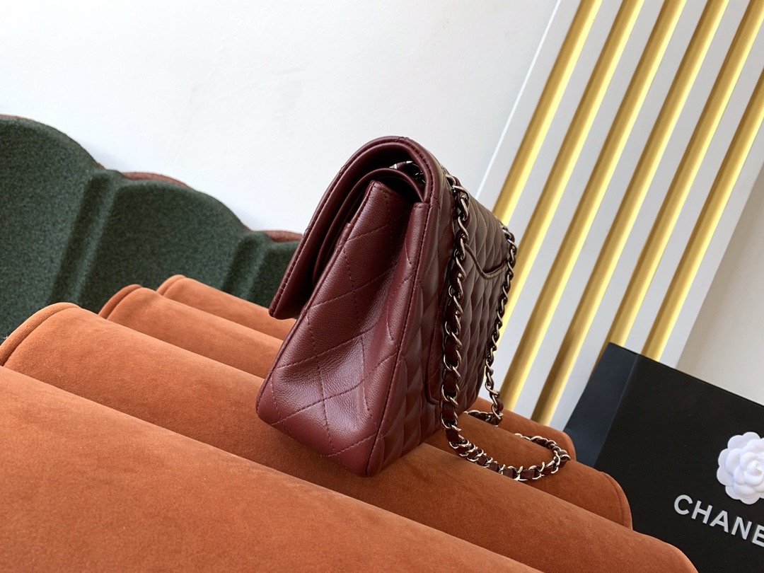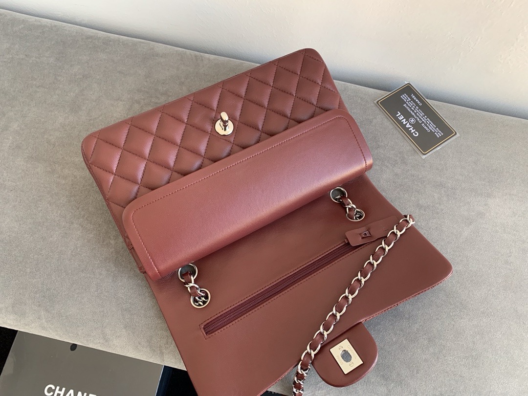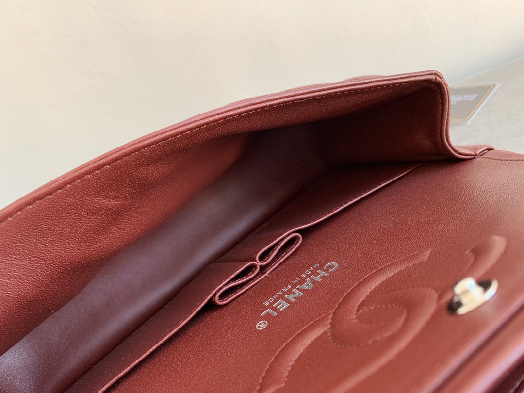 • CHANEL Chanel Classic Flap CF Classic gold buckle chain leather crossbody bag women's wine red