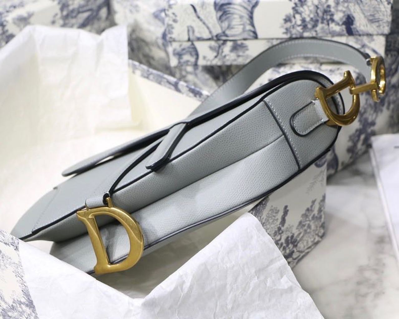 Christian Dior Saddle Bag Light Blue Grained Gold toned hardware For Women 25cm/10in CD