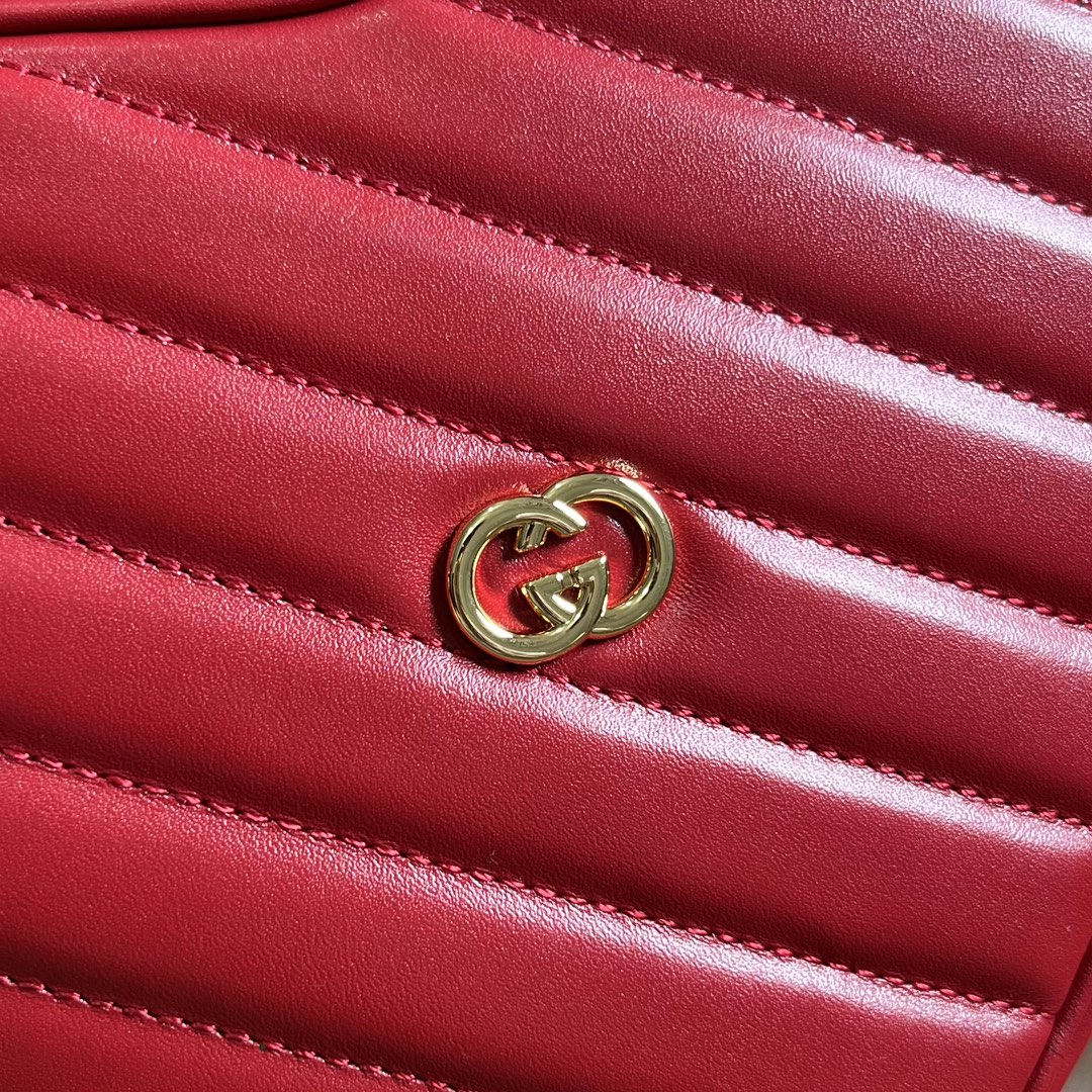 - Red diagonal matelassé leather