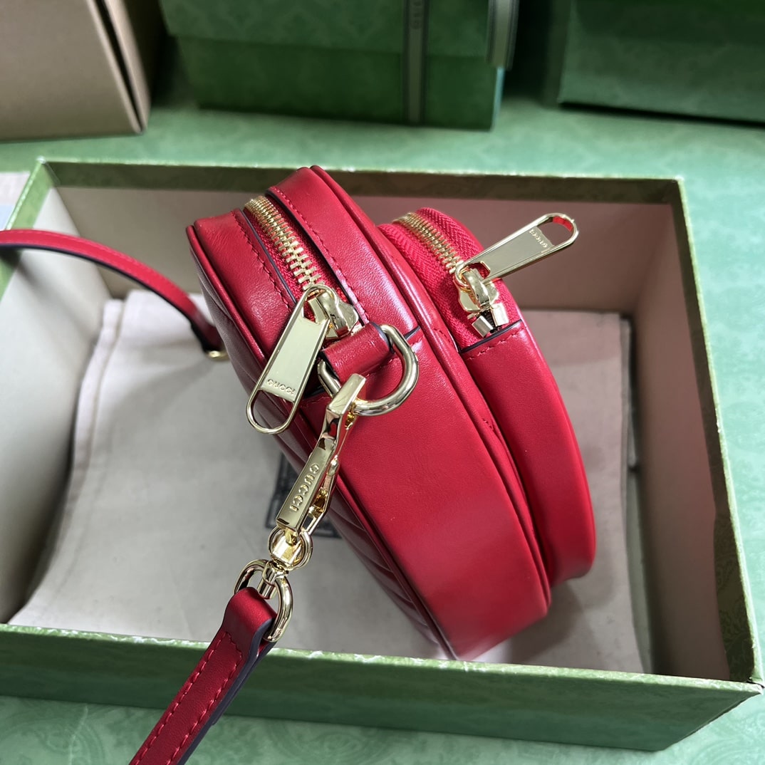 - The Interlocking G motif draws inspiration from the past and present. Featuring diagonal matelassé, the concentric heart-shaped design gives this mini shoulder bag a whimsical twist.