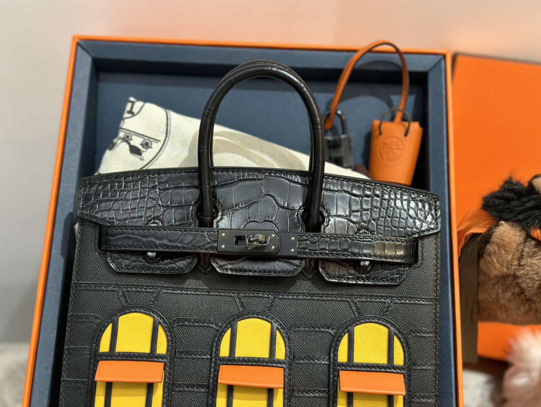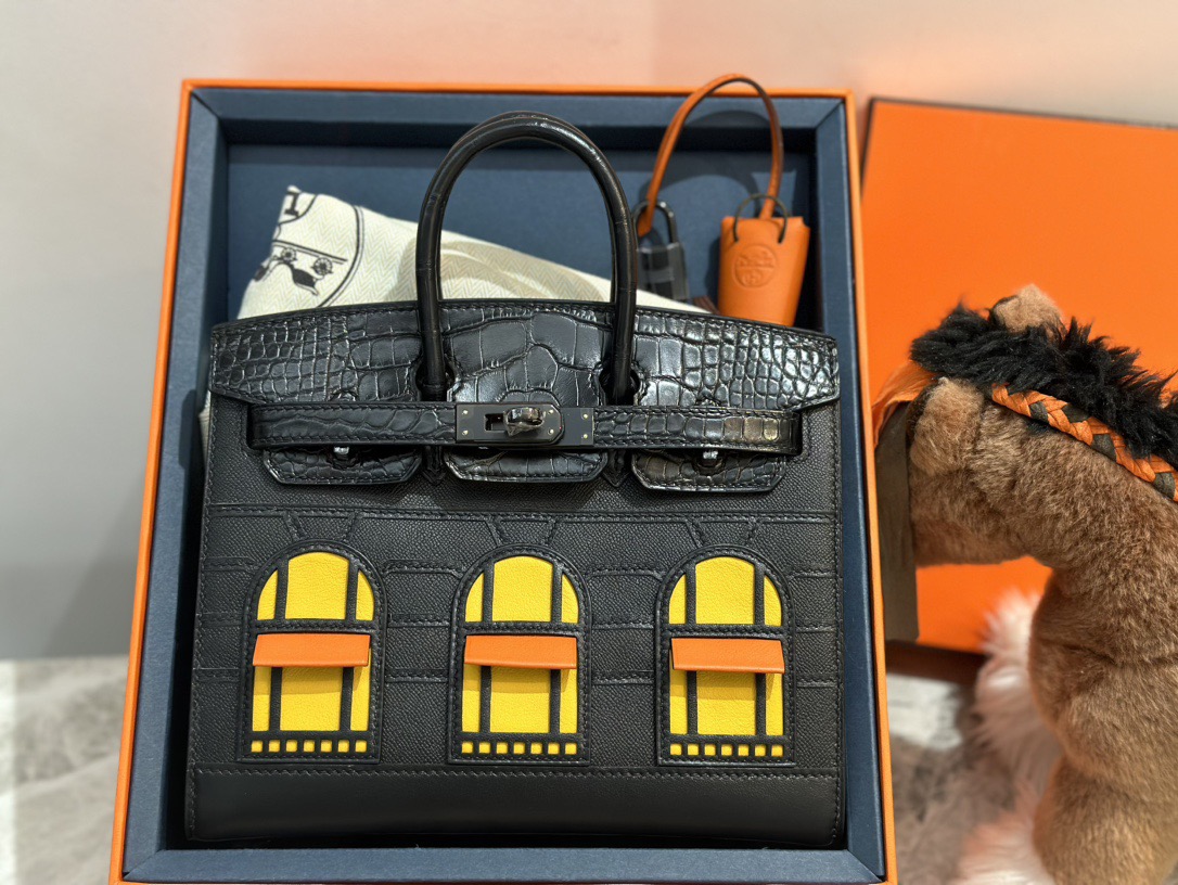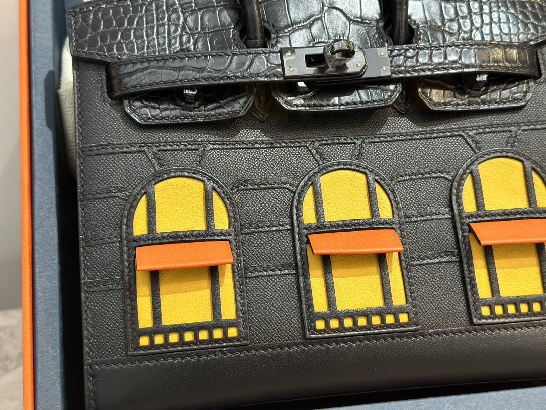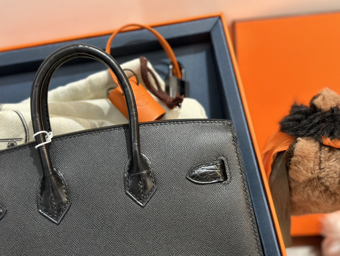 HERMES Hermes Birkin Sellier 20 Black Buckle Black House Bag Birkin Bag Cowhide Fish skin Black House Bag Birkin Bag Medium size women's black i
