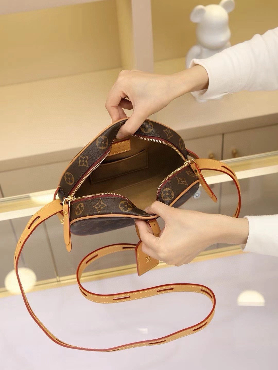 • Nicolas Ghesquière reimagines the classic hat box as the coveted Boite Chapeau souple handbag. Inspired by the House’s travel heritage, this supple Monogram canvas design has a long strap, making it easy to carry across the body or over the shoulder