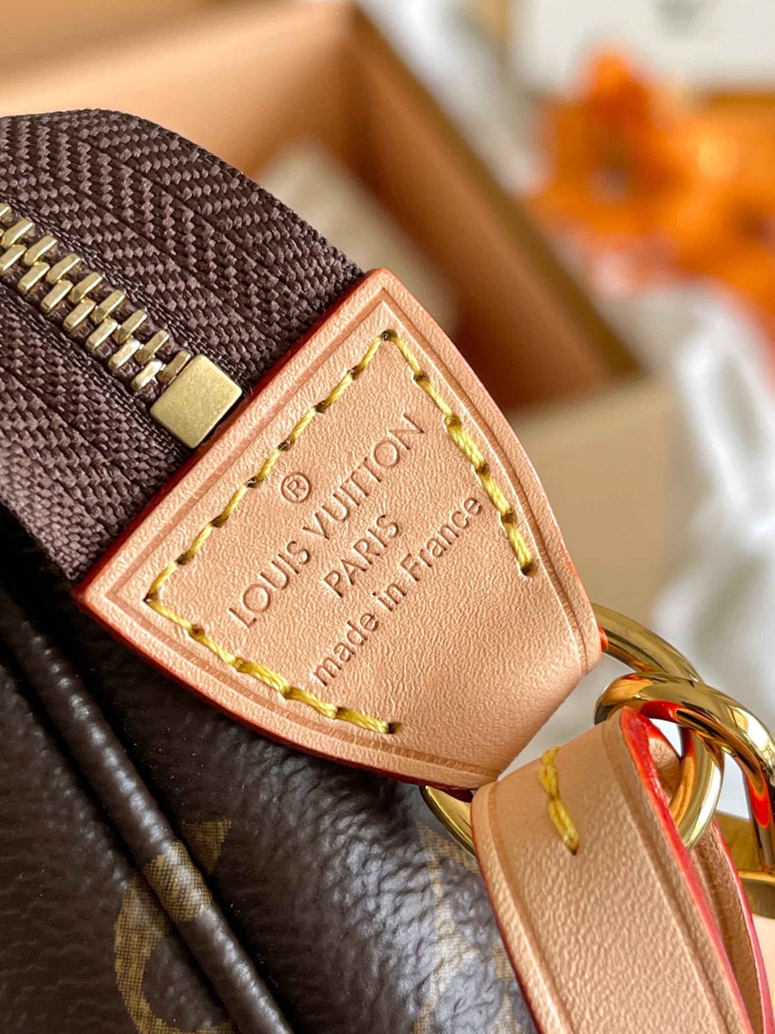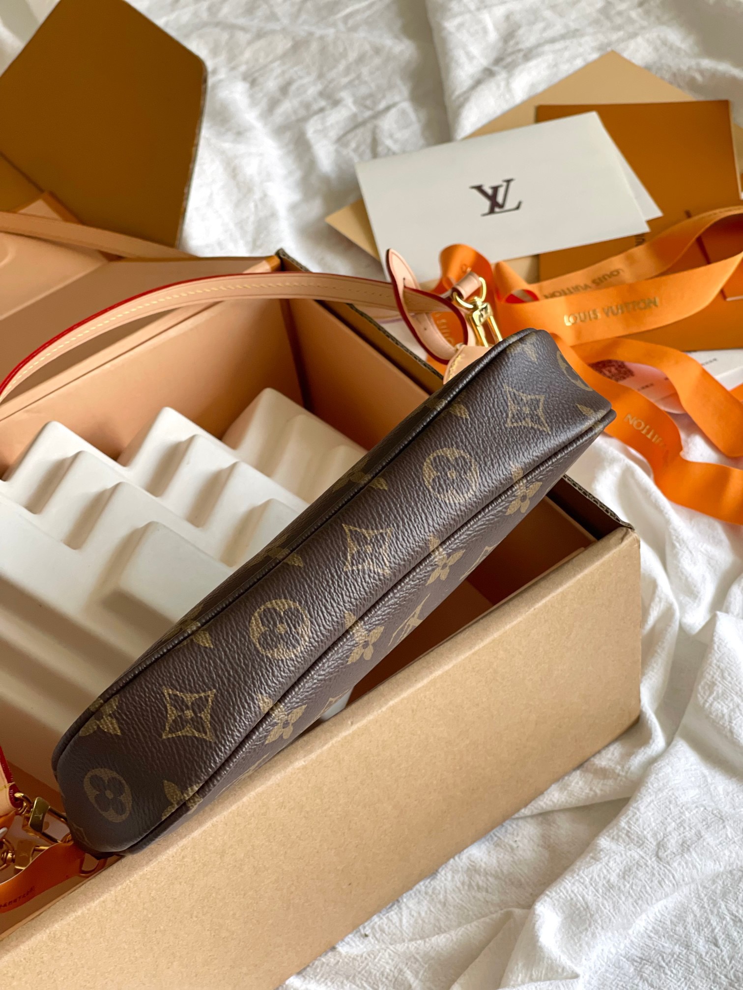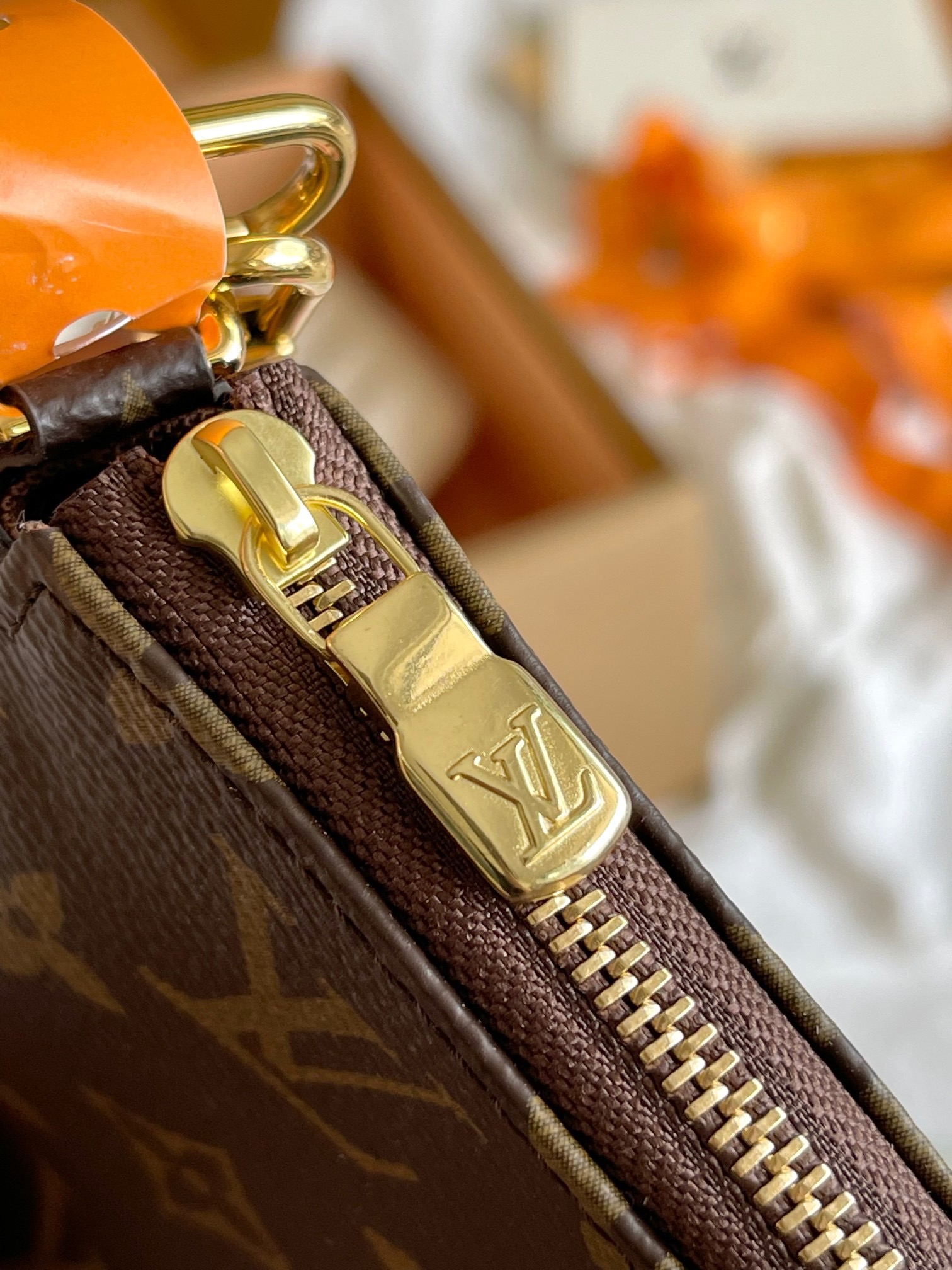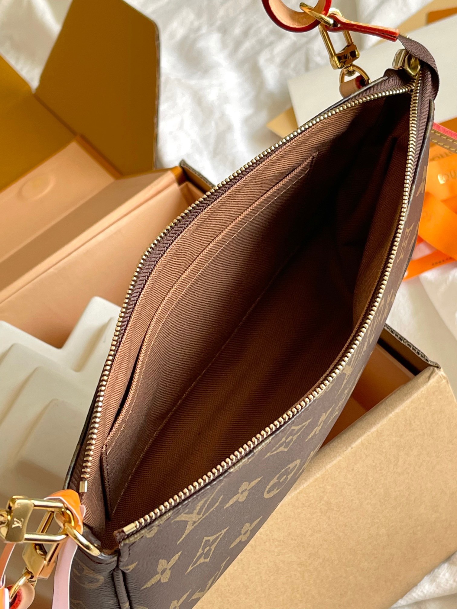 Always the epitome of iconic style, this interpretation of the Pochette Accessoires can accommodate a Zippy Wallet. In Monogram canvas, it easily carries al•L the daily necessities.