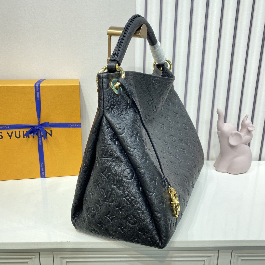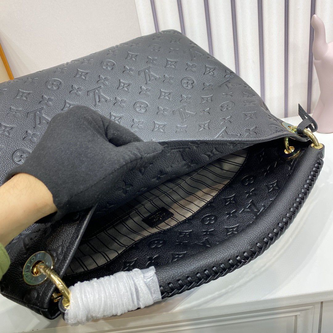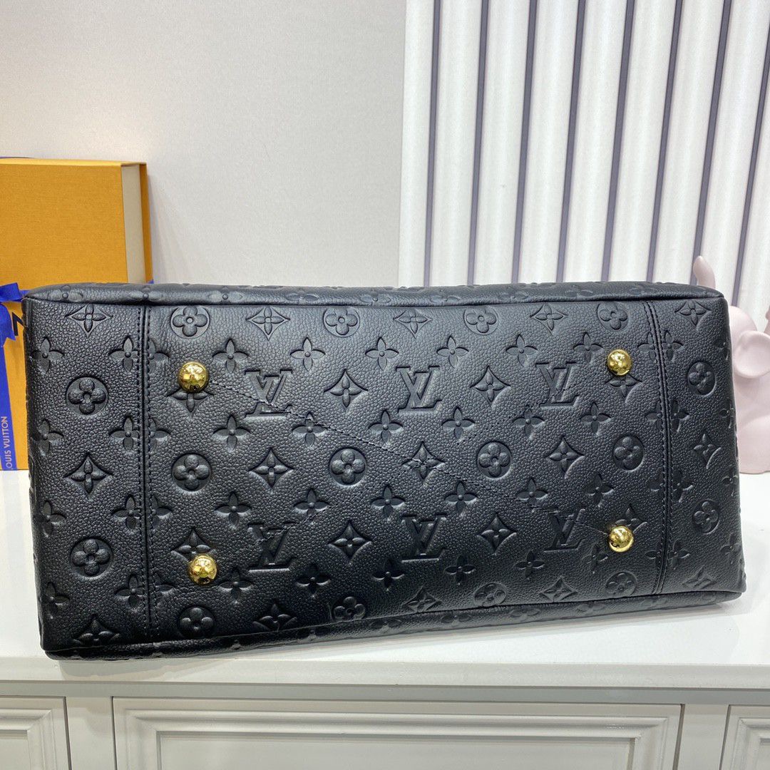 41.0 x 32.0 x 22.0 CM(Length x heightx width ) •Embossed calf leather with smooth leather trimmings•Louis Vuitton engraved eyelets, rings and bag charm•1 interior long zipped pocket and 6 patch pockets•D•ring for keys and accessories•Bag charm that can be used inside as a key•hanger•striped textile lining•Protective bottom studs