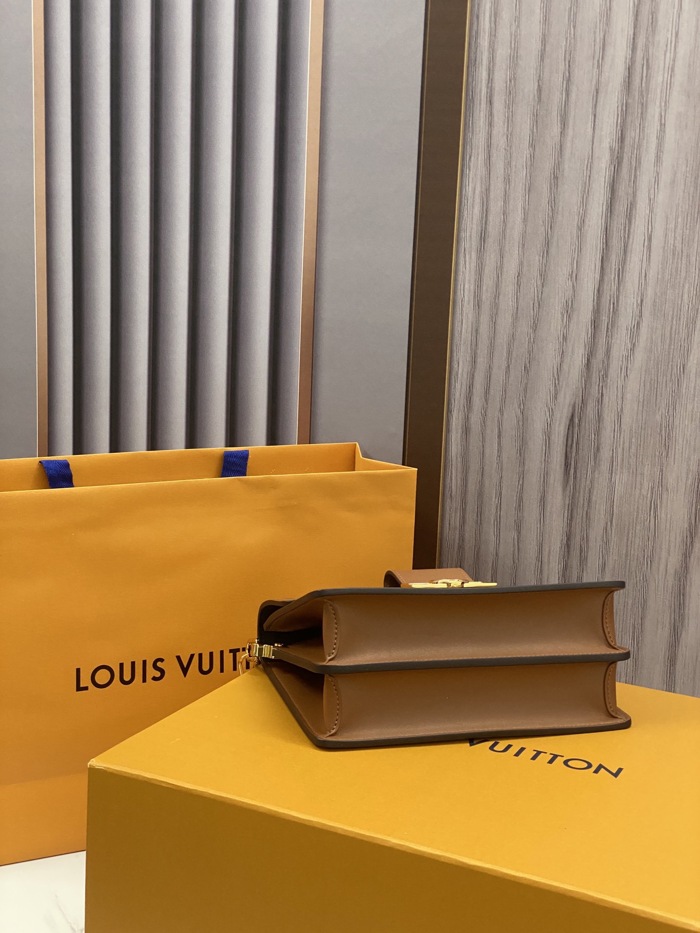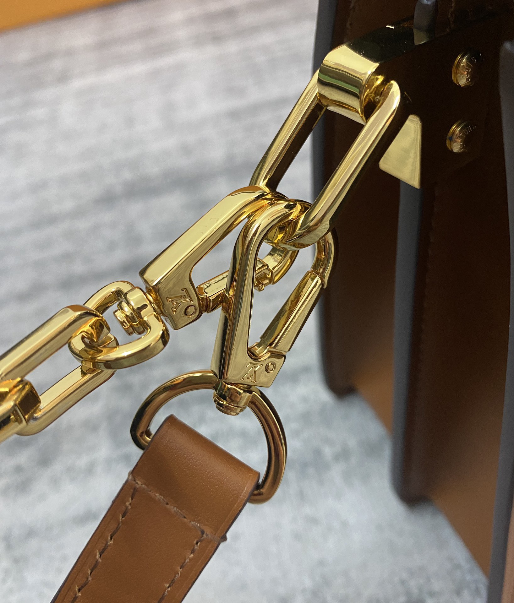 - Gold-color hardware