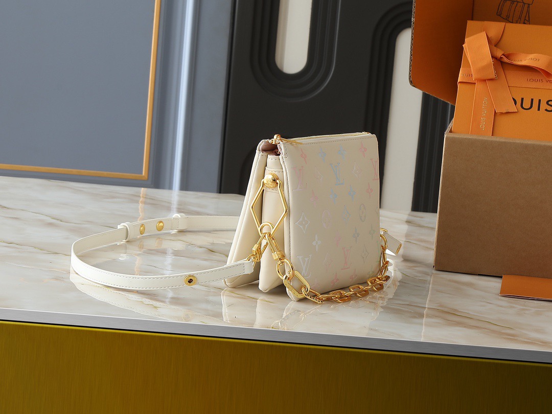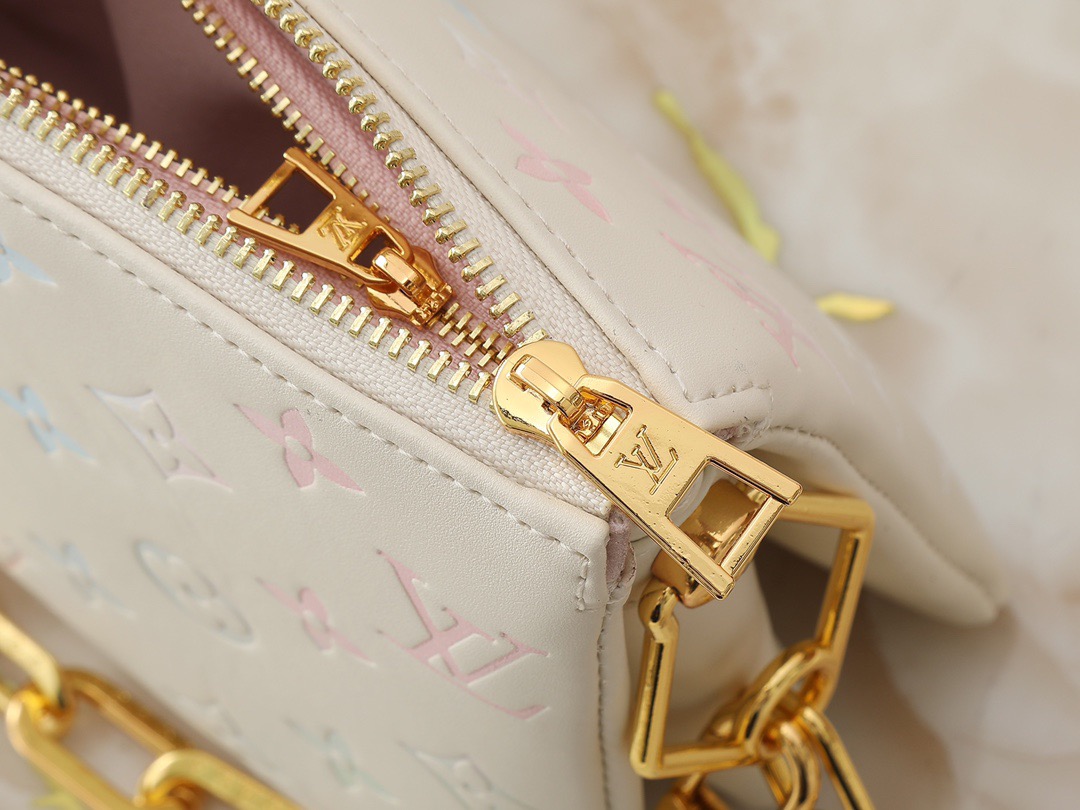 LOUIS VUITTON Coussin BB Removable shoulder strap zipper Open and close fluffy lamb leather shoulder bag Women's white