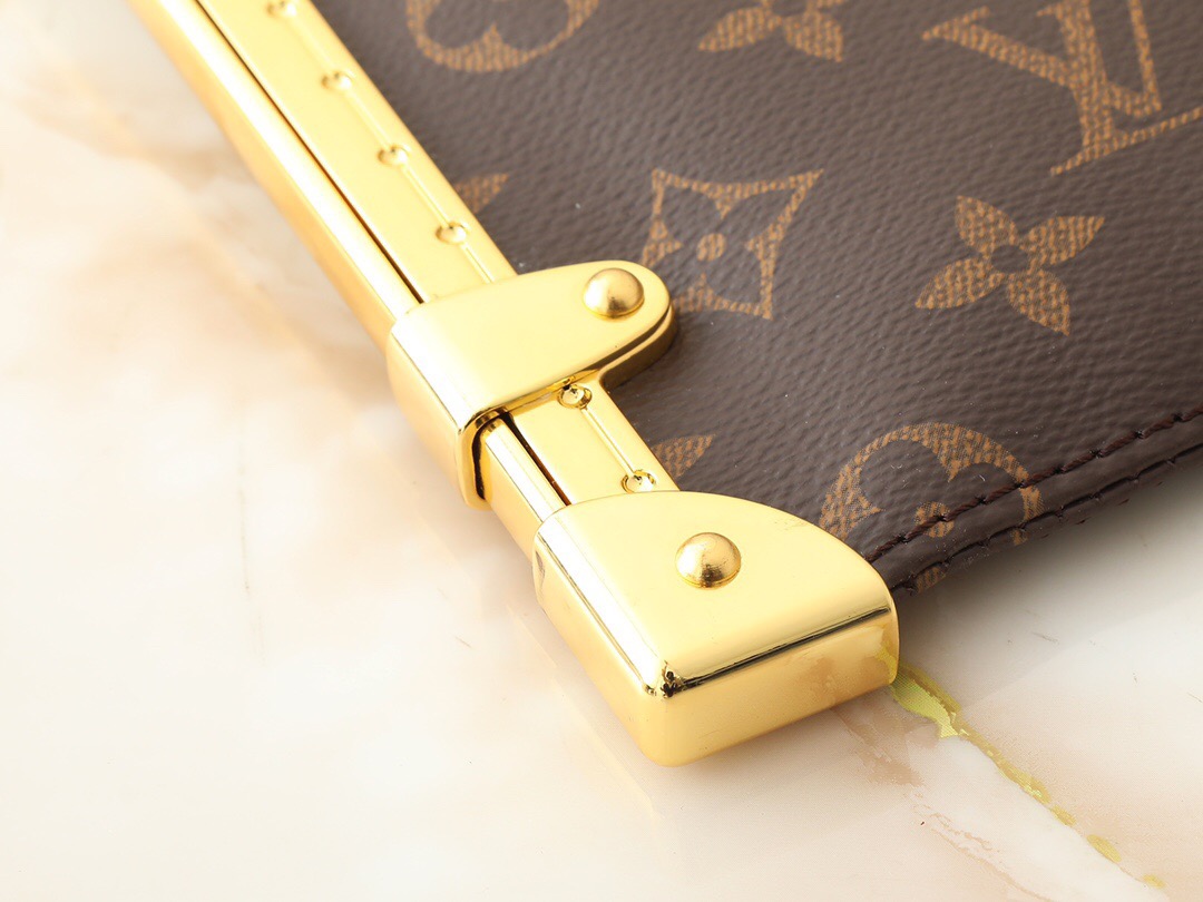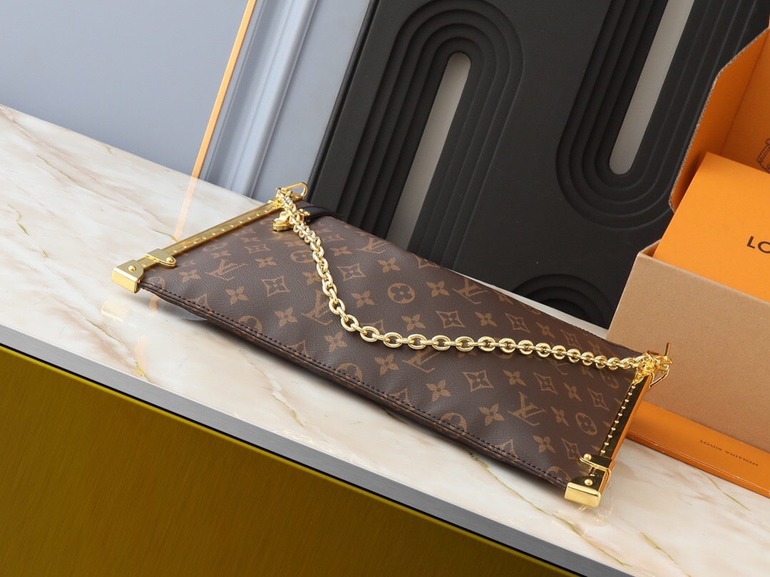 LOUIS VUITTON Lucky Trunk Detachable chain letter logo canvas hand bill Shoulder Bag Women's brown