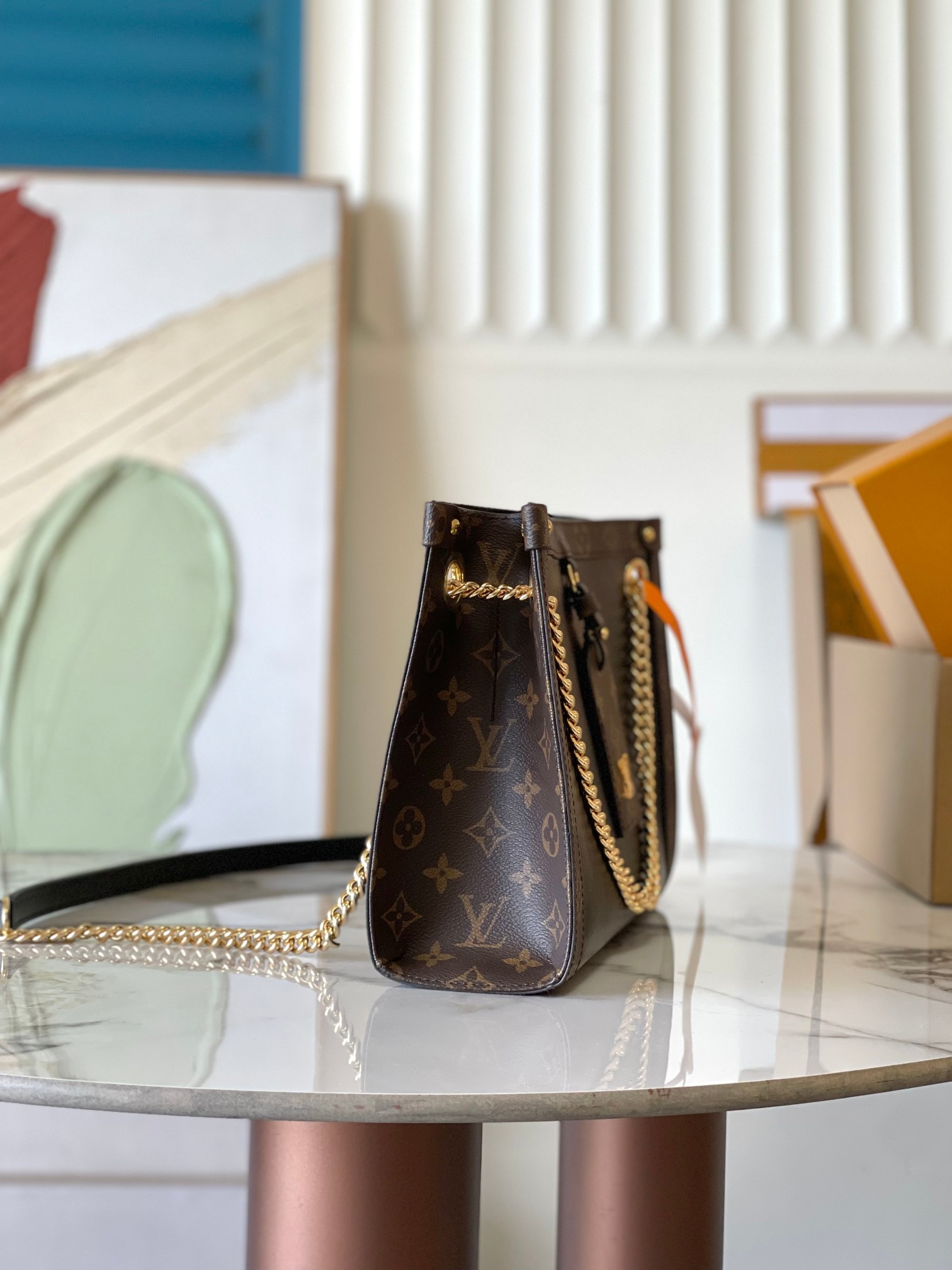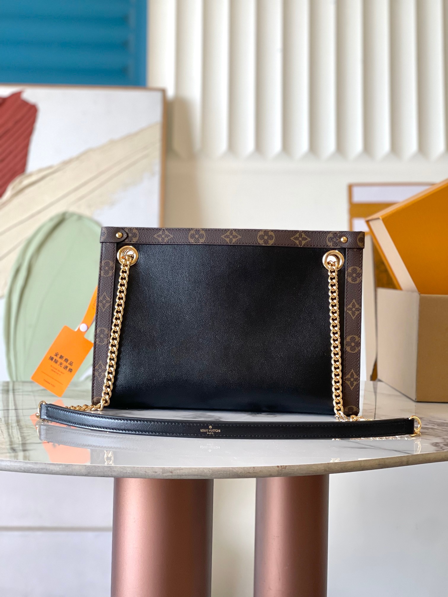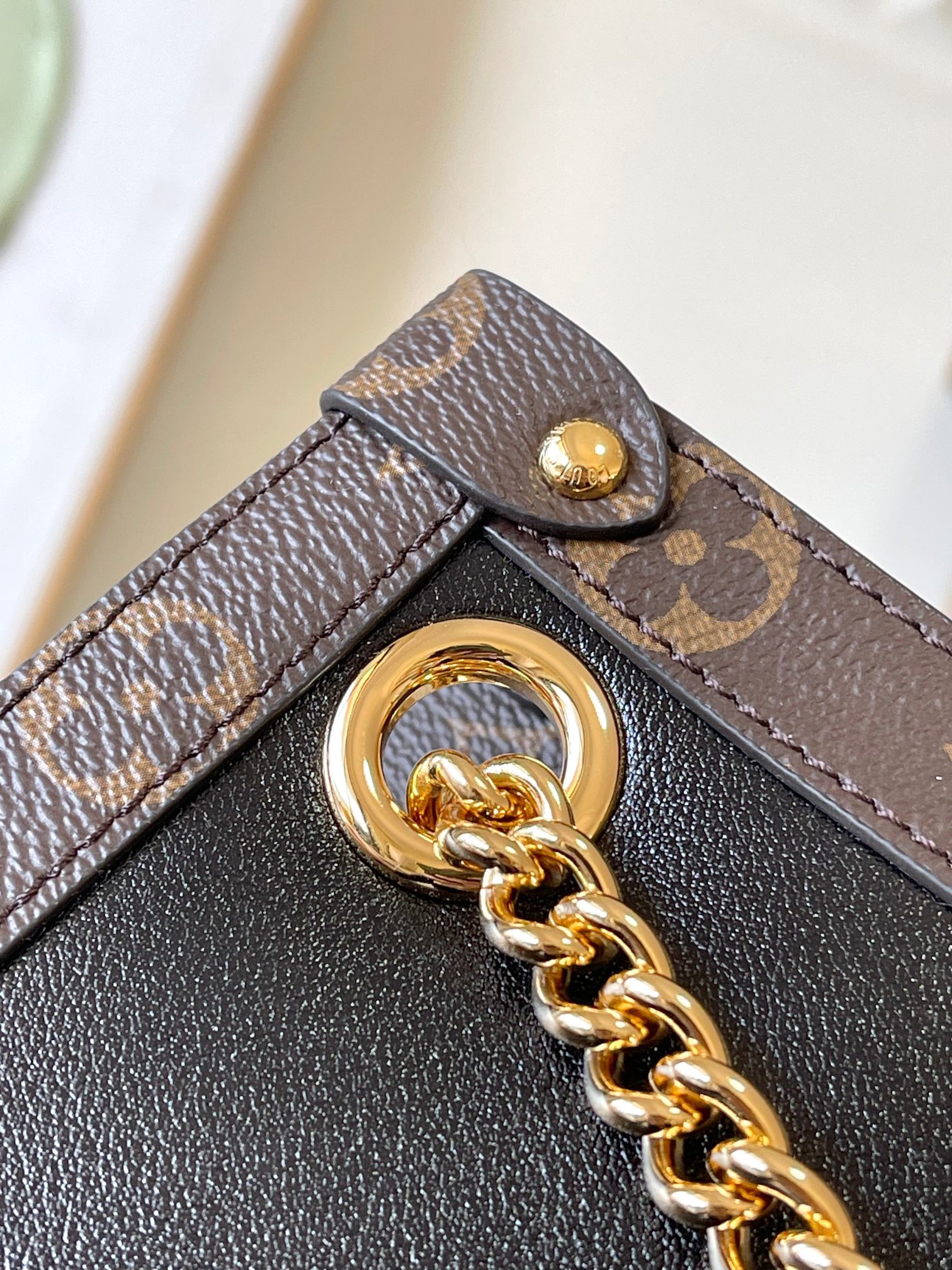 LOUIS VUITTON Nova Classic Presbyopia print sliding chain Cow leather shoulder Bag Small women's black brown