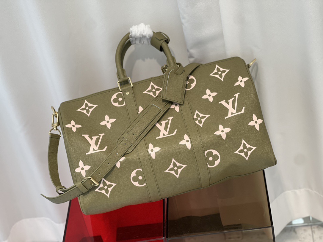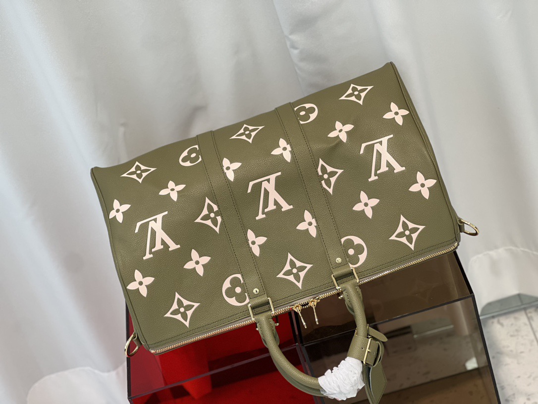 LOUIS VUITTON keepall Presbyteria Full Print Removable adjustable shoulder zipper Open and close E Floral leather Tote Travel Bag Women's Card A with Cream
