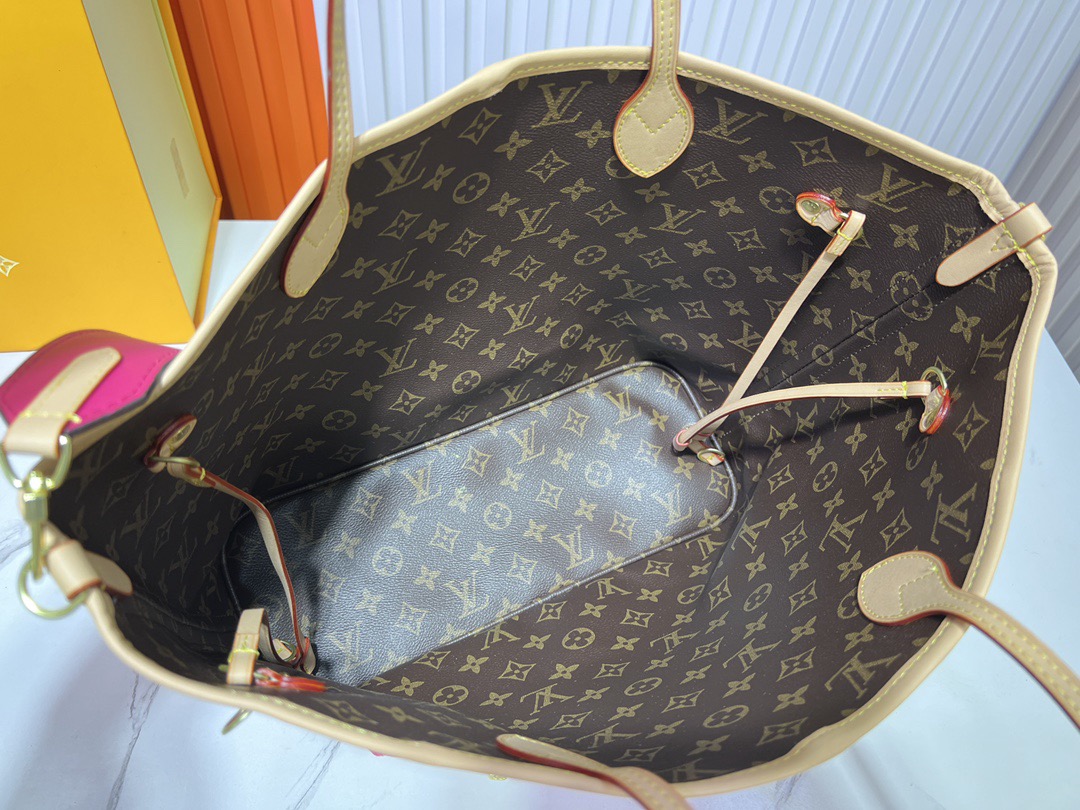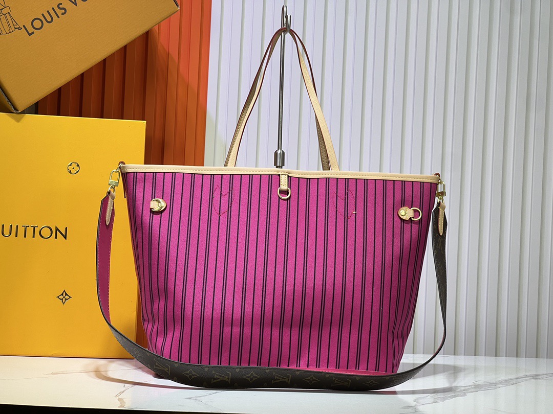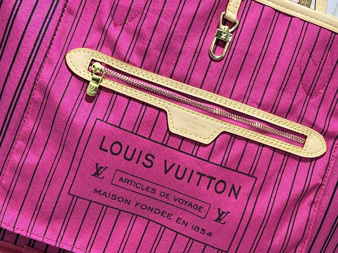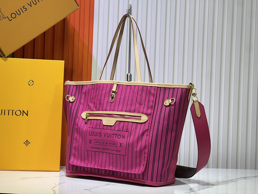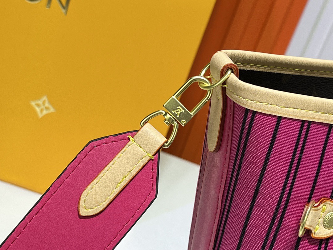 As one of Louis Vuitton's classic designs, Neverfull Bandouliere Inside Out medium handbag is made of Monogram canvas and striped fabric, with a double-sided design to highlight the trend. The detachable shoulder strap is convenient for cross-body wear and can also be used to transform the Hobo bag through the side crochet.