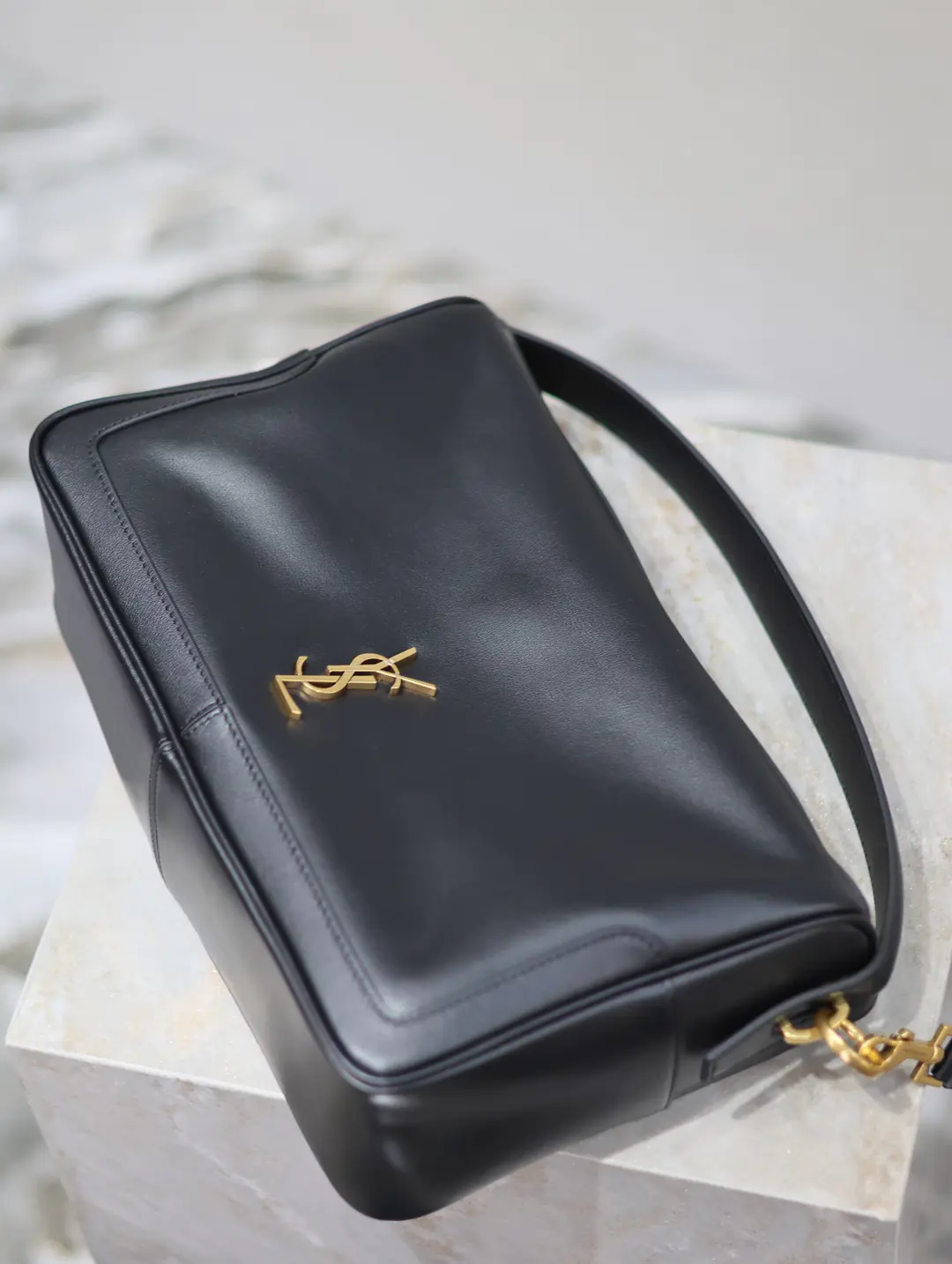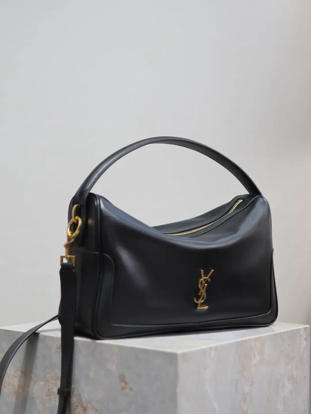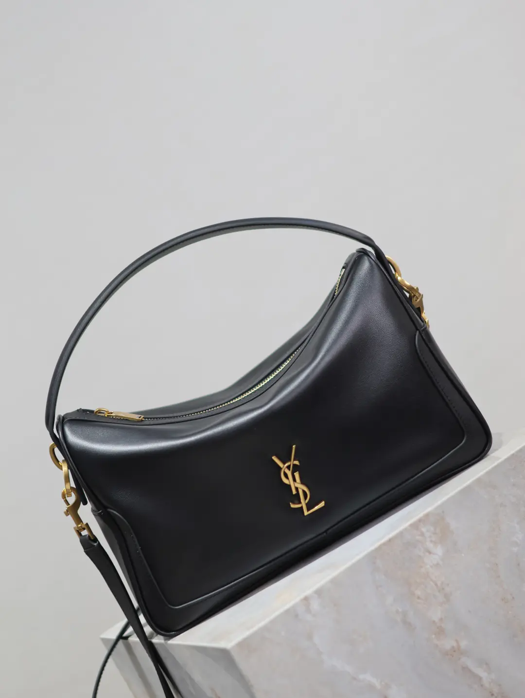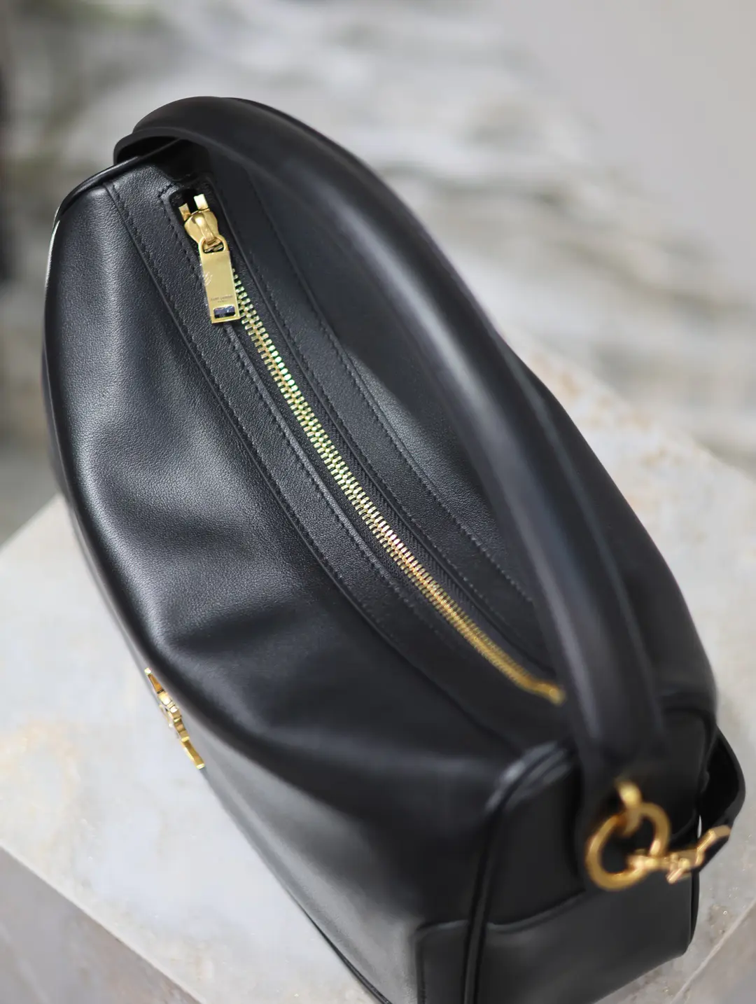 CRAFTED FROM NAPPA COWHIDE LEATHER, IT HAS A ZIPPER CLOSURE AND A DESIGNER HAMMOCK SHAPE.
