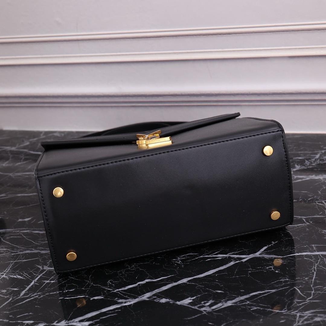 - Padded leather top handle