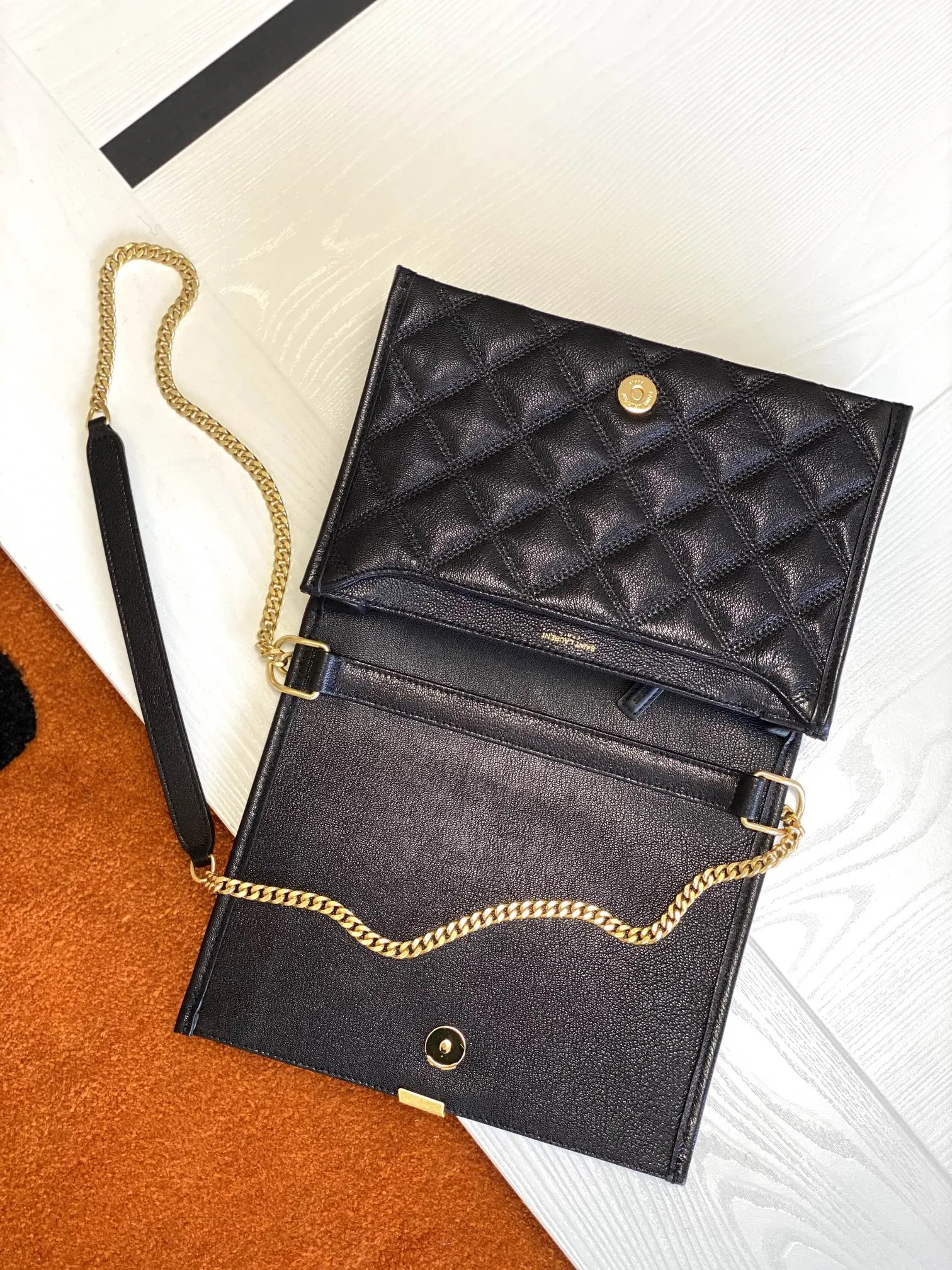 MINI BAG WITH A FLAP MADE WITH METAL-FREE TANNED LEATHER AND ORGANIC COTTON LINING. DECORATED WITH CARR��-QUILTED OVERSTITCHING AND A Y MONOGRAM ON THE FRONT. FEATURING A CHAIN AND LEATHER CONVERTIBLE SHOULDER STRAP THAT CAN BE WORN CROSSBODY OR DOUBLED FOR SHOULDER CARRY.
