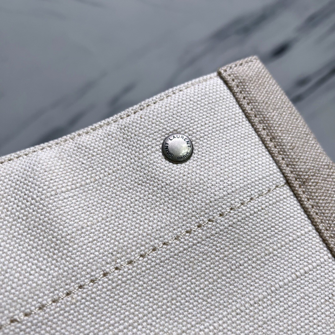 SAINT RIVE GAUCHE TOTE WITH TUBULAR HANDLES, FEATURING AN INNER ZIP POCKET AND THREE SAINT LAURENT-ENGRAVED SNAP BUTTONS AT THE TOP.